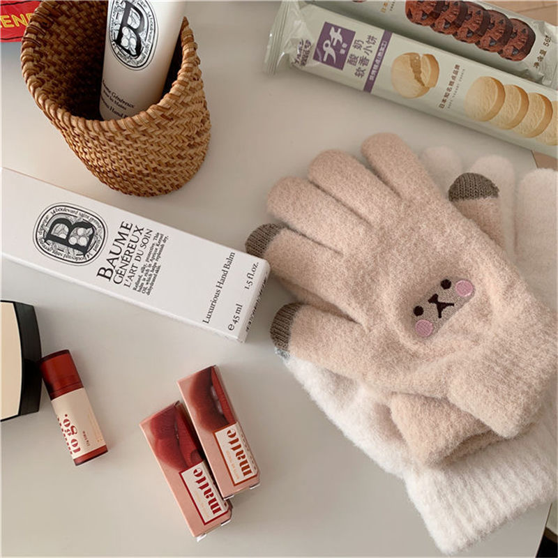 • 화이트 스마일 얼굴 곰 다섯 손가락 장갑