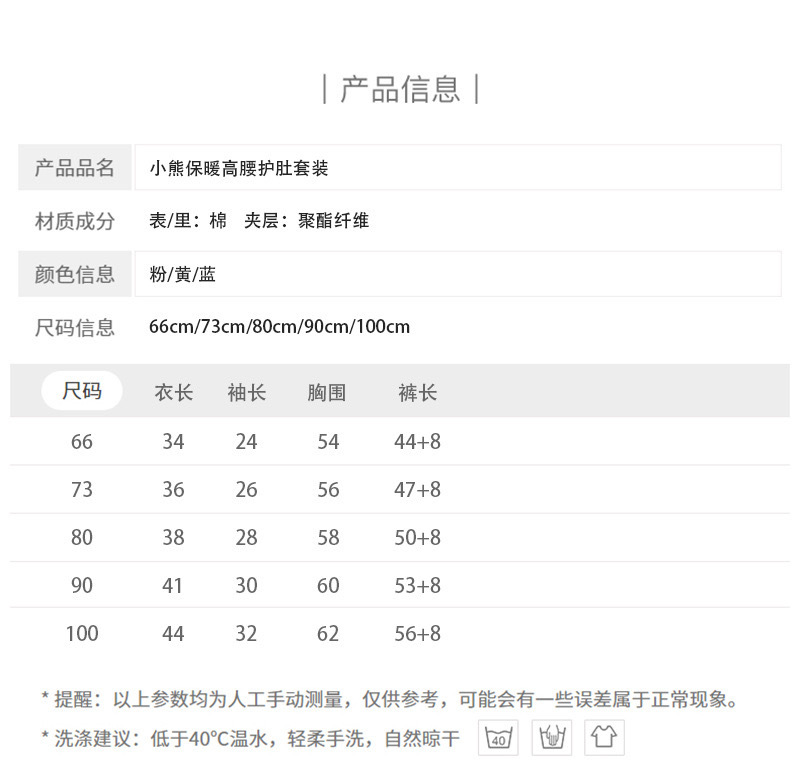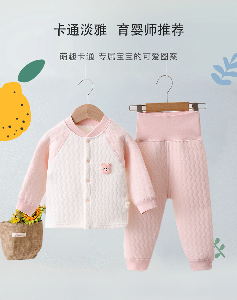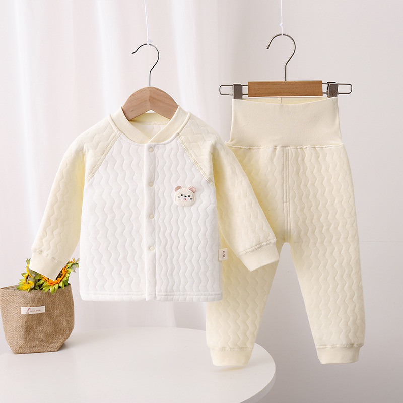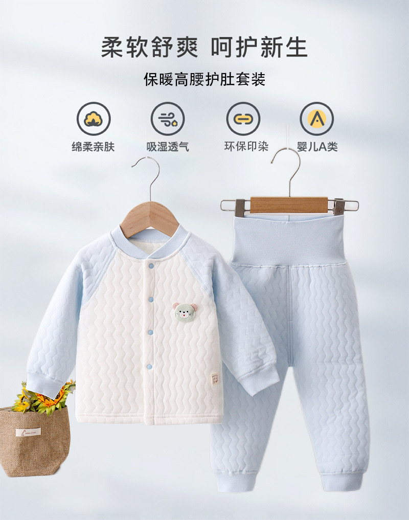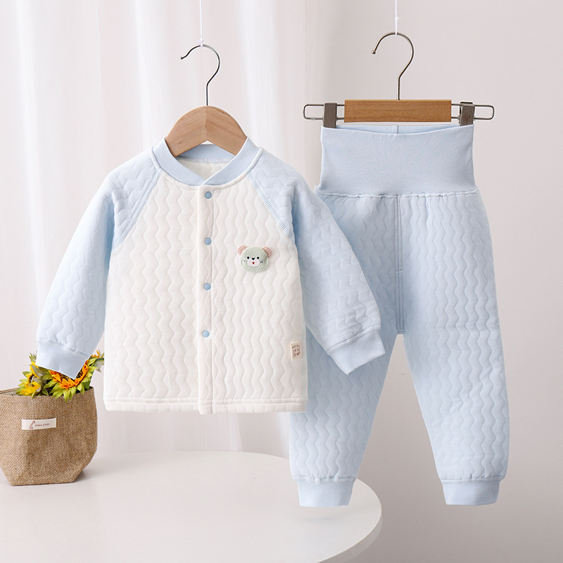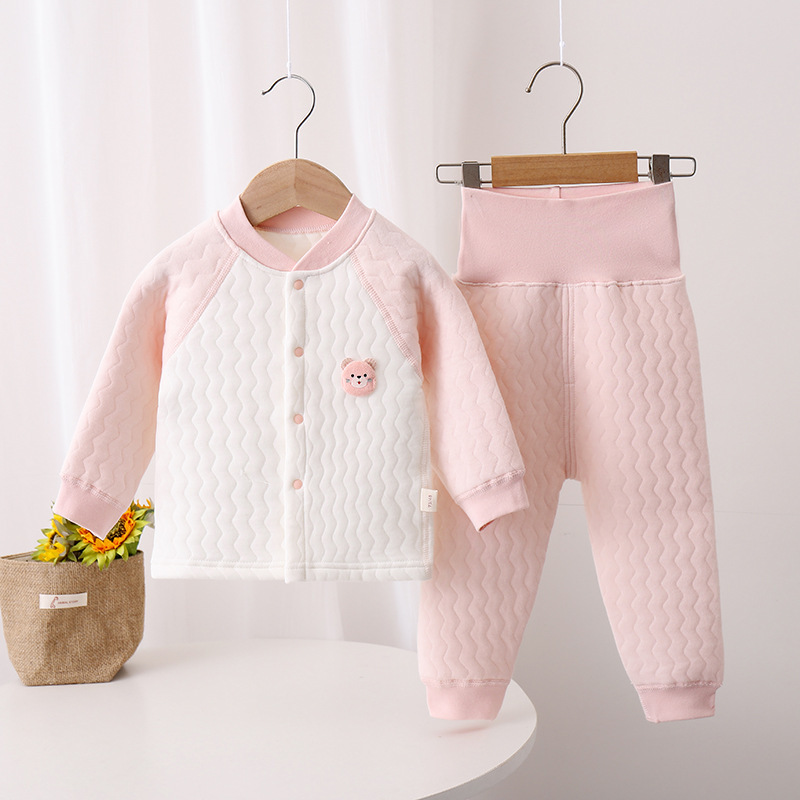 가을과 겨울 아기 열 속옷 세트 아기 3 층 따뜻한 하이 웨이스트 배 보호 2 종 세트 뼈없는 따뜻한 옷