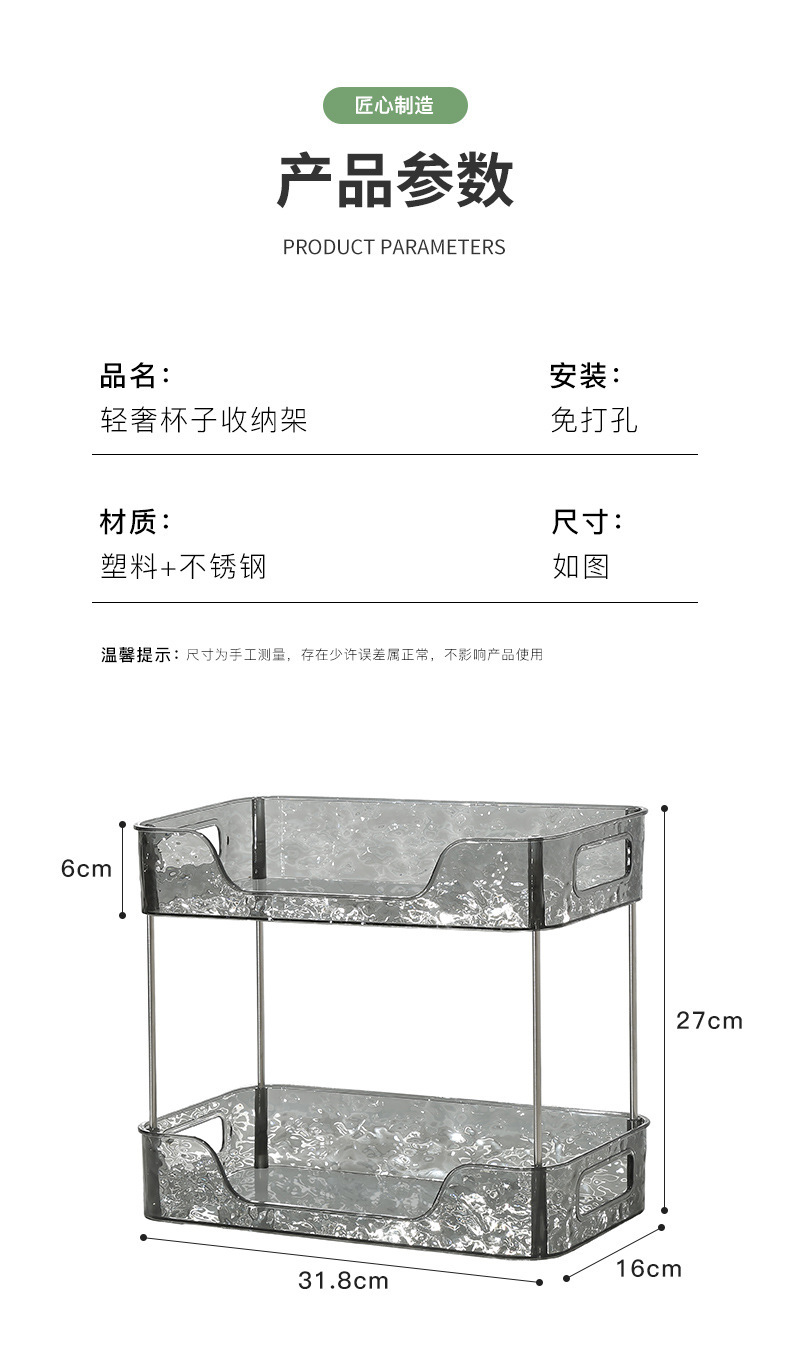 ZT2289 빙하 패턴 스토리지 랙 거실 찻잔 랙 워터 컵 랙 스토리지 랙 트레이 커피 컵 랙 더블 레이어