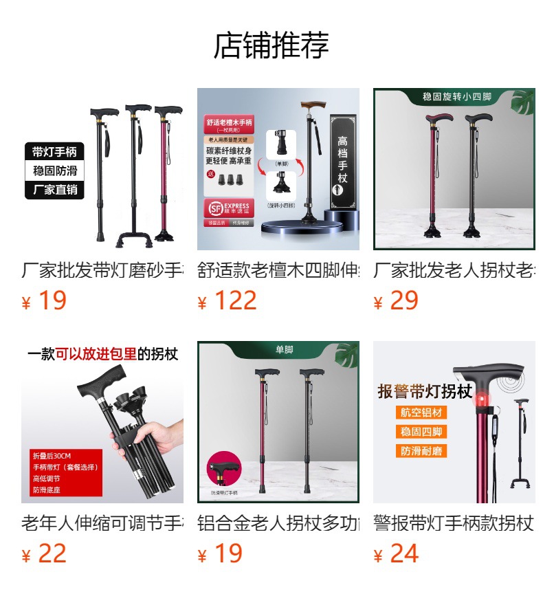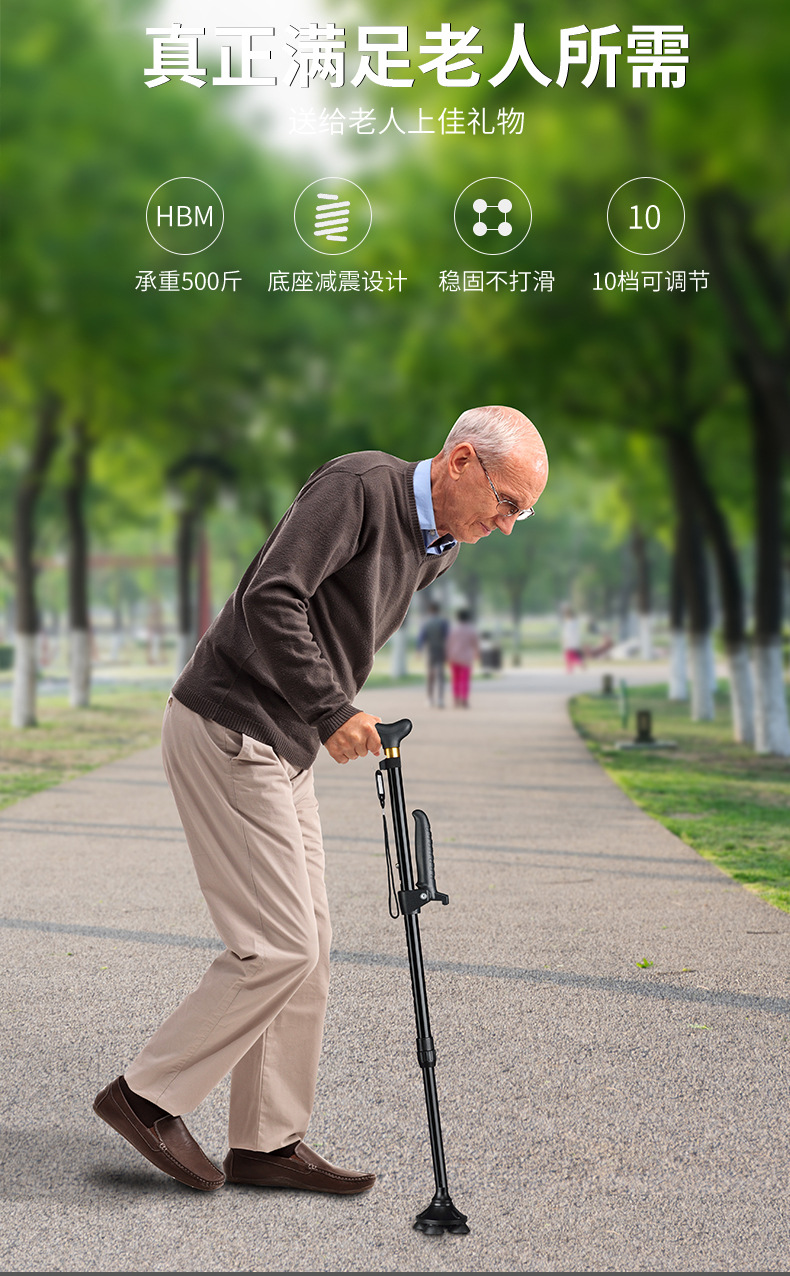 노인용 접이식 지팡이, 가벼운 4발 지팡이, 조명 포함, 알루미늄 합금 미끄럼 방지 4각 노인용 지팡이스토어 가기