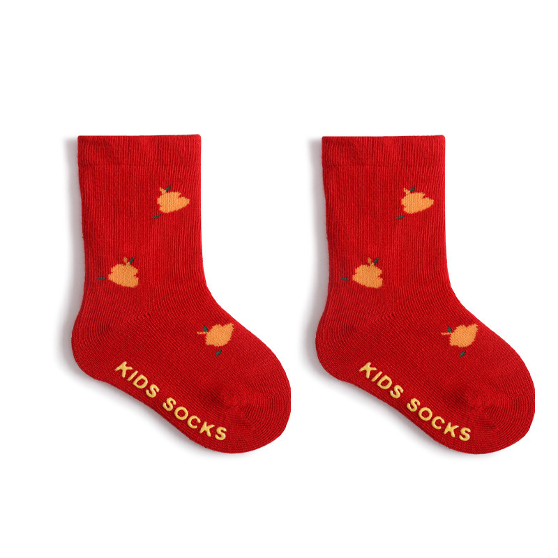 2023 가을 겨울 신생아 양말 100일 및 1세 생일, 출생년도, 아기용, 빨간색, 땀 흡수, 유아 및 어린이용