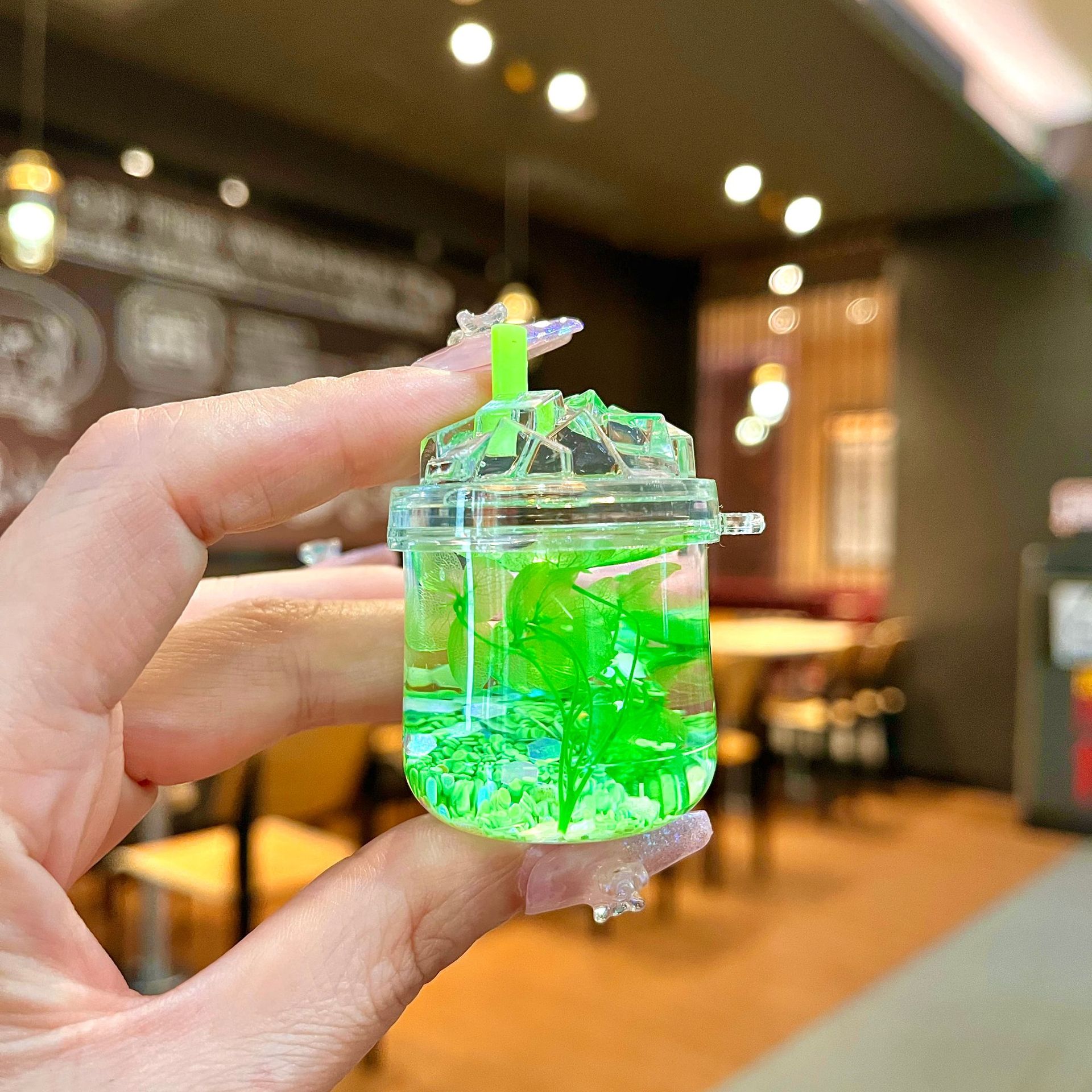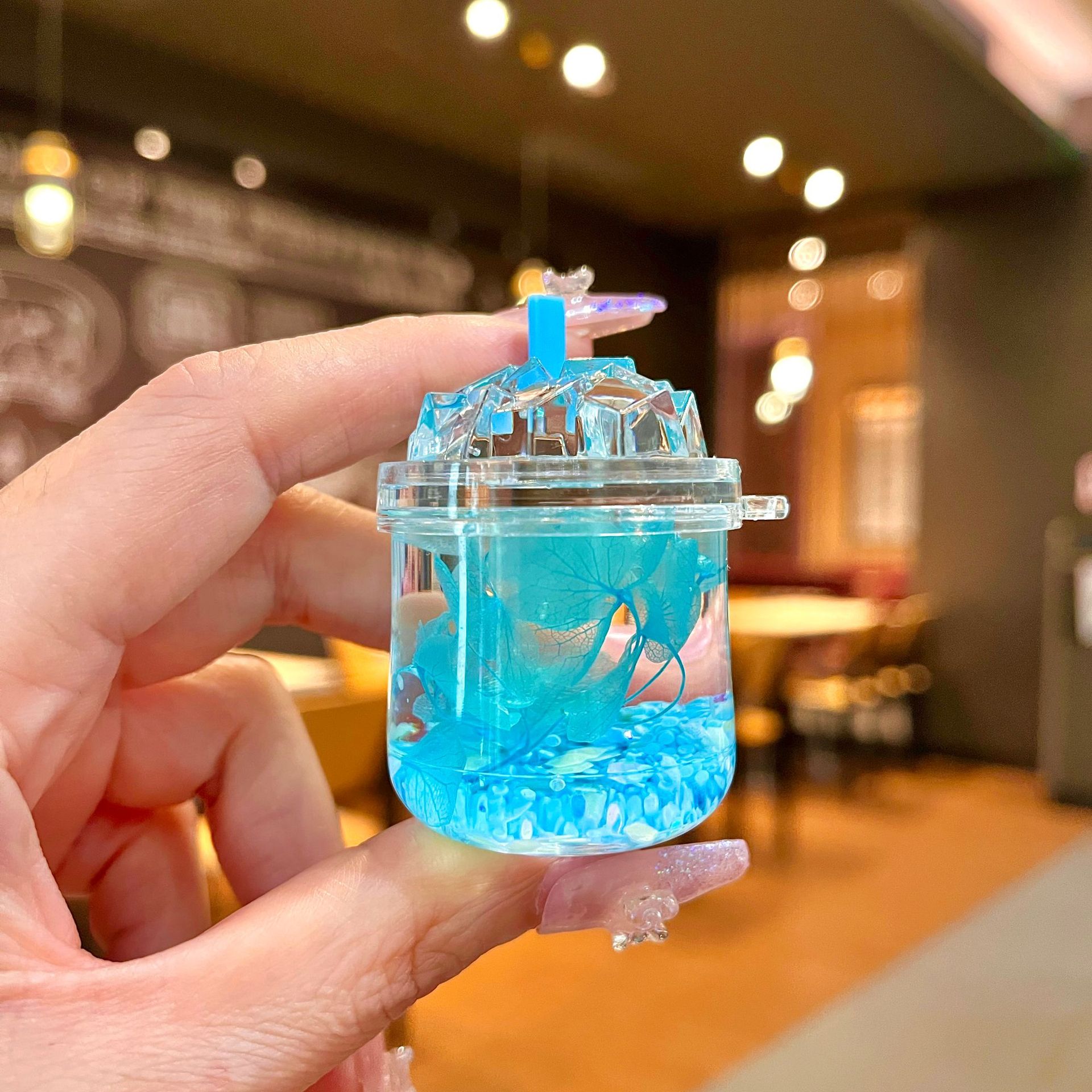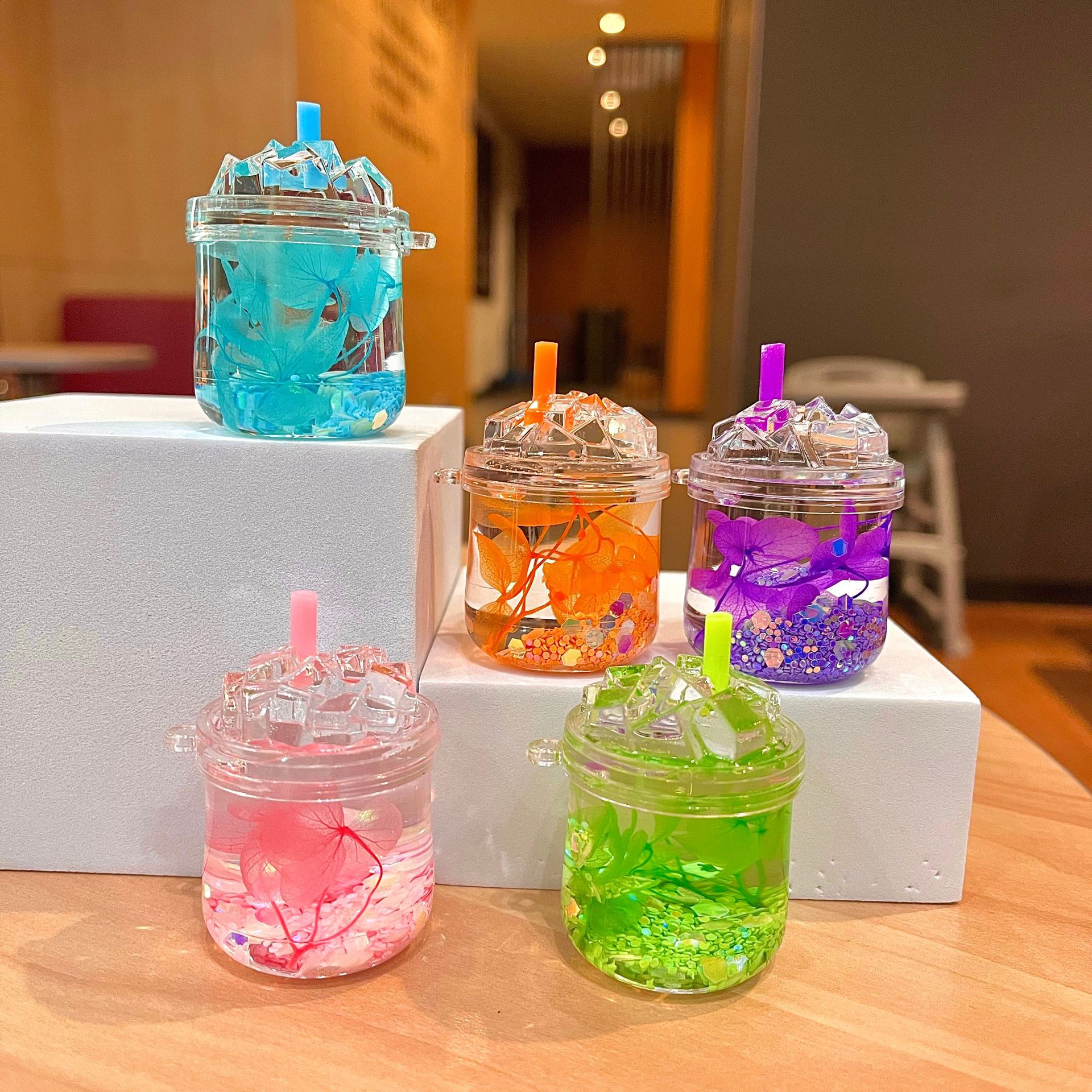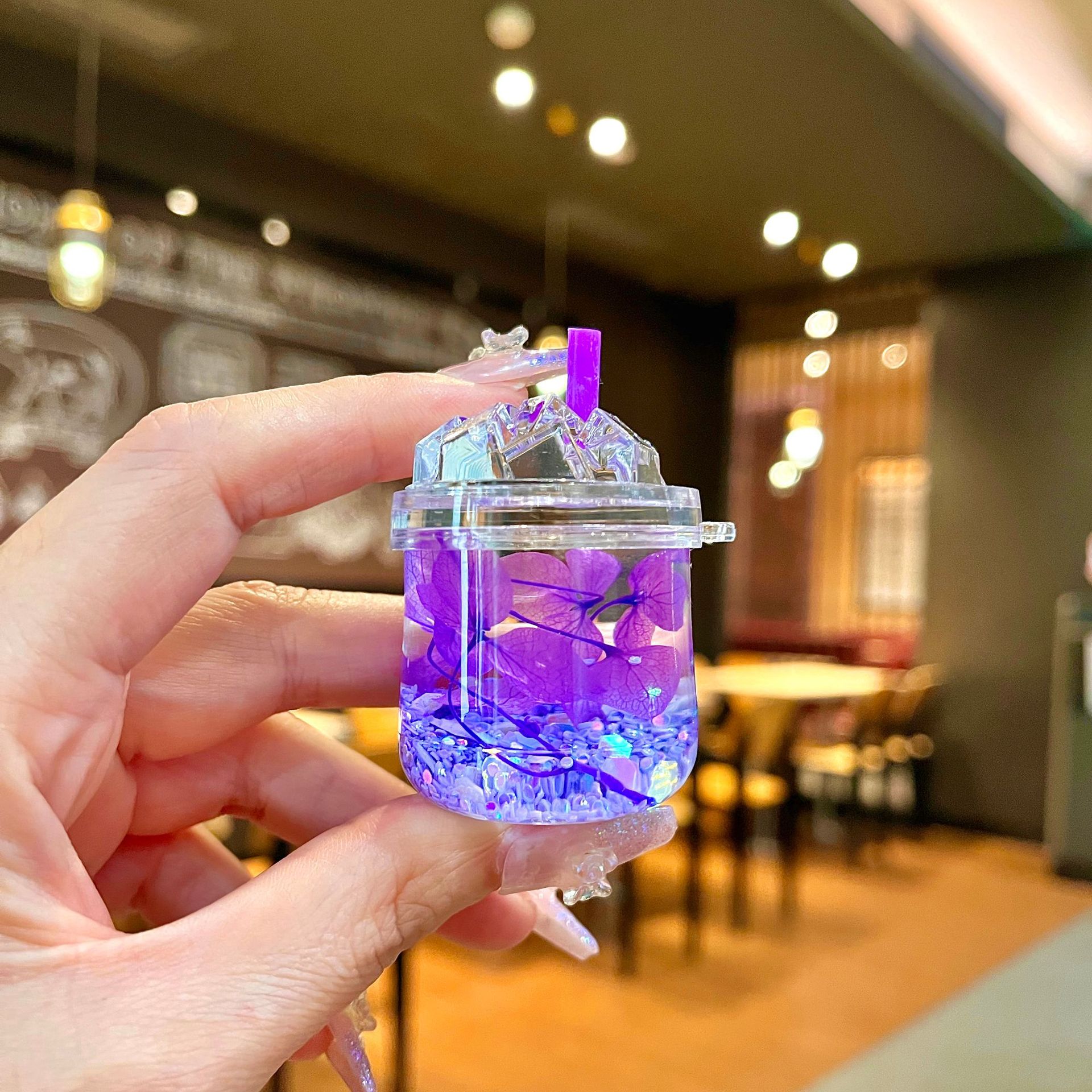 새로운 플래시 빙산 컵 오일을 모래 병 장식품 열쇠 고리 펜던트 소형 보석 블라인드 박스 복지 선물 도매
