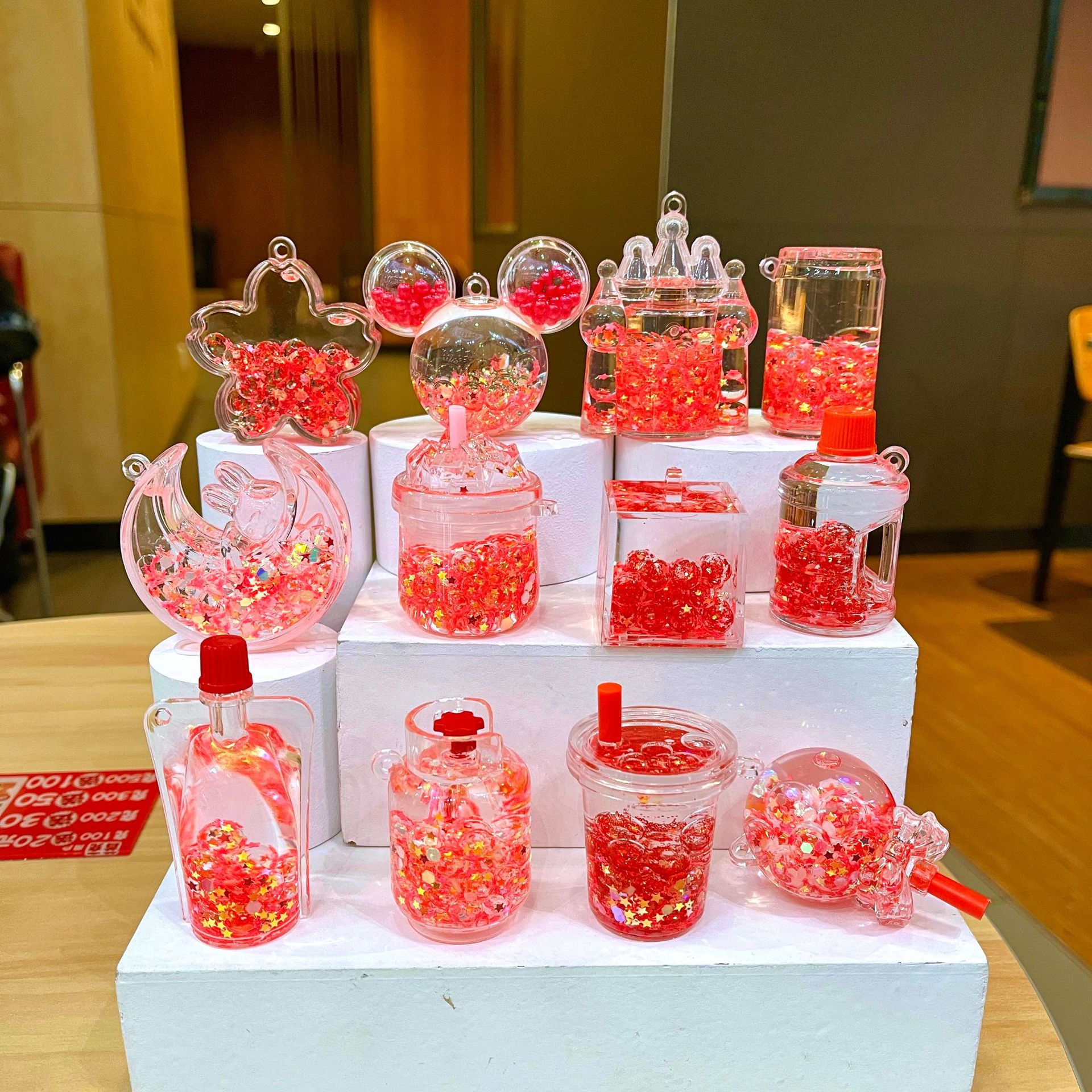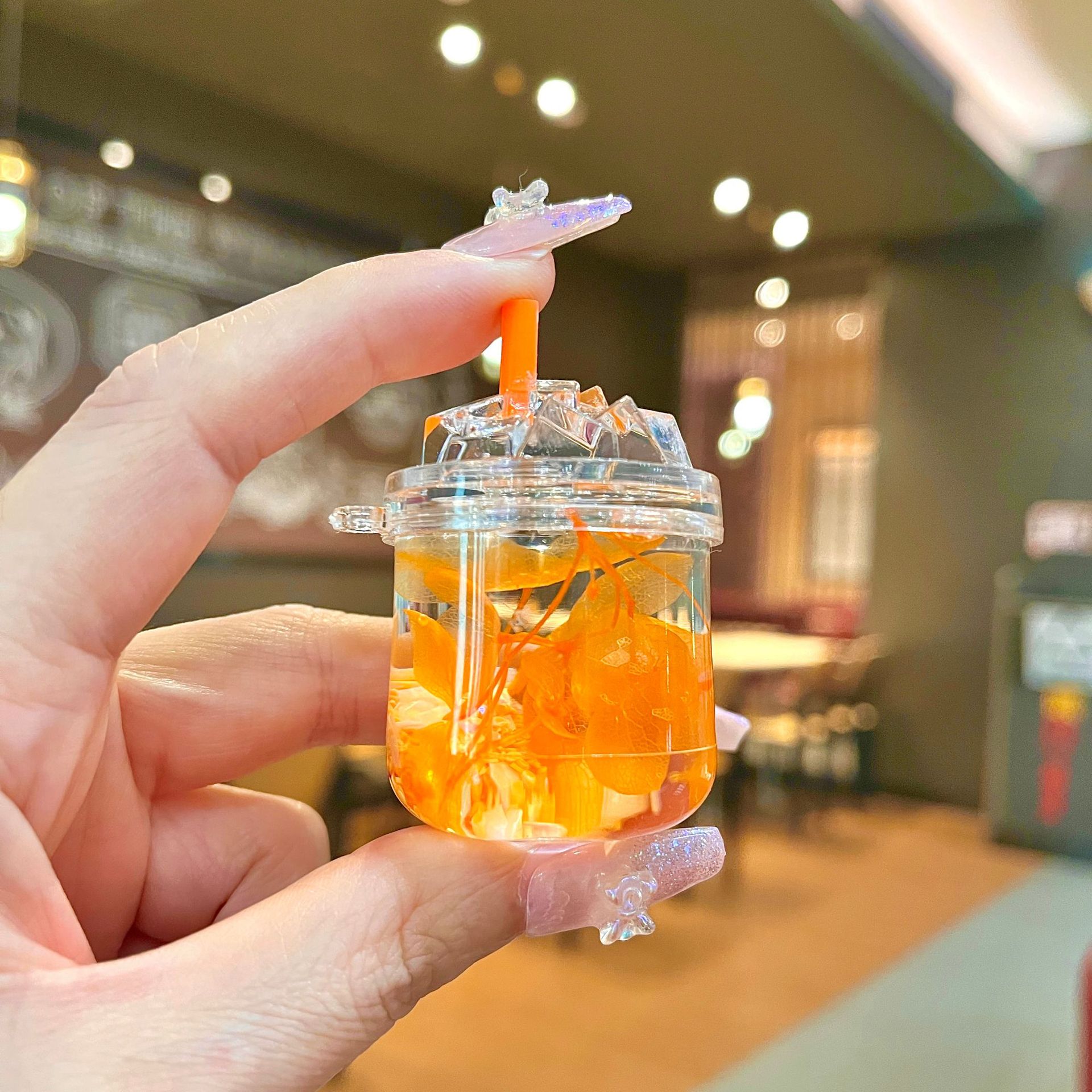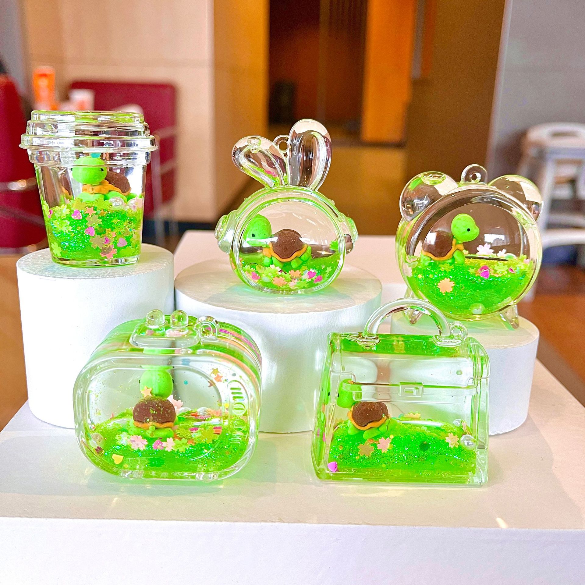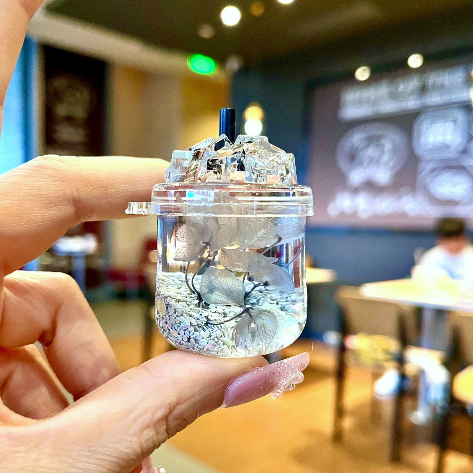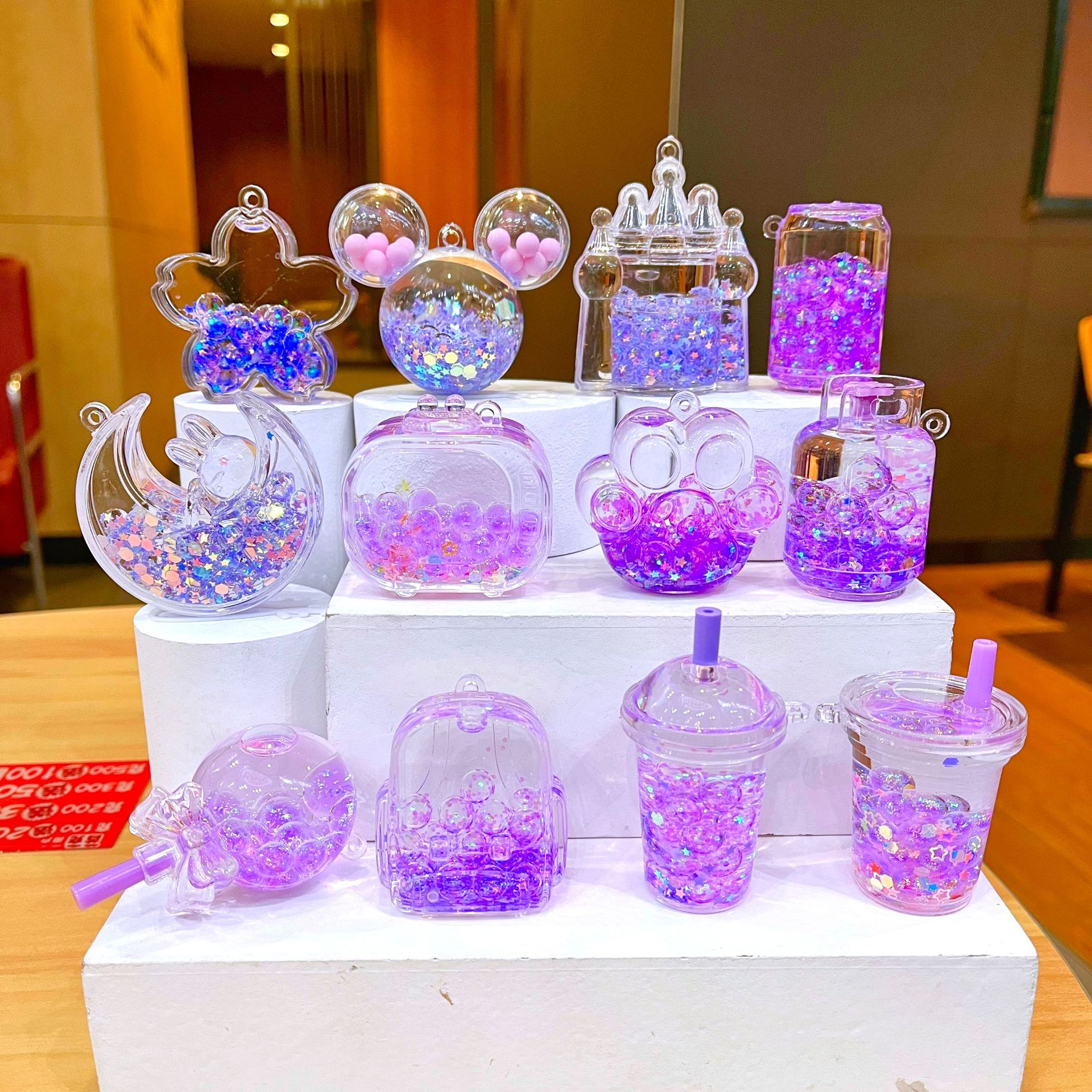 새로운 플래시 빙산 컵 오일을 모래 병 장식품 열쇠 고리 펜던트 소형 보석 블라인드 박스 복지 선물 도매