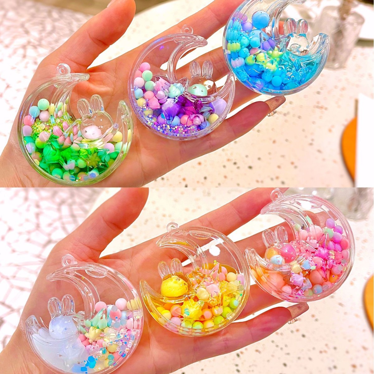 • 혼합 색상 빛나는 버블 비즈 스타 문 토끼