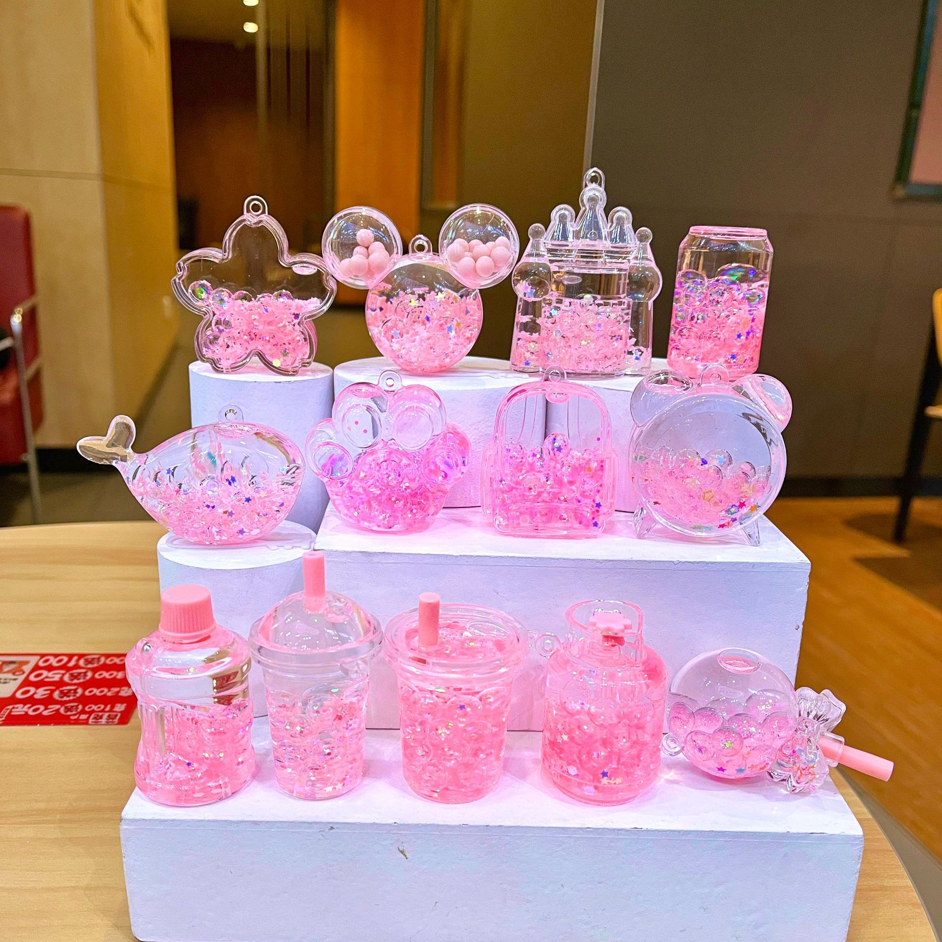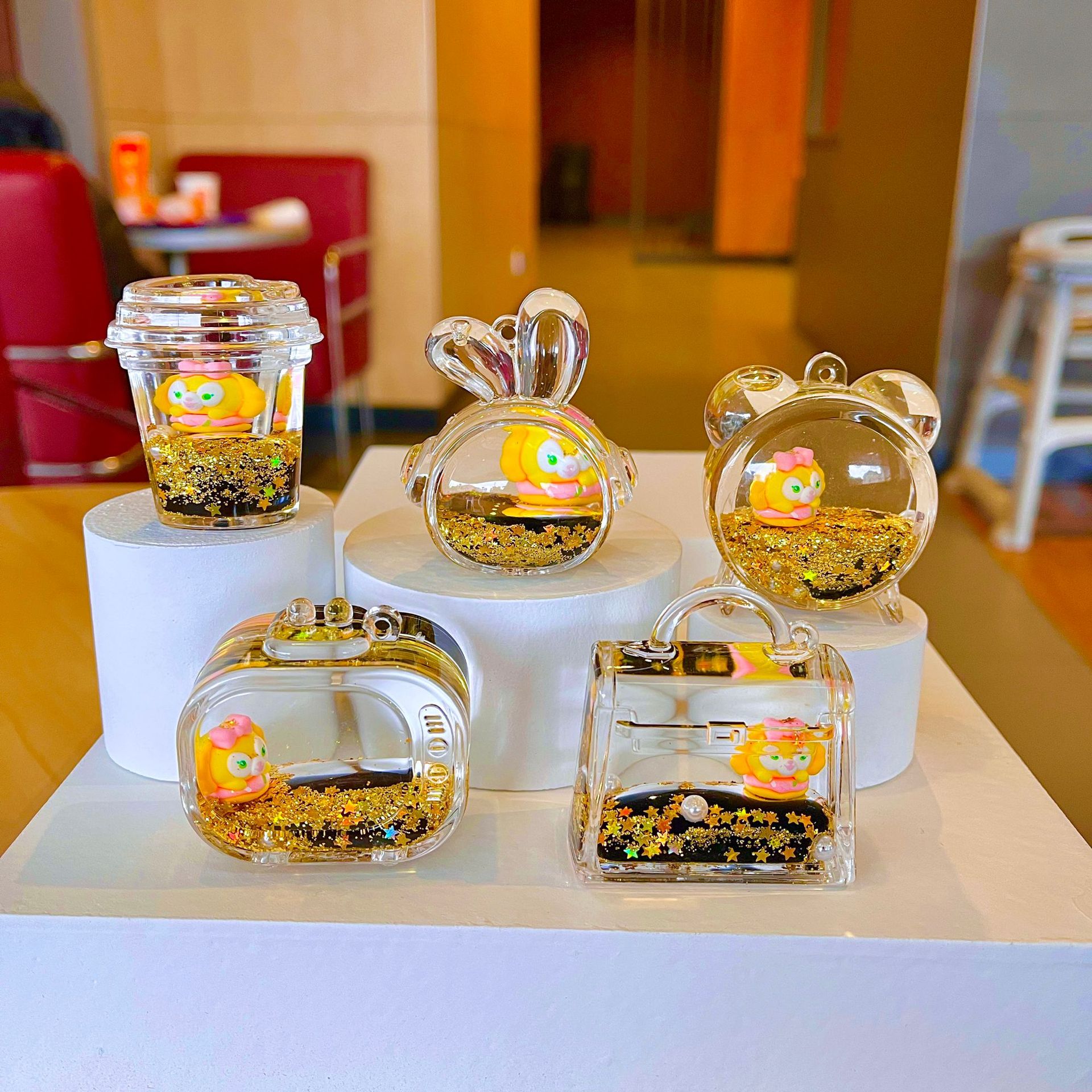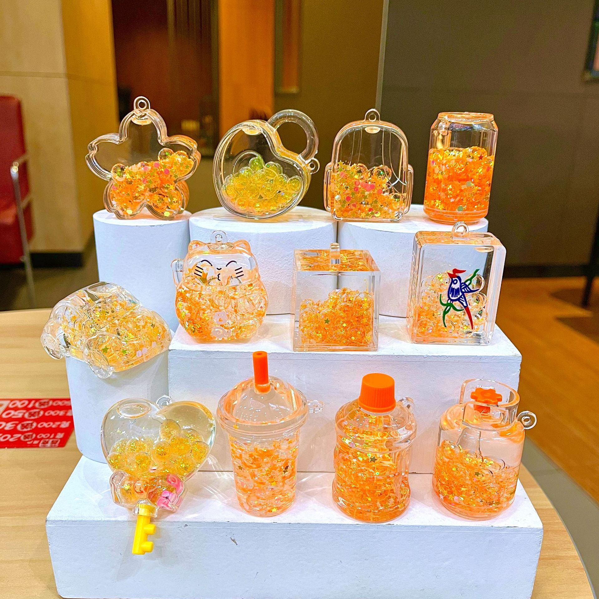 새로운 플래시 빙산 컵 오일을 모래 병 장식품 열쇠 고리 펜던트 소형 보석 블라인드 박스 복지 선물 도매스토어 가기
