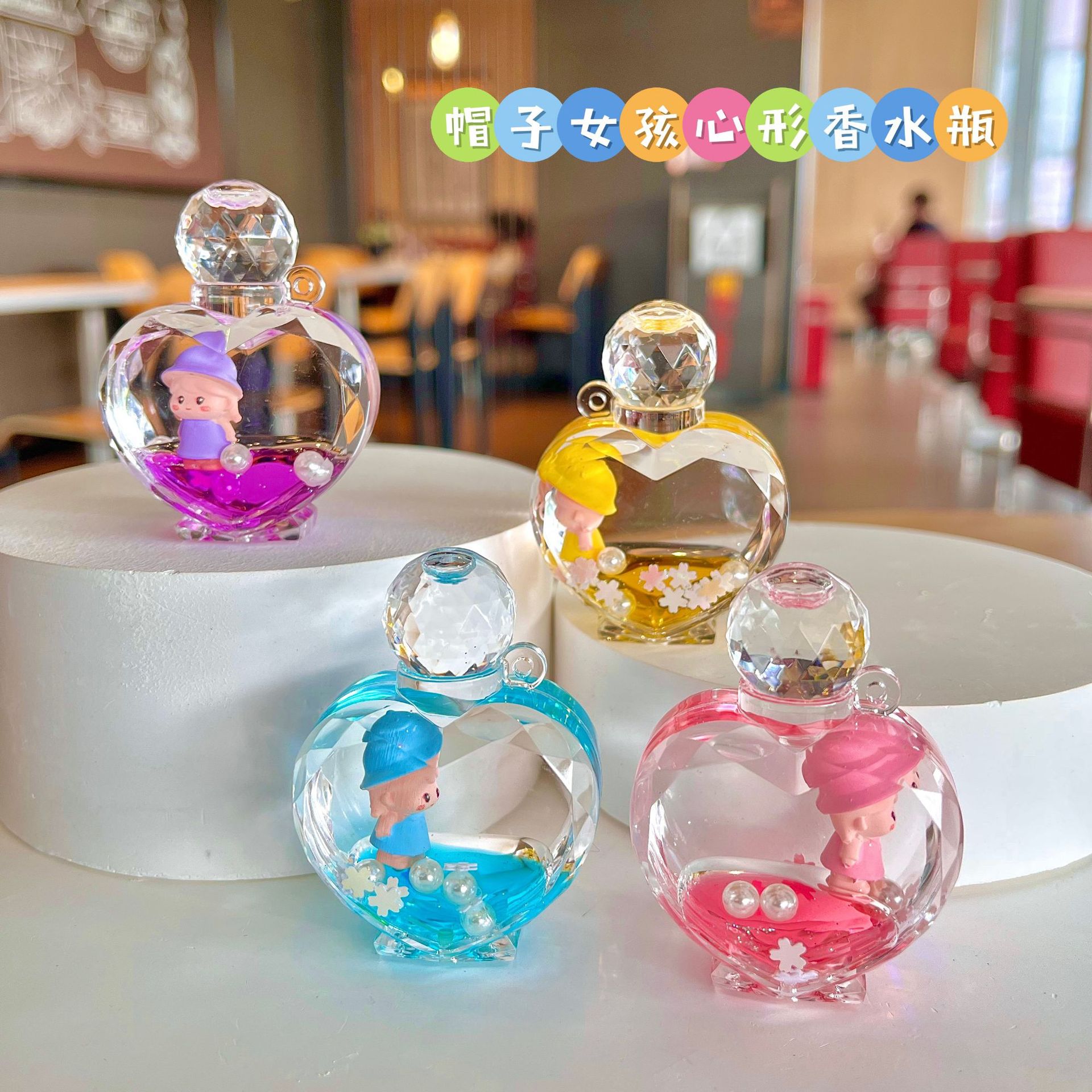 • 혼합 색 모자 소녀 하트 모양의 향수병