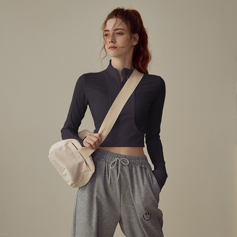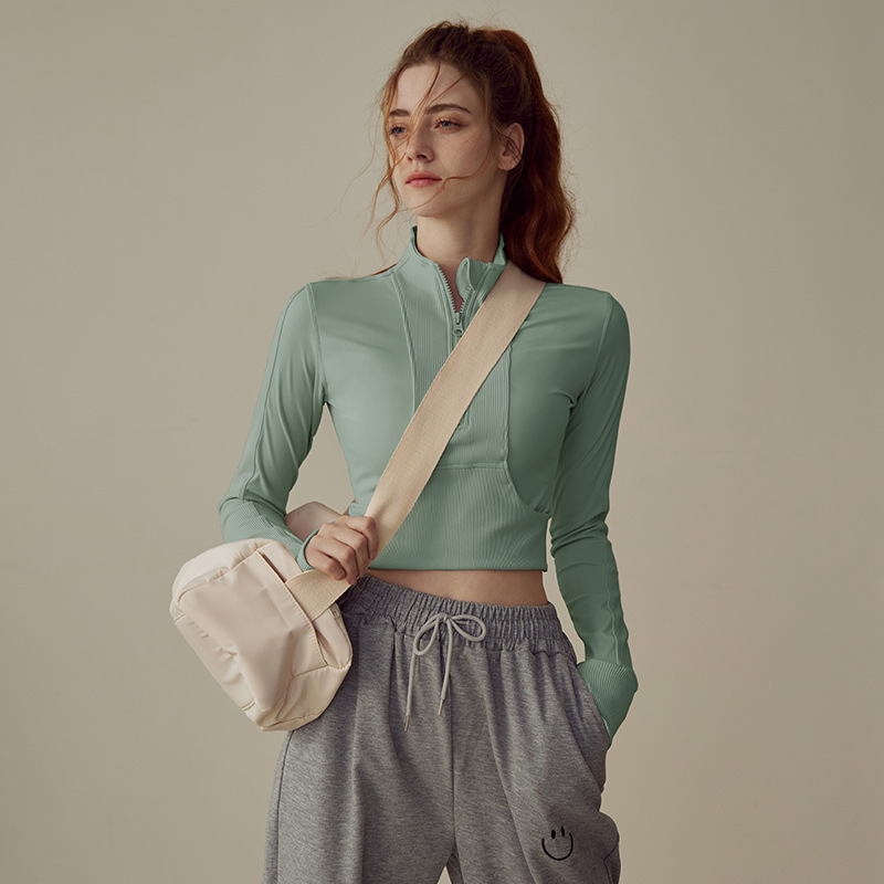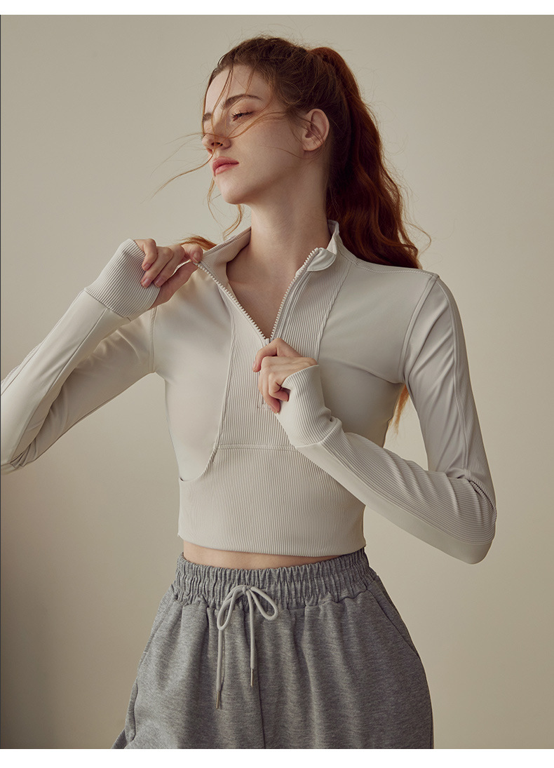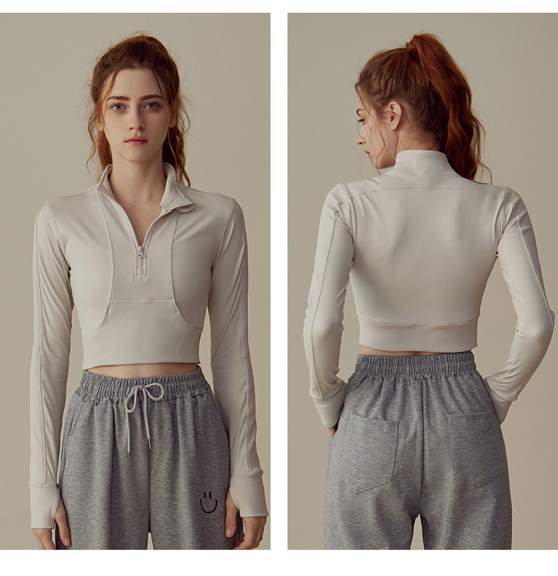 하프 지퍼 요가 세트 여자의 가을과 겨울 꽉 긴 소매 세트 실행 피트니스 재킷 훈련 사이클링 스포츠 탑