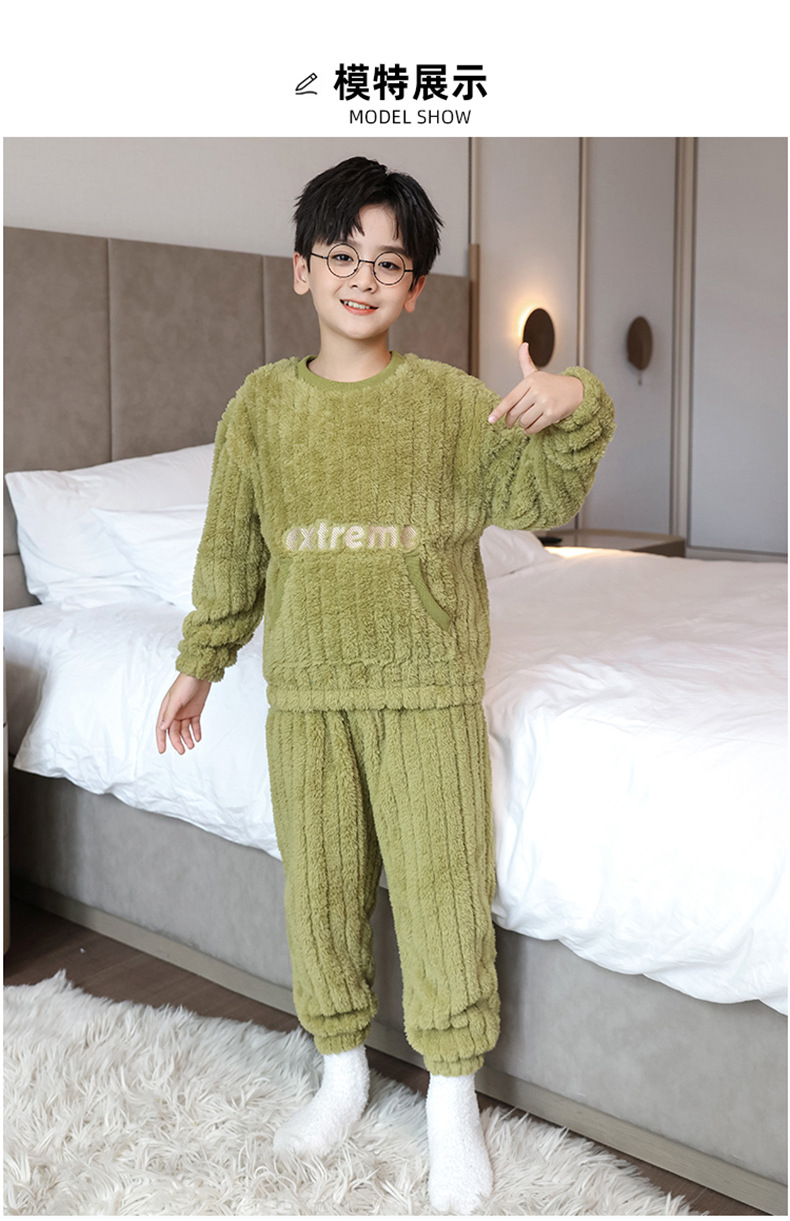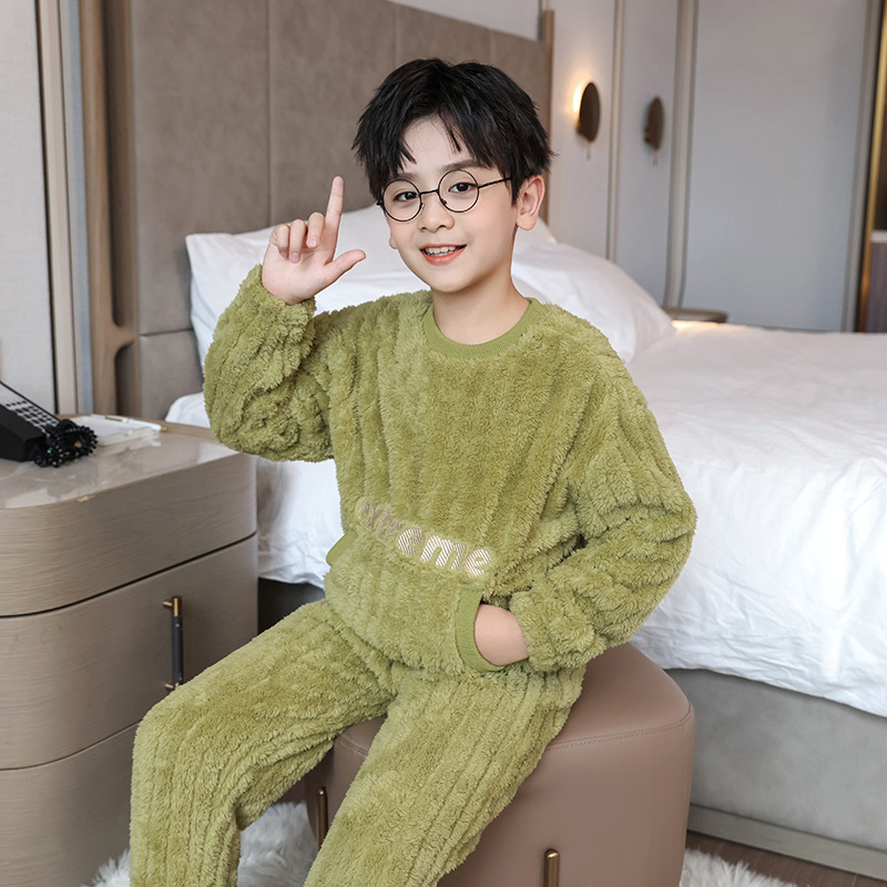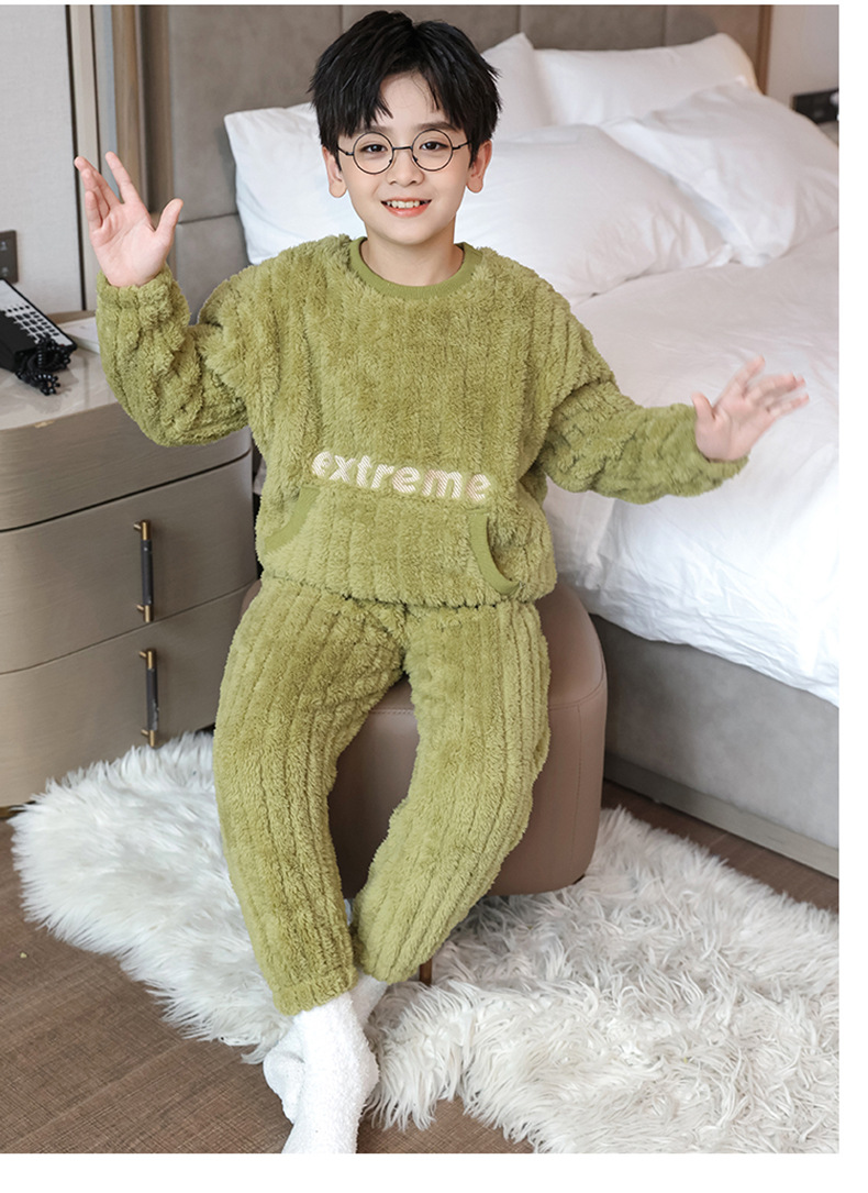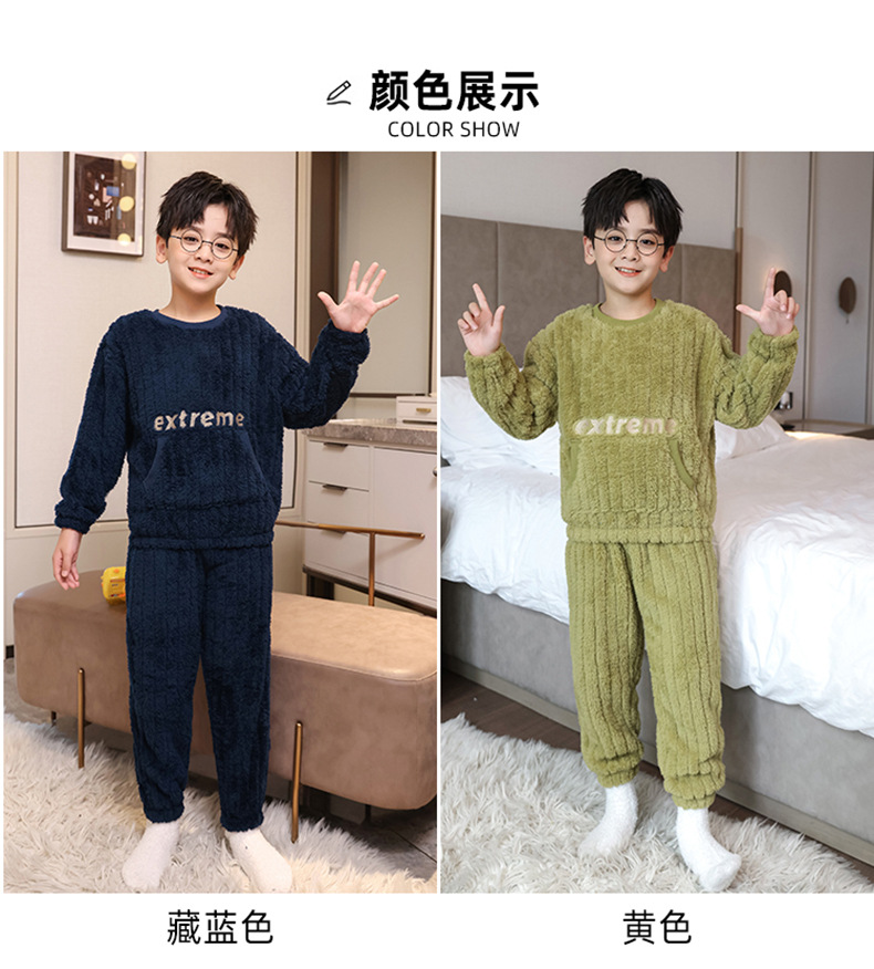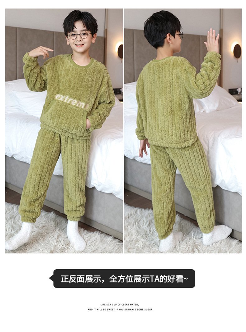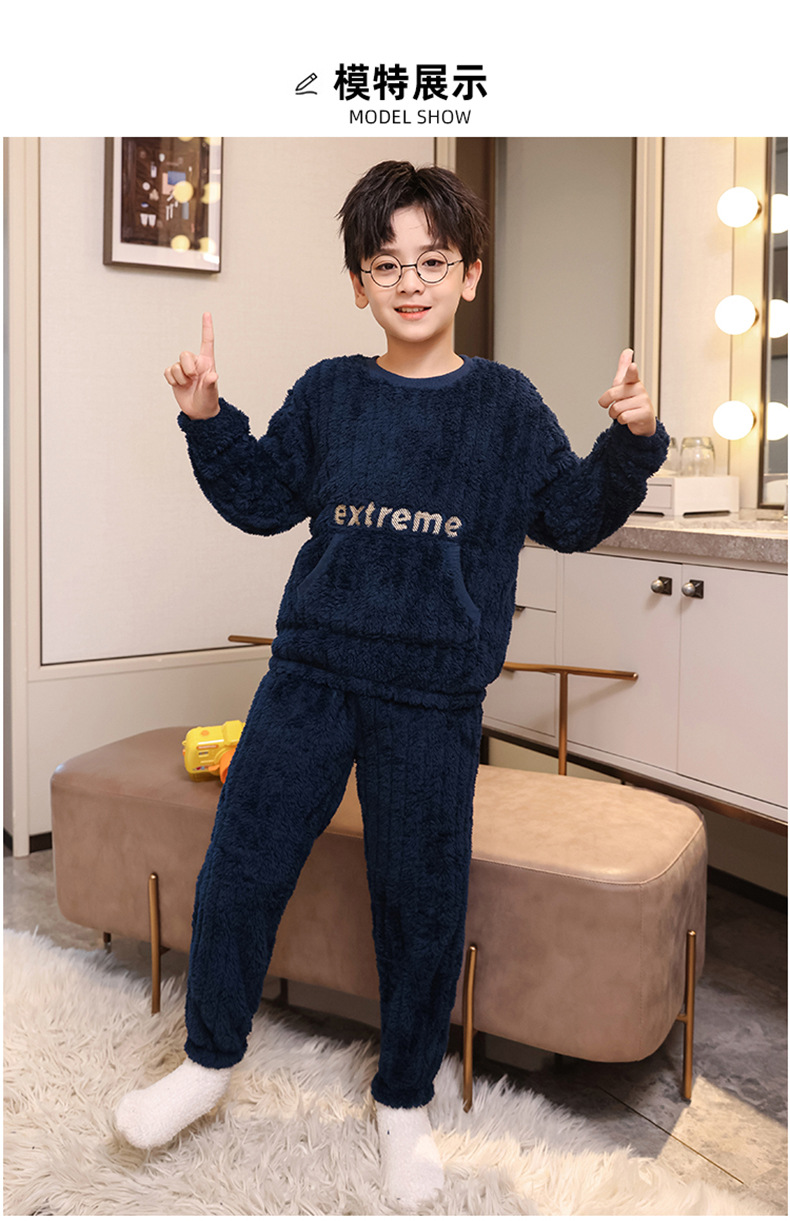 가을과 겨울 따뜻한 잠옷 플란넬 남아 '긴팔 가정복 기모 두꺼운 세트 느슨한 대형 및 중형 어린이 및 소년