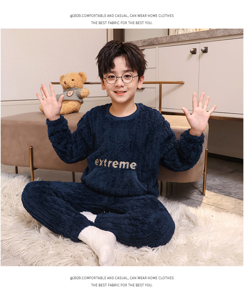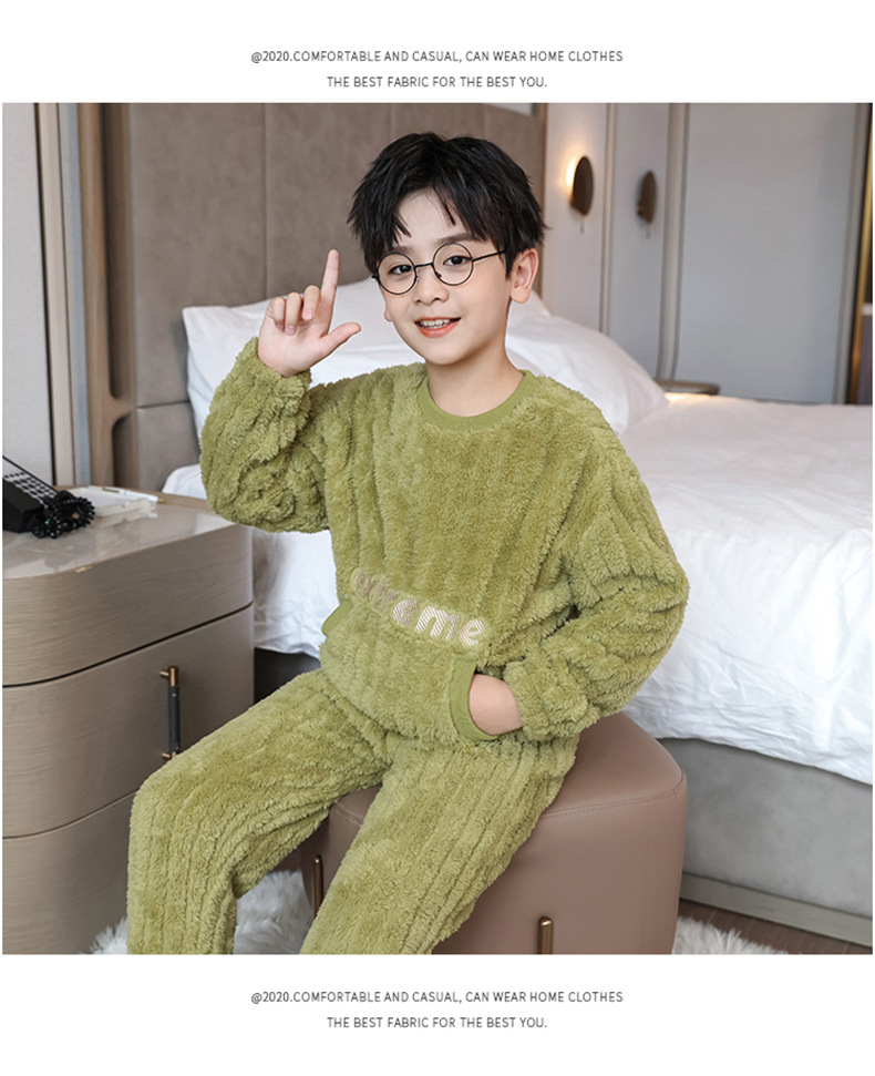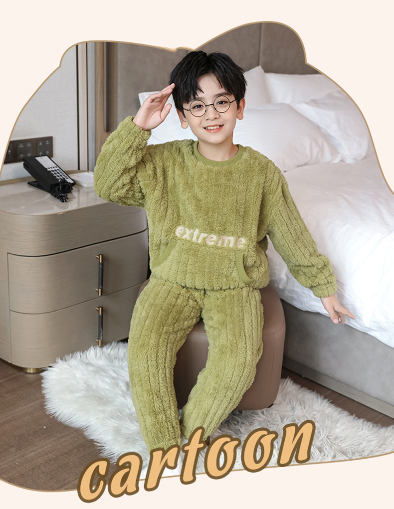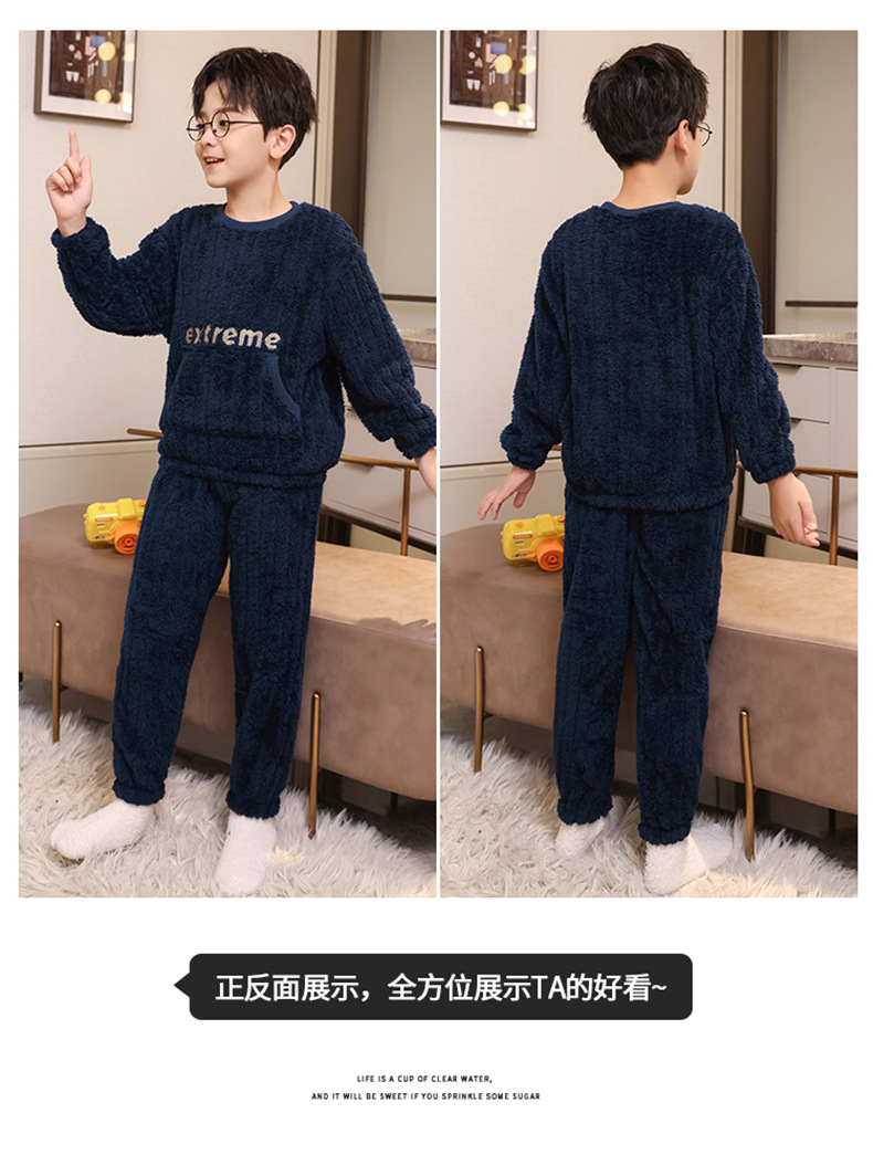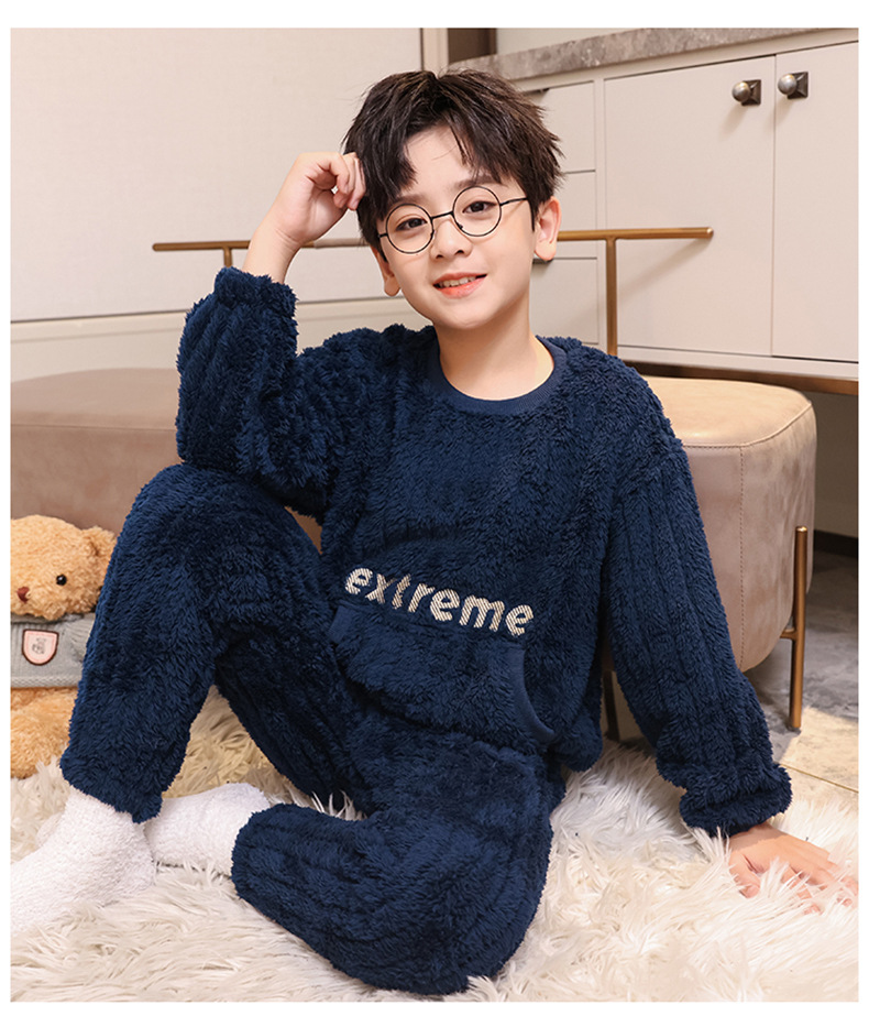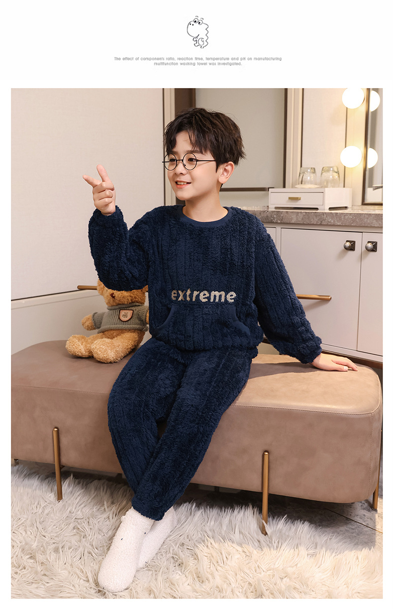 가을과 겨울 따뜻한 잠옷 플란넬 남아 '긴팔 가정복 기모 두꺼운 세트 느슨한 대형 및 중형 어린이 및 소년