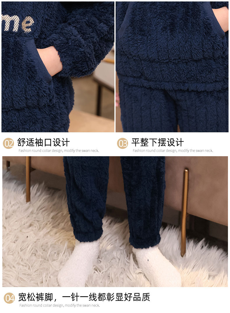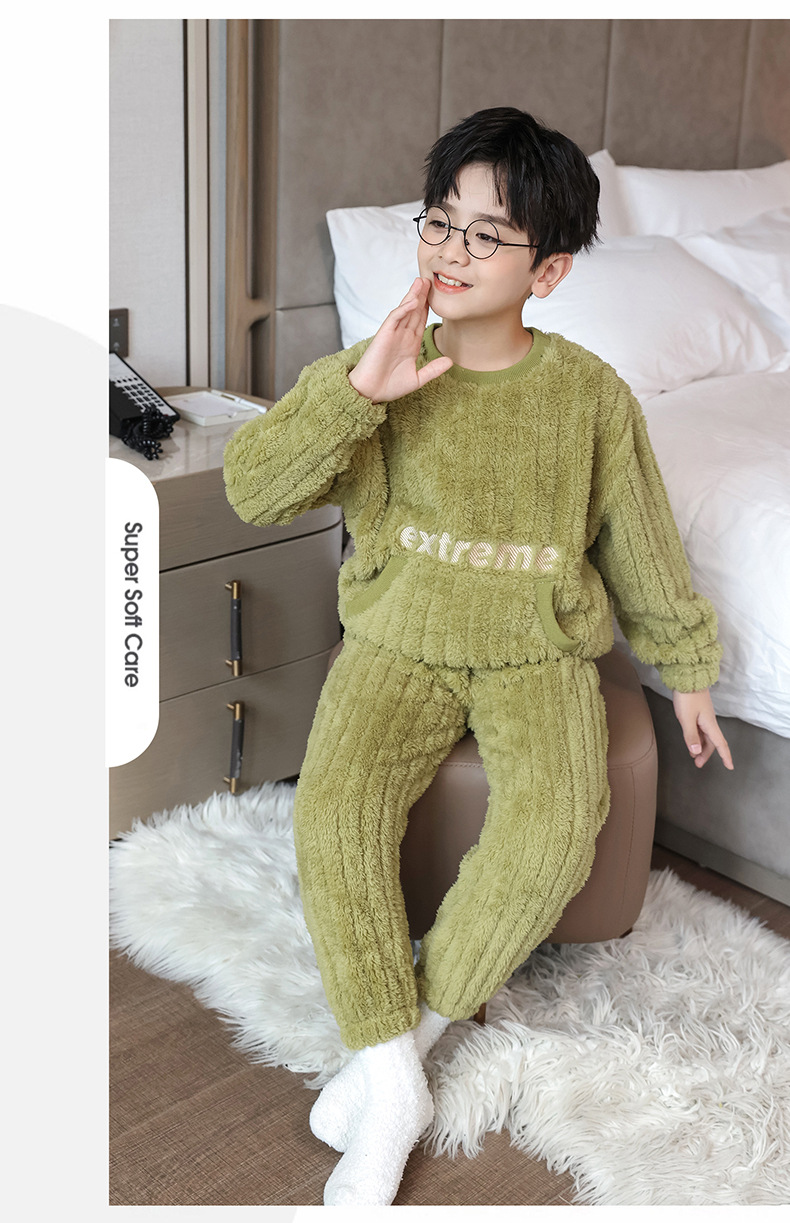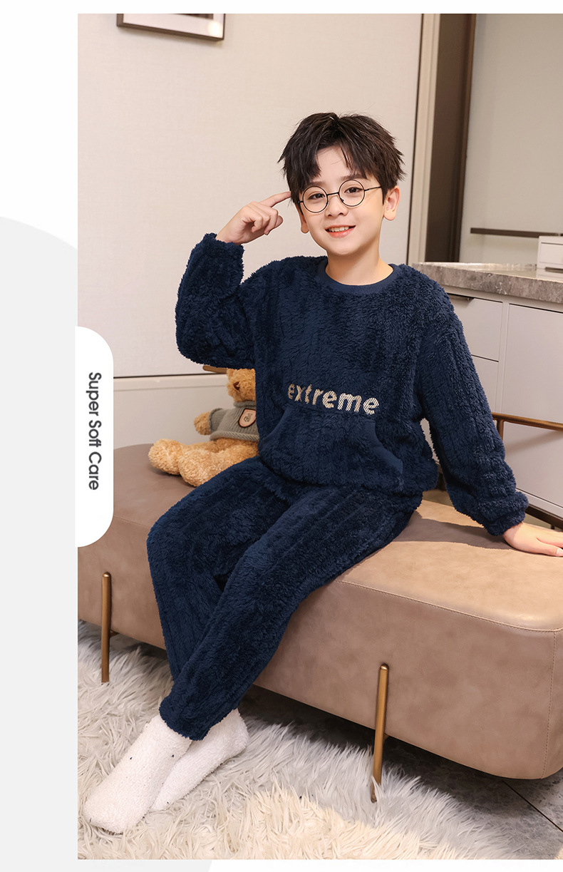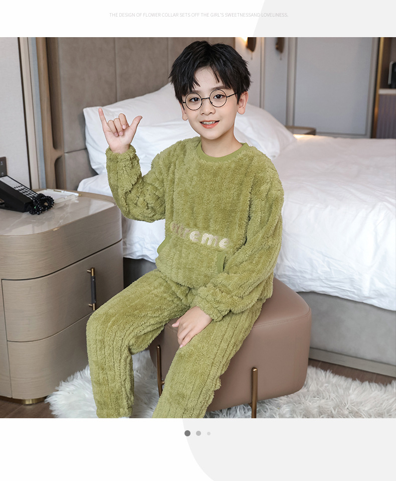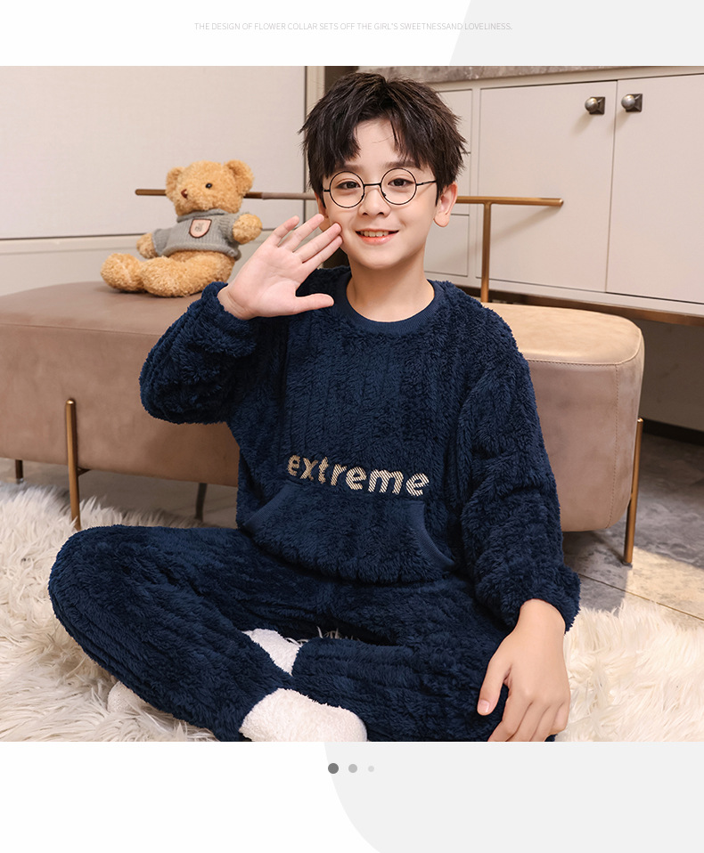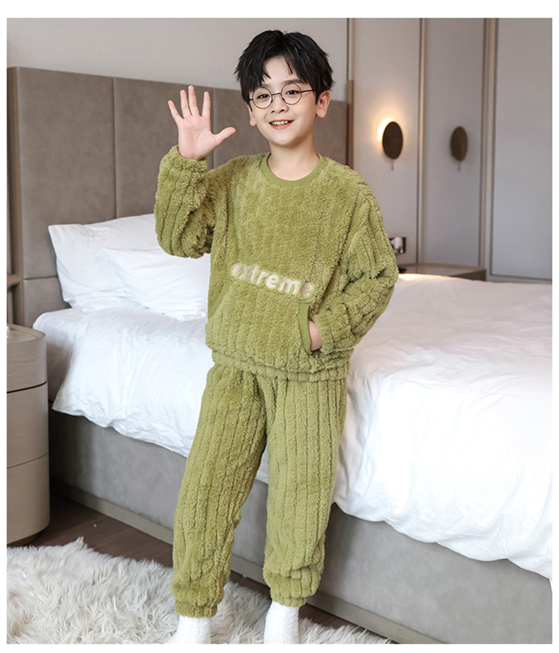 가을과 겨울 따뜻한 잠옷 플란넬 남아 '긴팔 가정복 기모 두꺼운 세트 느슨한 대형 및 중형 어린이 및 소년