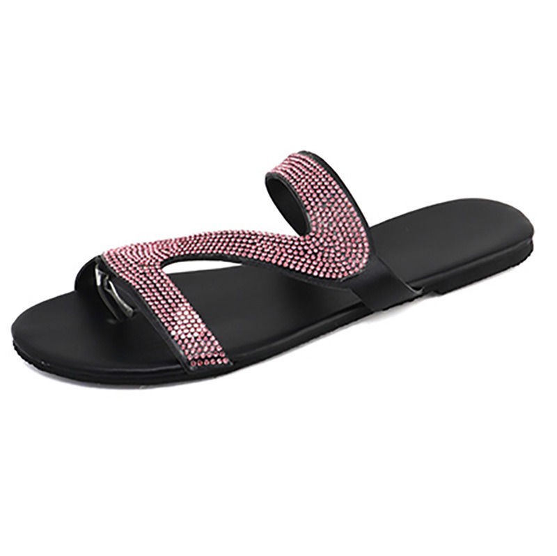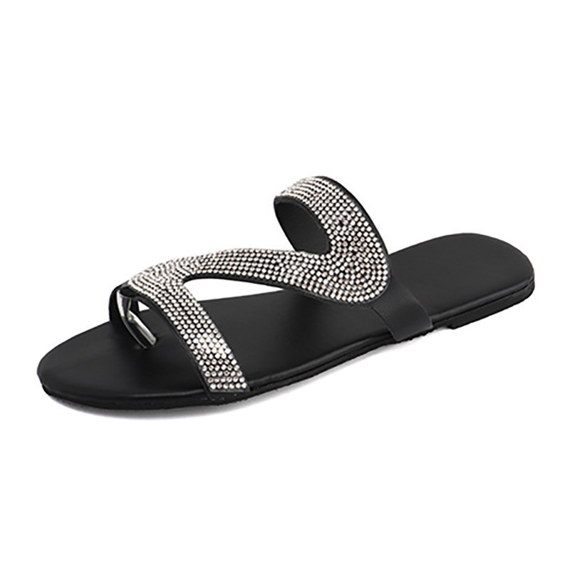 아마존 플러스 사이즈 여성 슬리퍼 유럽과 미국 패션 모조 다이아몬드 샌들 편안한 플러스 사이즈 외부 착용 플랫 샌들