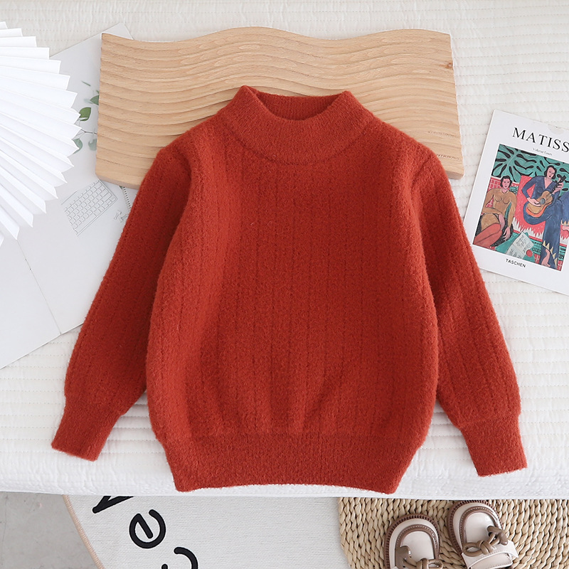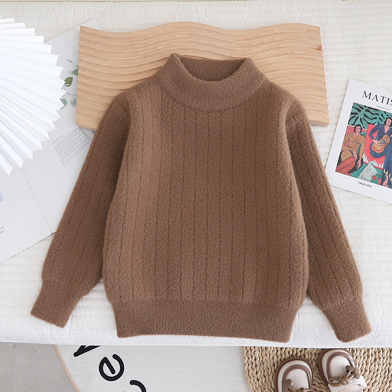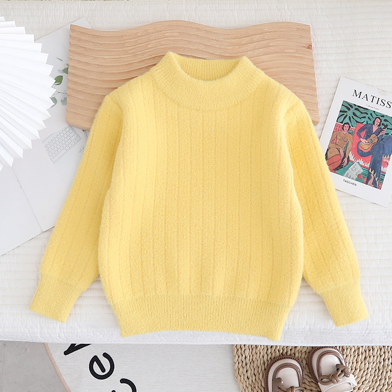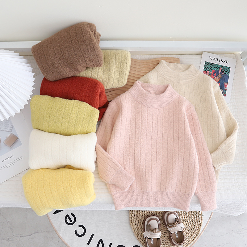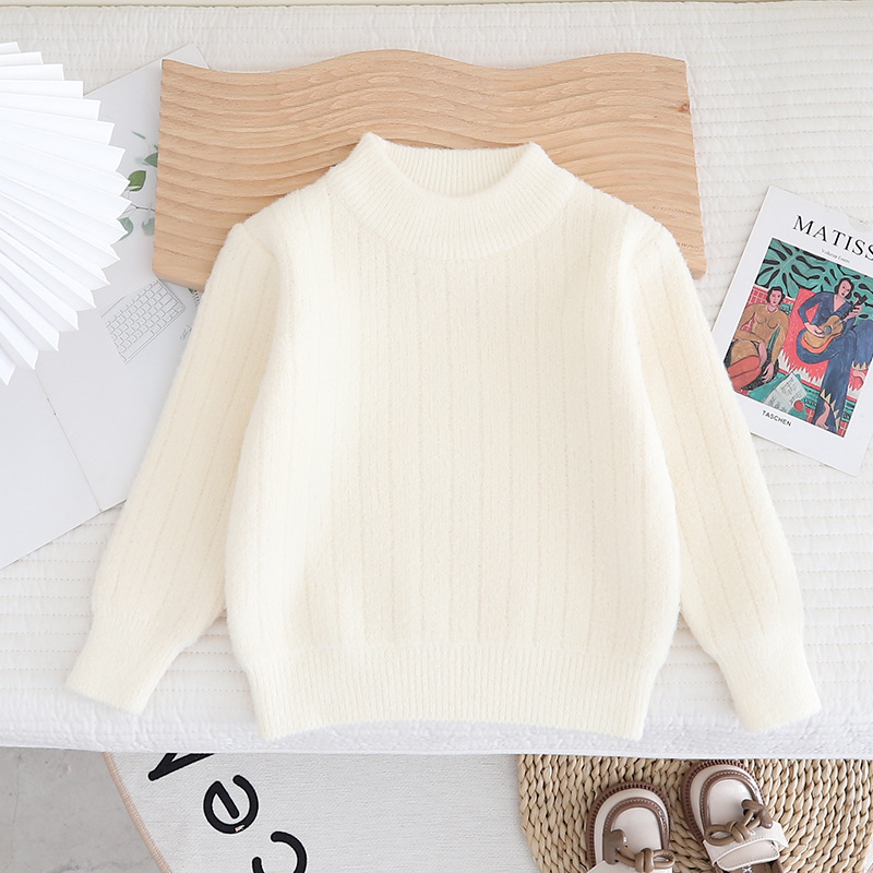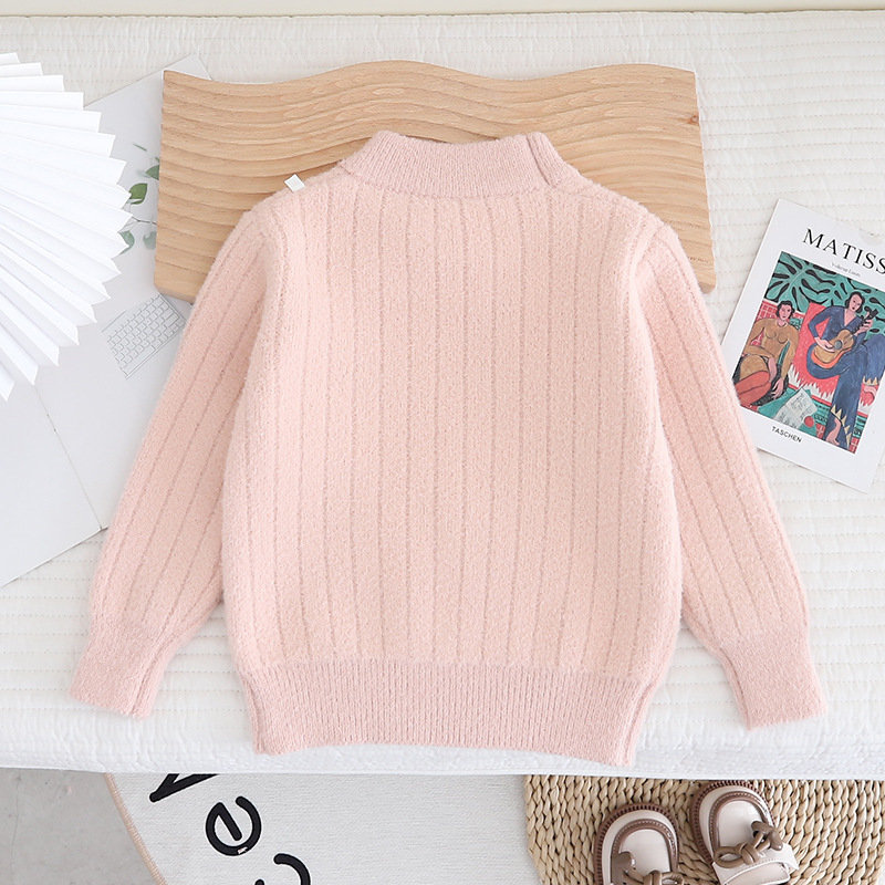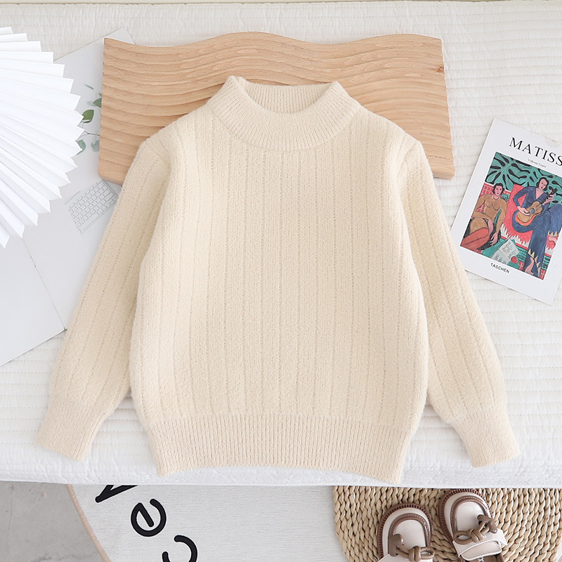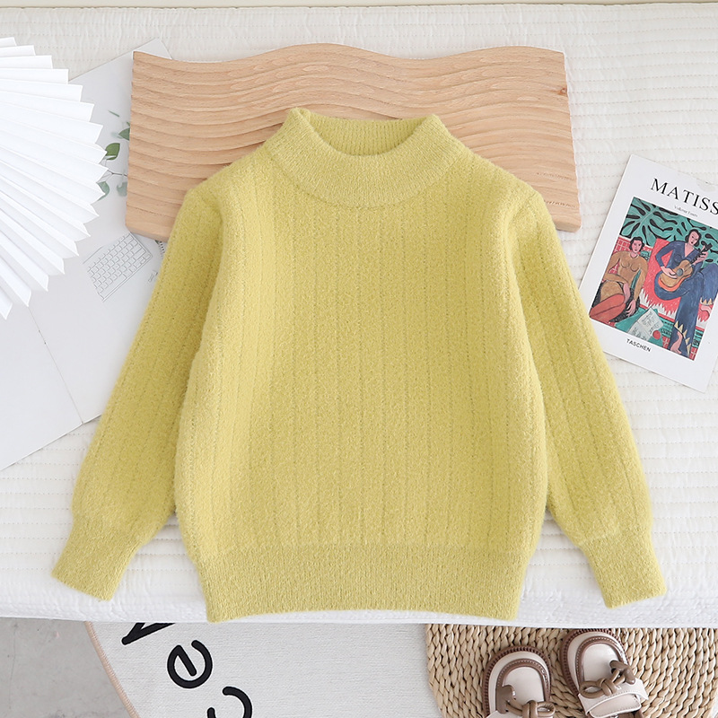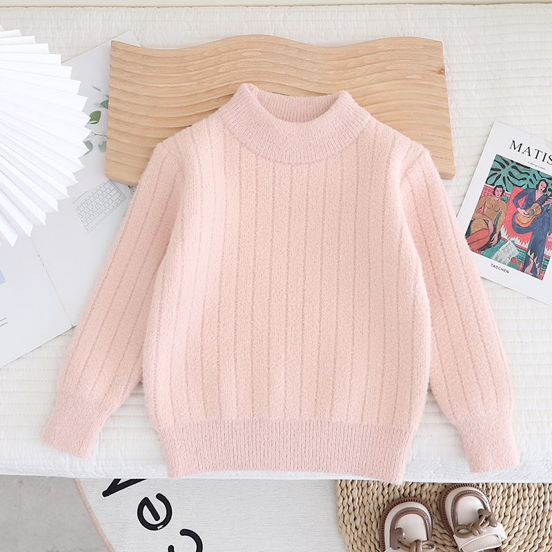 여아 스웨터 2023 새로운 가을 겨울 의류 아동 캐주얼 니트 탑 어린이 단색 라운드 넥 세련된 베이스 셔츠