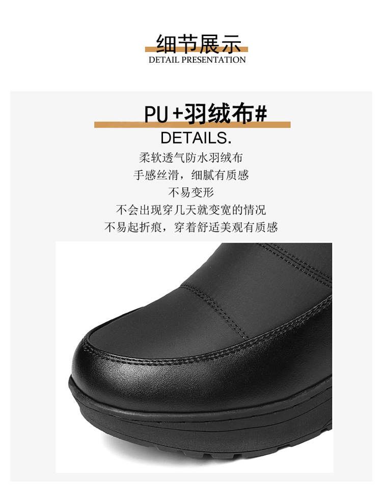 【鞋面材质】:PU+太空棉填充+防水羽绒布