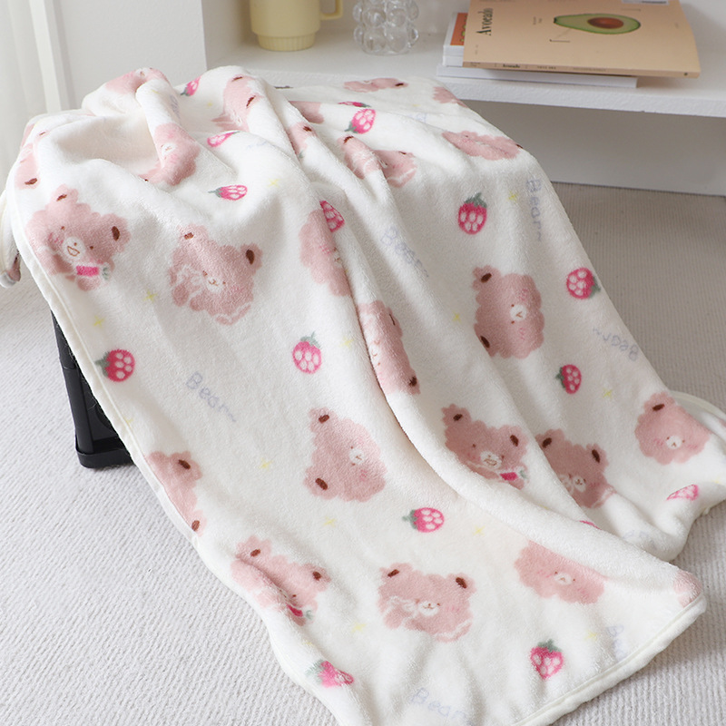 애완 동물 고양이 차가운 따뜻한 담요 인형 고양이 귀여운 만화 딸기 곰 패턴 부드럽고 편안한 작은 담요