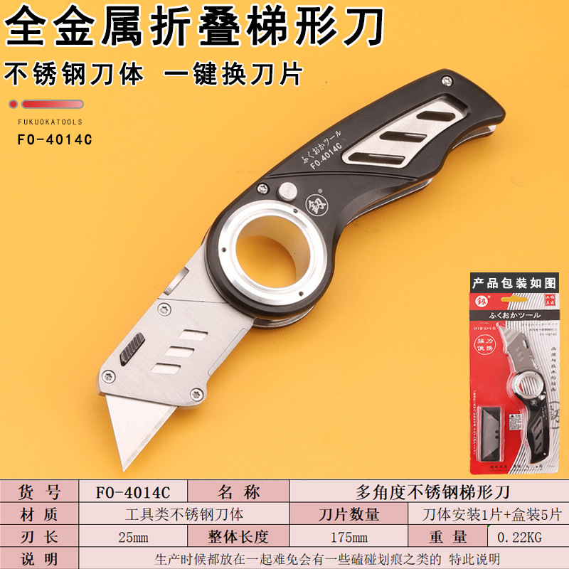 후쿠오카 멀티 앵글 스테인레스 스틸 사다리꼴 칼 FO-4014C 수제 헤비 듀티 아트 칼 벽지 칼 홀더 작은 열린 상자스토어 가기
