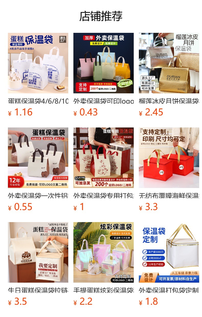 생일 케이크 보온 가방 두꺼운 컬러풀 부직포 알루미늄 호일 가방 손잡이 로고 대형 포장 테이크아웃 가방 도매스토어 가기