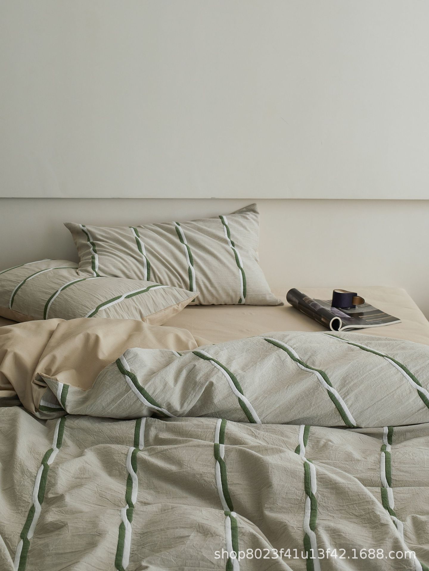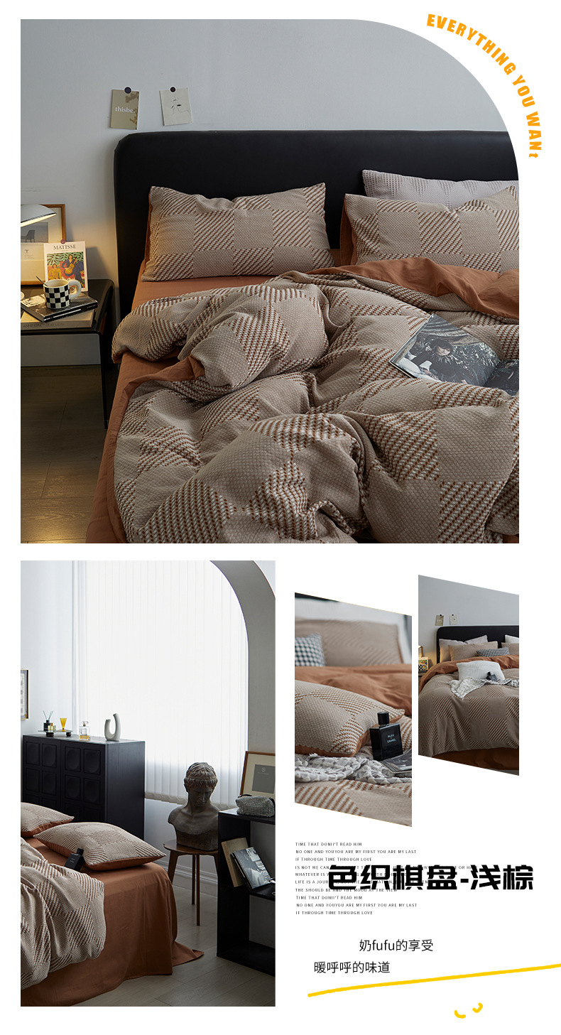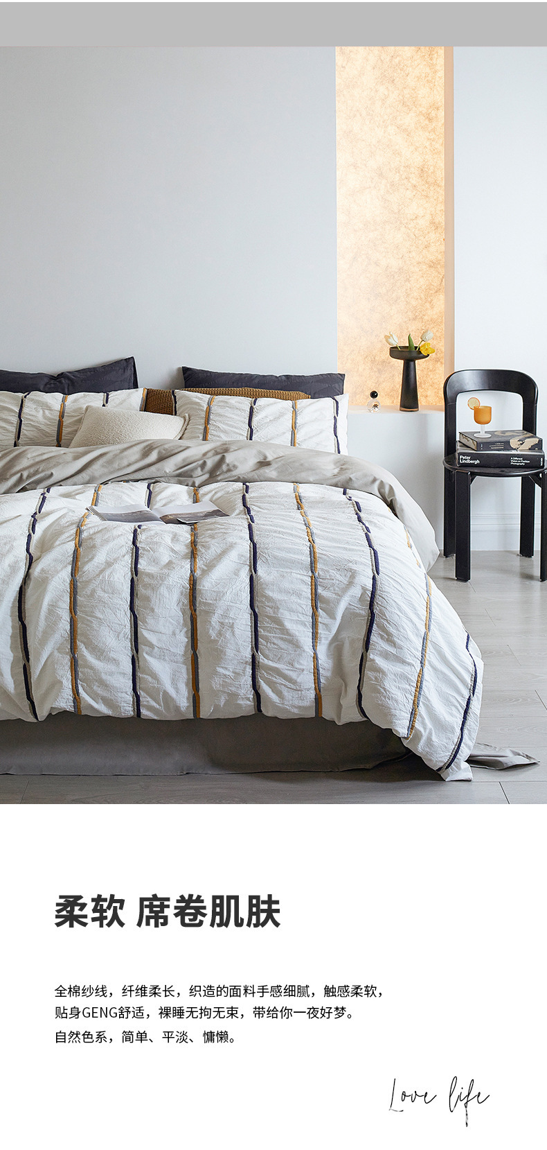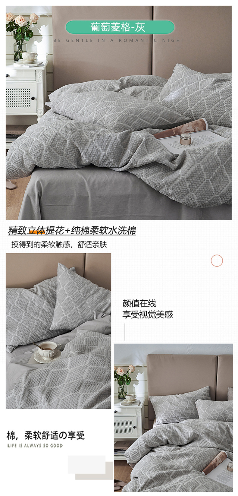 고급 센스 원사 염색 3 차원 자카드 면 4 피스 세트 100 면 침대 시트 3 피스 퀼트 커버 침구 4스토어 가기