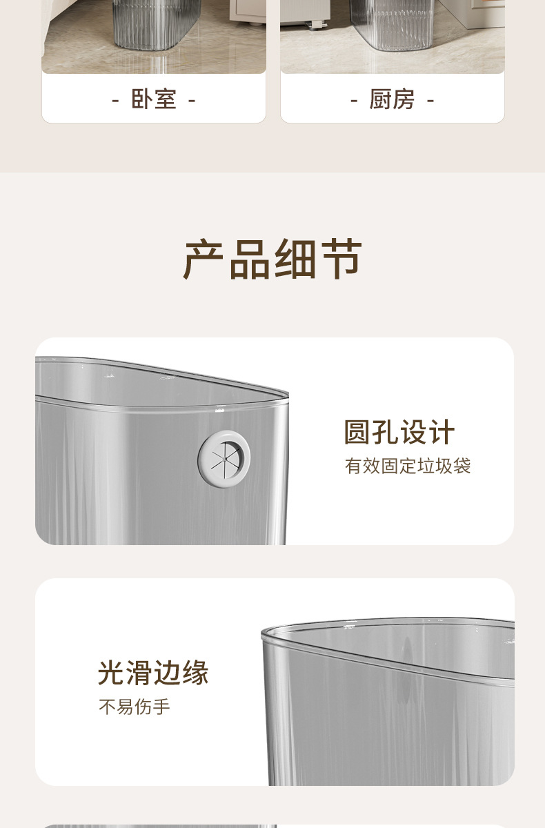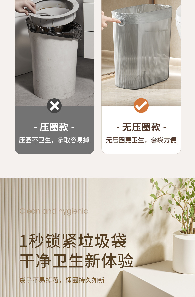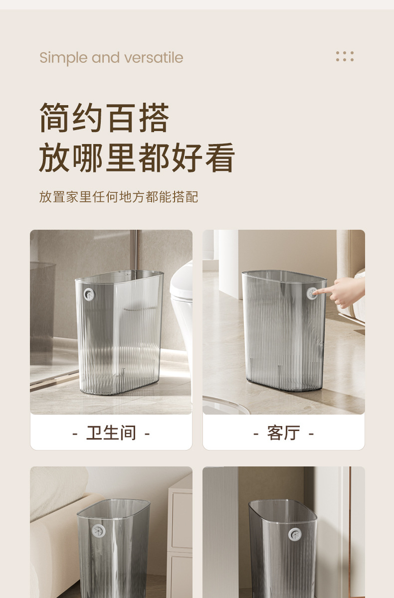 가벼운 럭셔리 사각 쓰레기통 가정용 욕실 틈새 거실 주방 침실 대용량 휴지통 화장실 보관 양동이