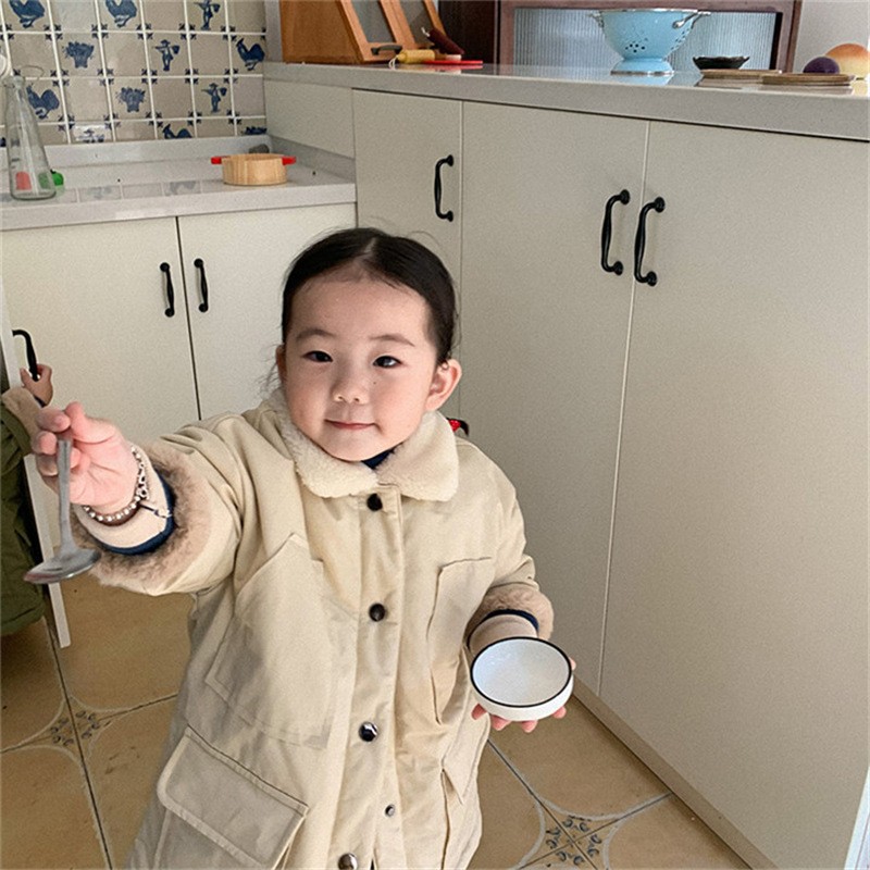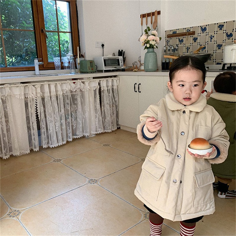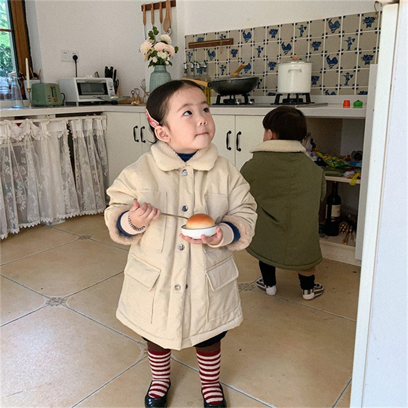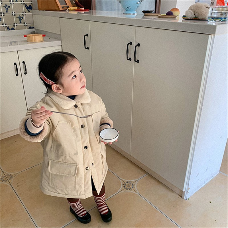 한국 아동용 롱 윈드브레이커 재킷 2025 겨울 신상 남아 여아 아기 토끼털 플러시 코튼 코트 겨울용 두꺼운스토어 가기