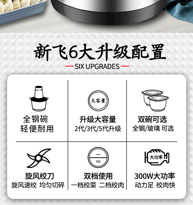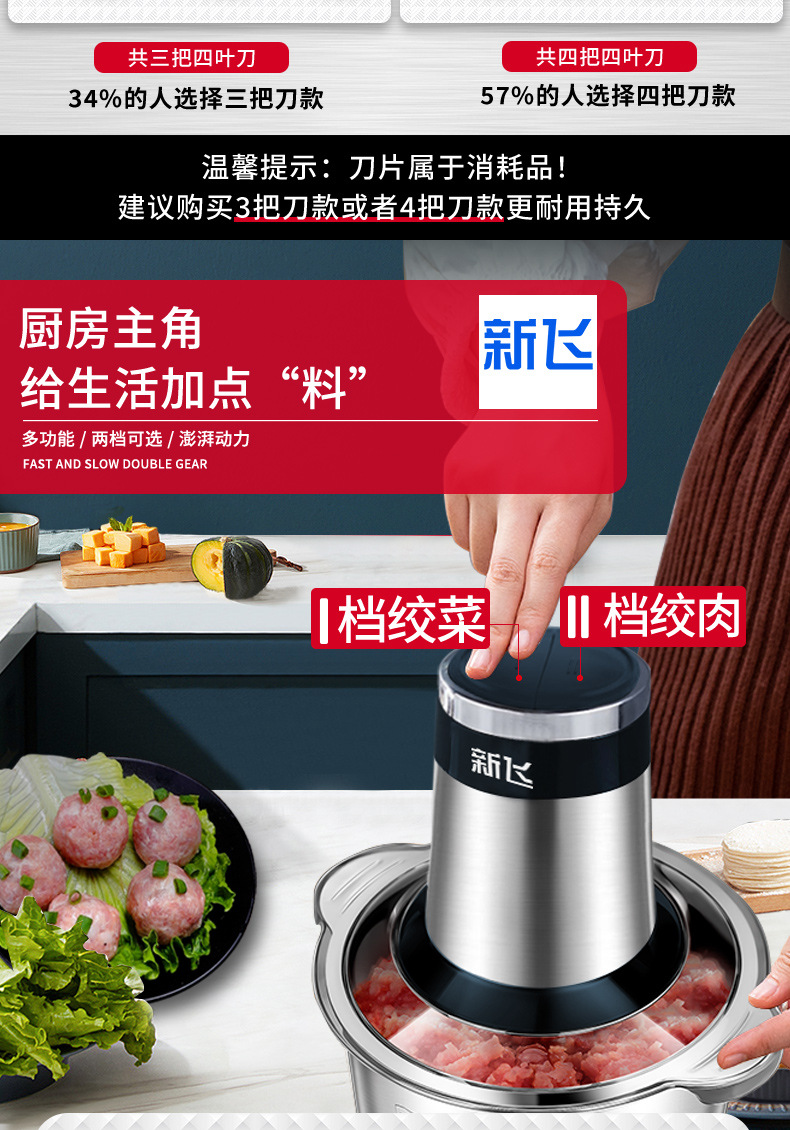 Xinfei 고기 분쇄기 가정용 상업용 고기 채우는 스테인레스 스틸 다기능 전기 프로세서 마늘 다진 야채 채우는 기계