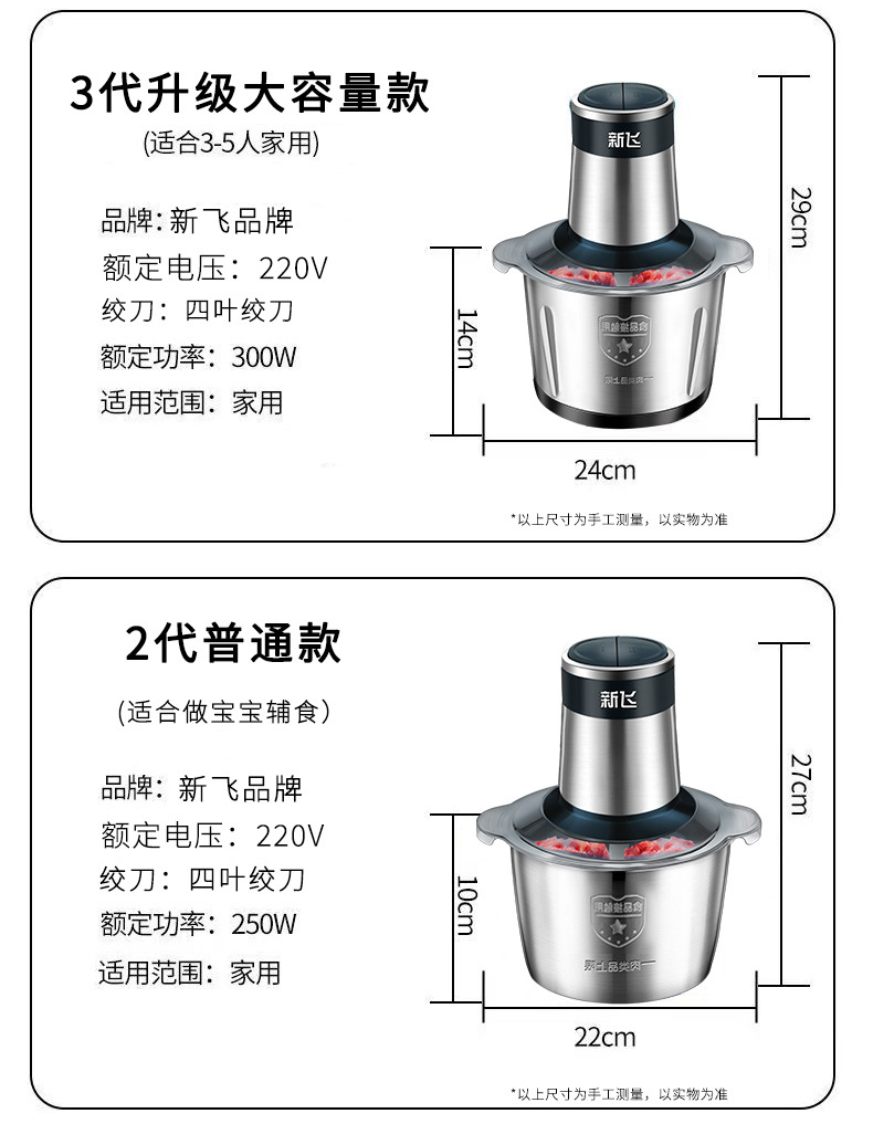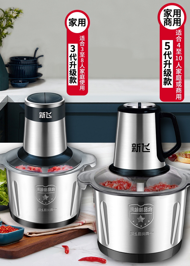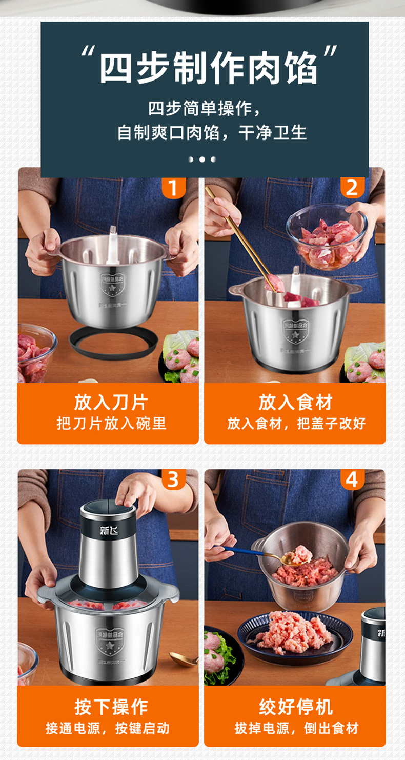 Xinfei 고기 분쇄기 가정용 상업용 고기 채우는 스테인레스 스틸 다기능 전기 프로세서 마늘 다진 야채 채우는 기계스토어 가기