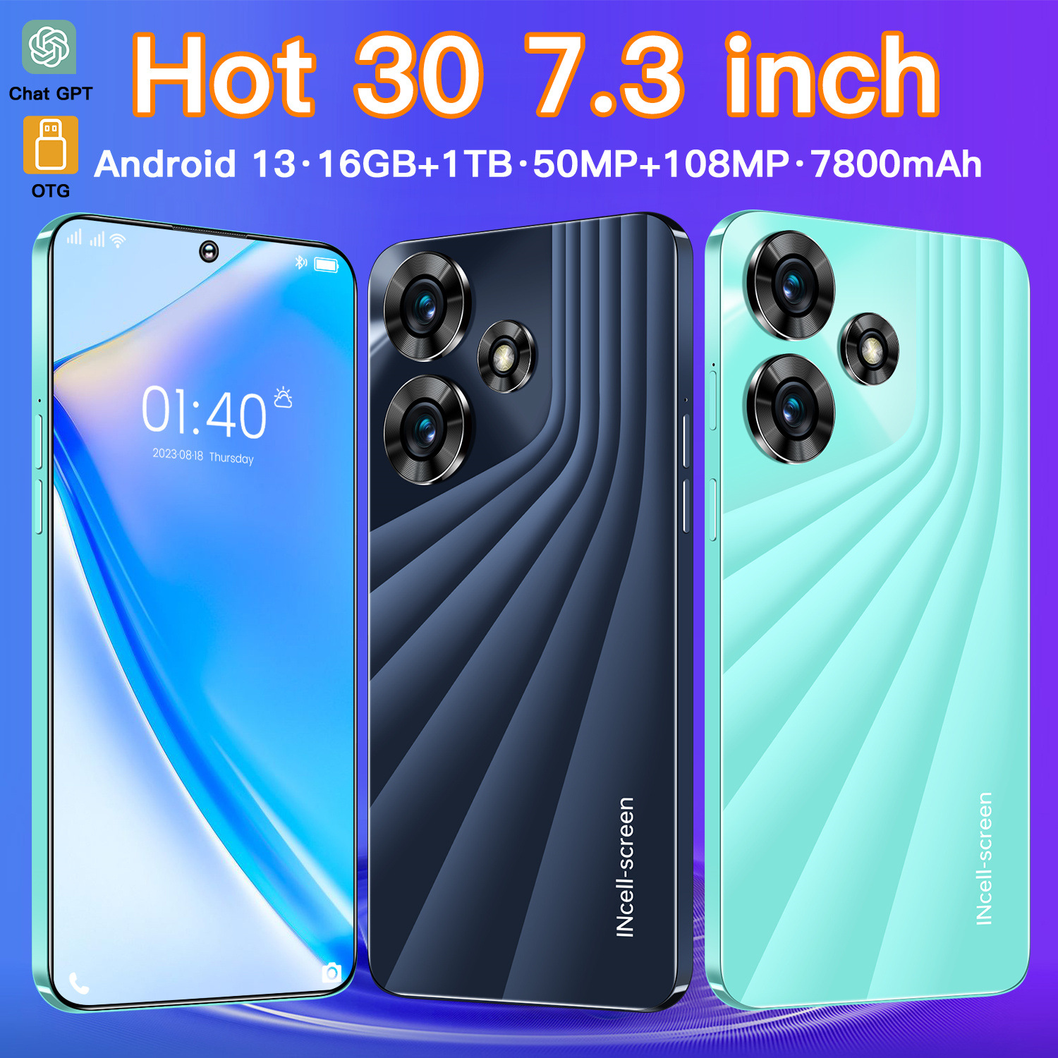 핫 30 크로스 보더 7.3 인치 4G 안드로이드 3 + 64G 스마트 폰 측면 지문 전화 제조 업체 대외 무역 도매 세대