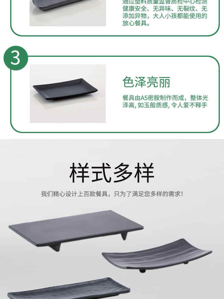 직사각형 접시 멜라민 식기 플라스틱 검은 젖빛 냄비 가게 창조적 인 일본어-한국 스시 바베큐 케밥 고기 접시스토어 가기