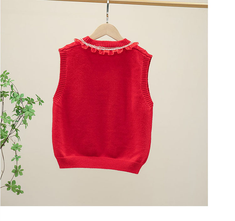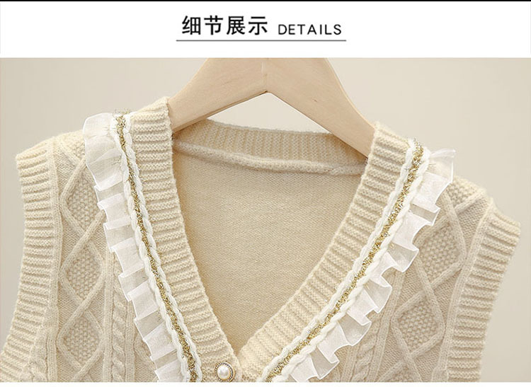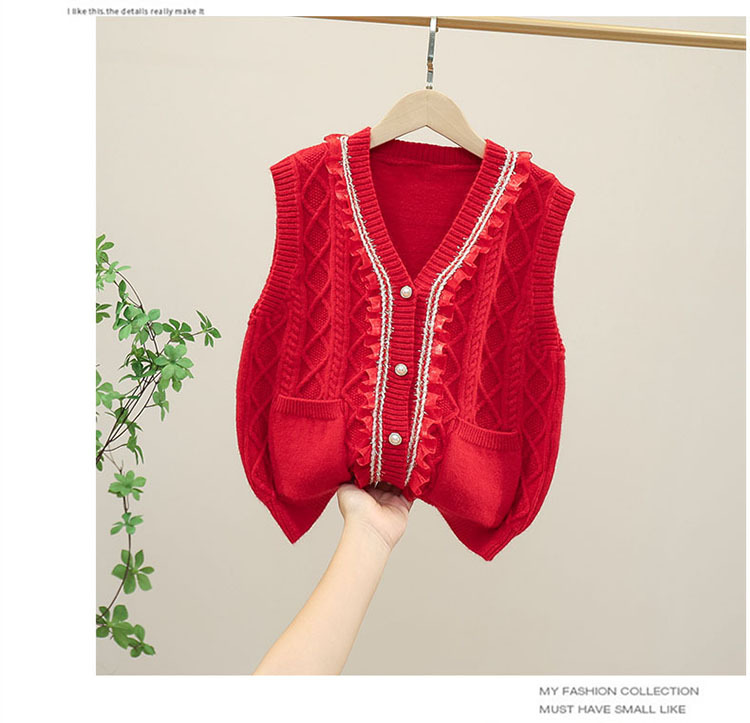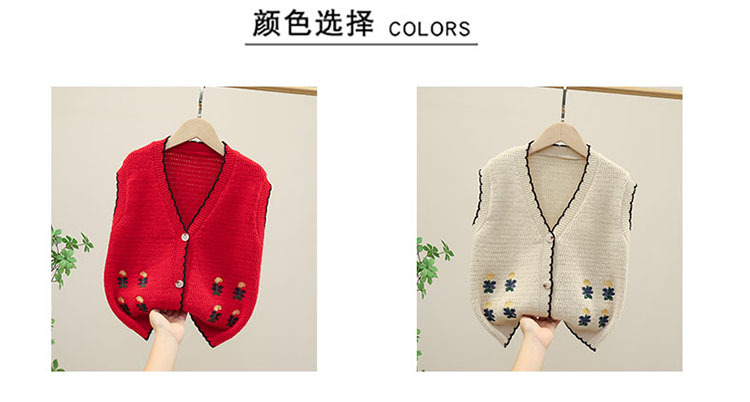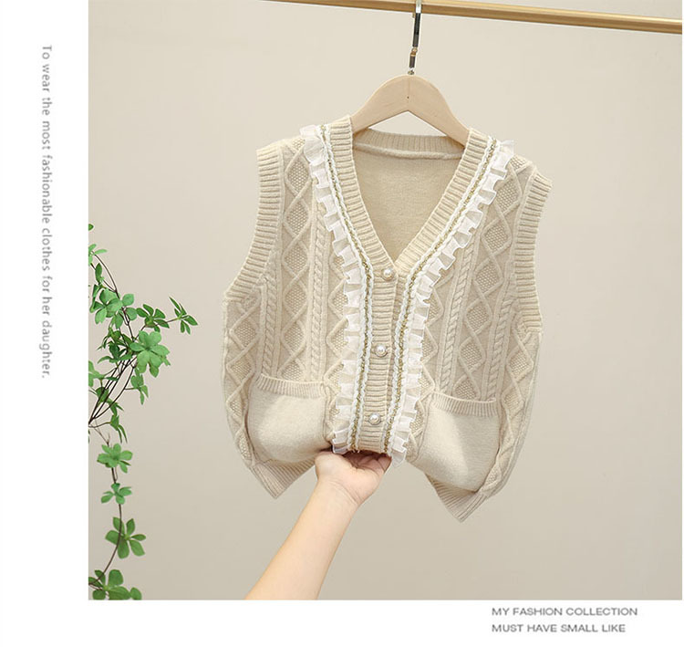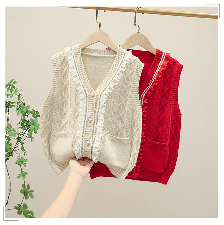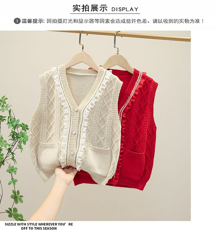 여아 조끼 니트웨어 봄과 가을 2023 새로운 아동복 소녀 세련된 한국 레이스 어린이 스웨터 조끼스토어 가기
