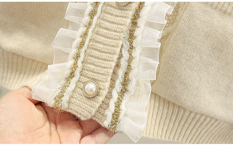 여아 조끼 니트웨어 봄과 가을 2023 새로운 아동복 소녀 세련된 한국 레이스 어린이 스웨터 조끼