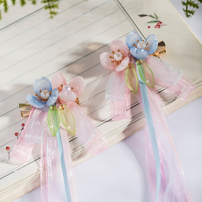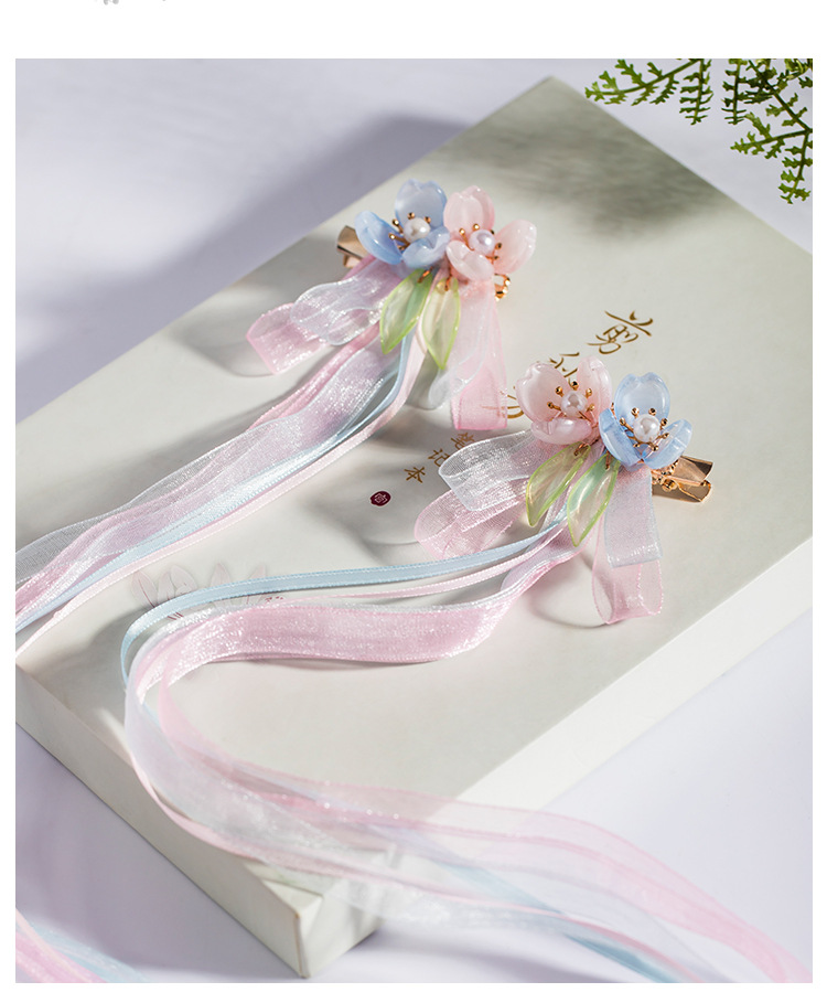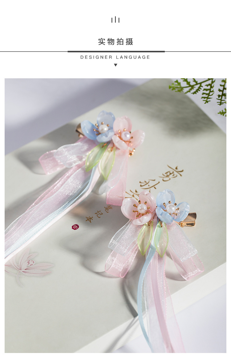 슈퍼 요정 어린이 고대 스타일 헤어 액세서리 Hanfu 머리 장식 클립 리본 액세서리 머리핀 소녀 액세서리 긴 술 Hanfu 요소