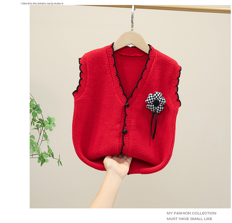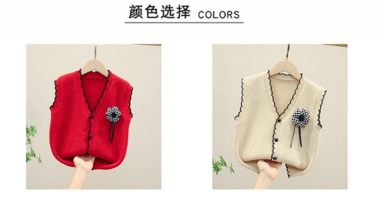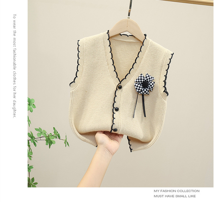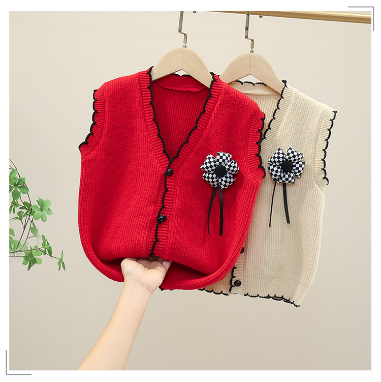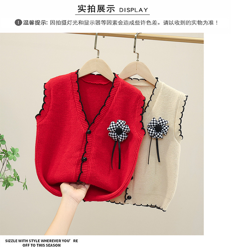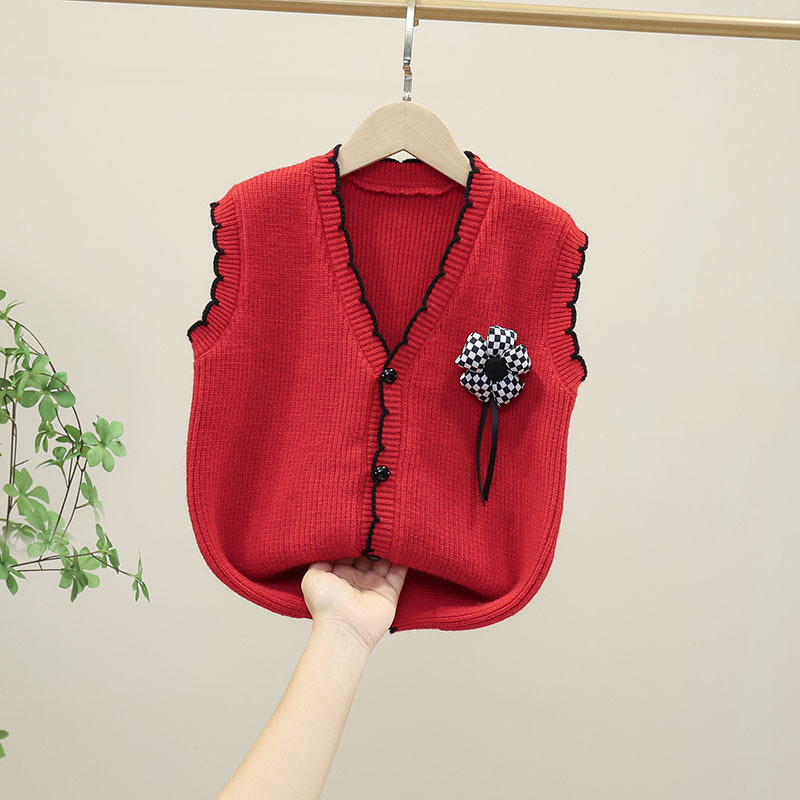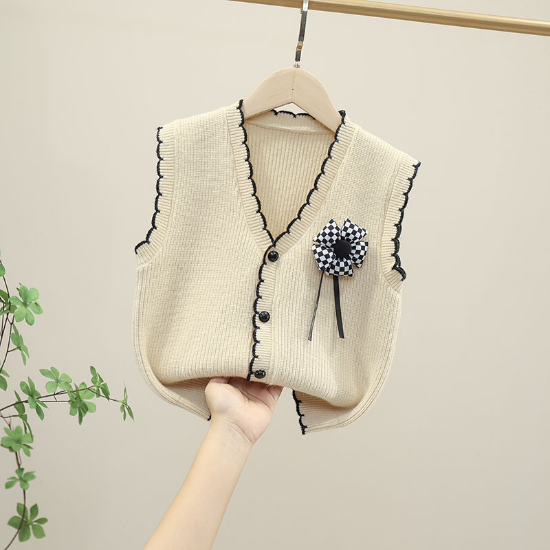 여아 조끼 니트 셔츠 봄과 가을 2023 새로운 아동복 소녀 세련된 한국 스타일 두꺼운 어린이 스웨터 조끼스토어 가기
