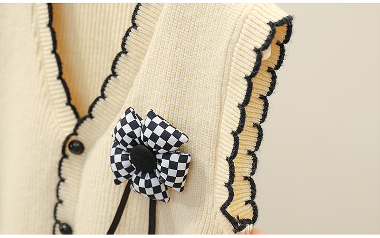 여아 조끼 니트 셔츠 봄과 가을 2023 새로운 아동복 소녀 세련된 한국 스타일 두꺼운 어린이 스웨터 조끼