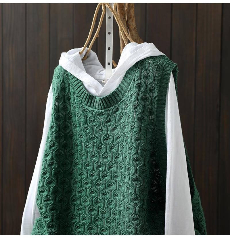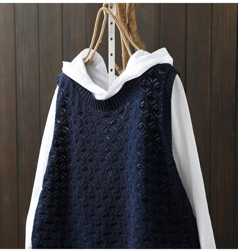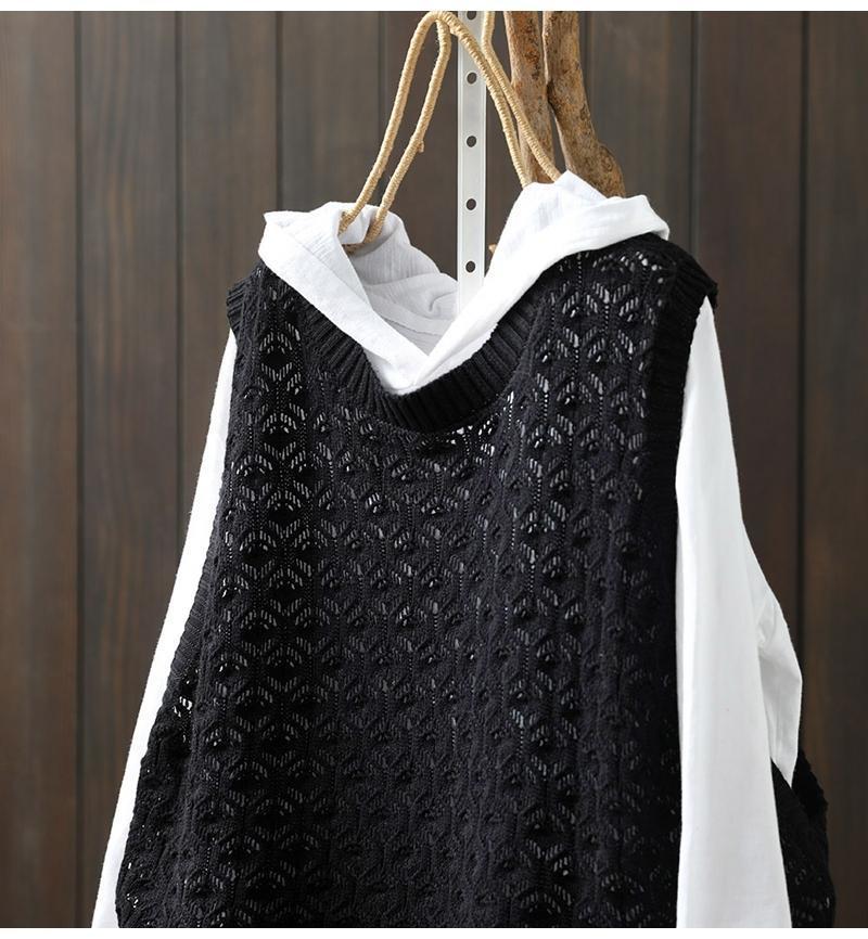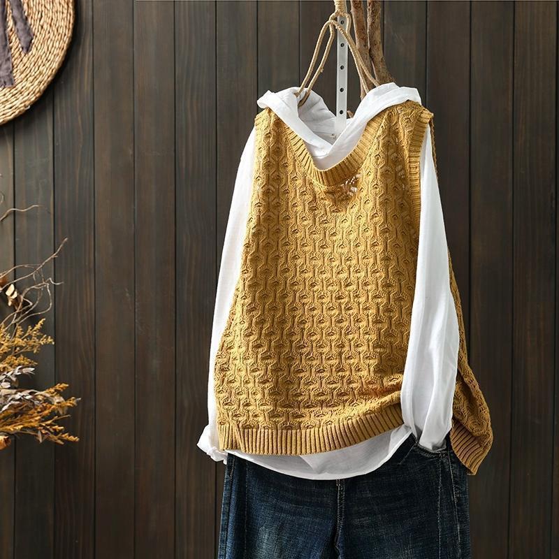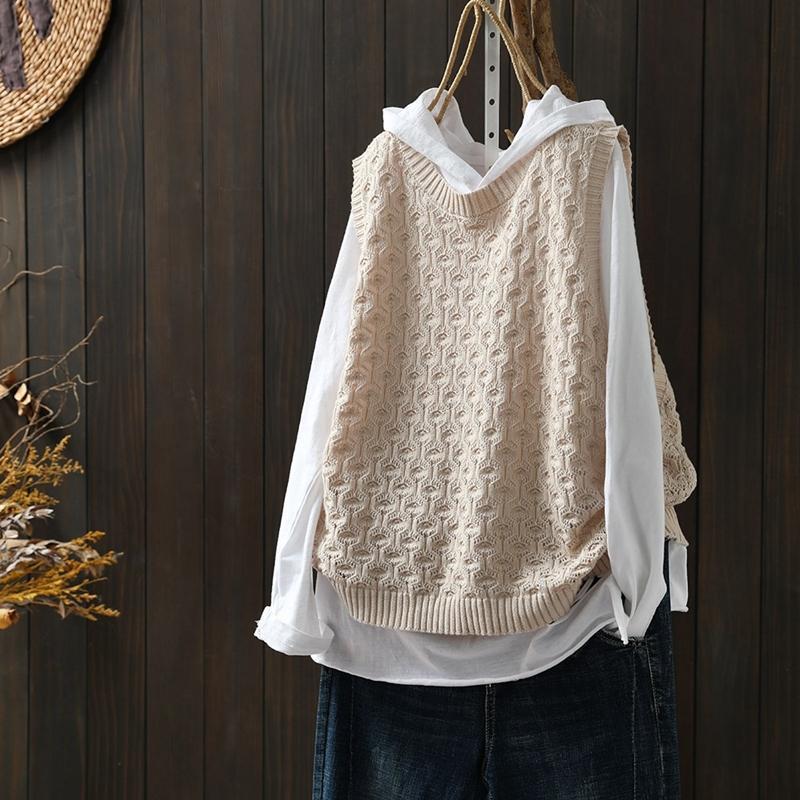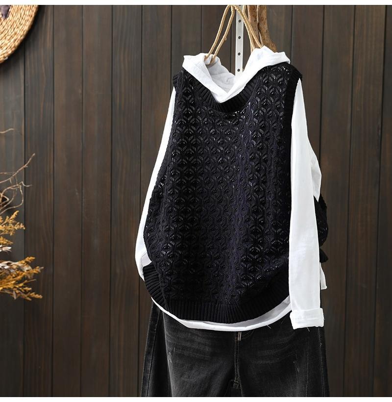 중공 자카드 니트 조끼 여성 풀오버 2023 느슨한 캐주얼 조끼 여성의 가을