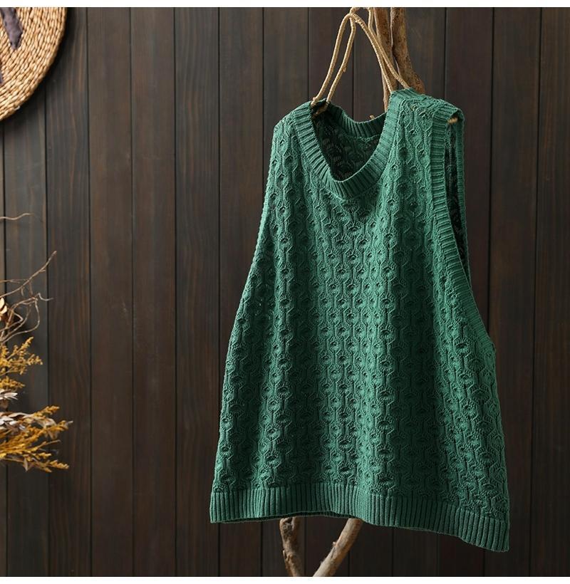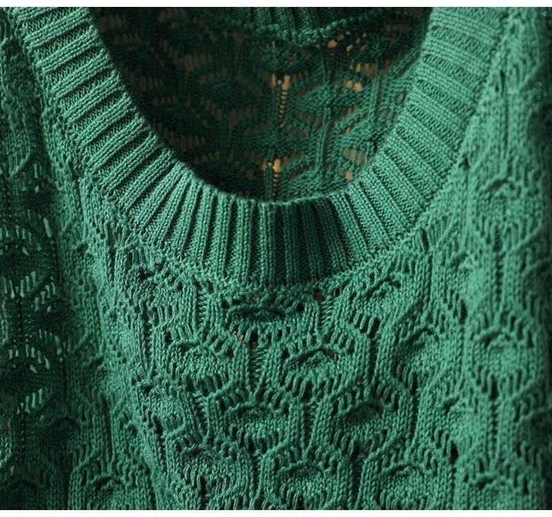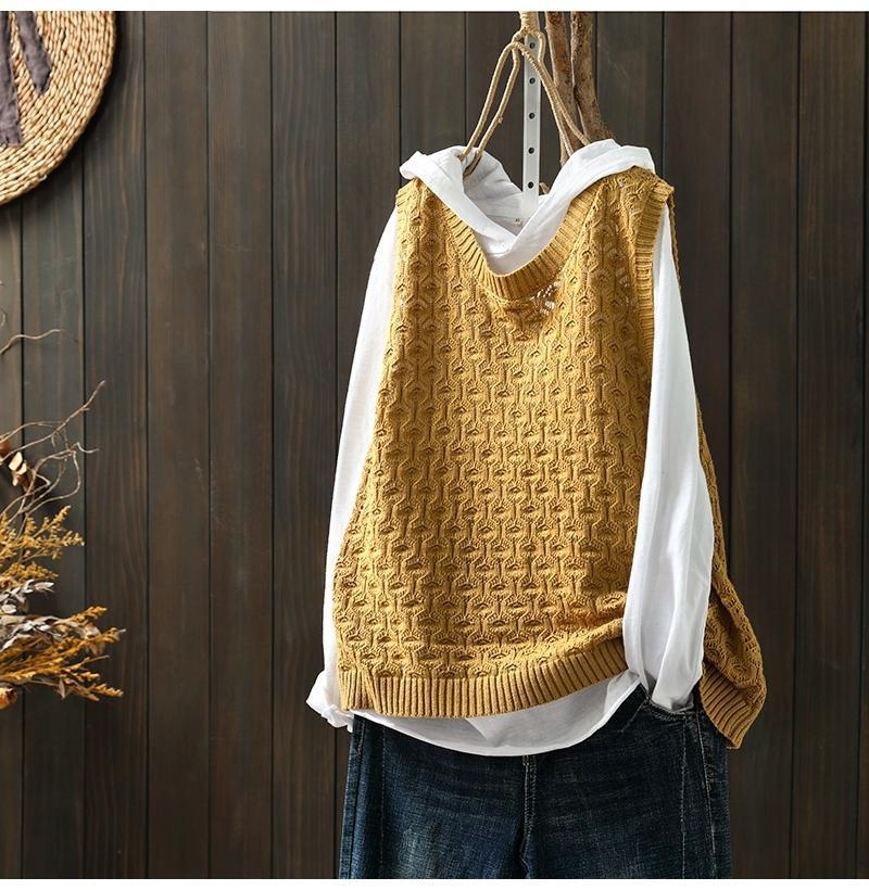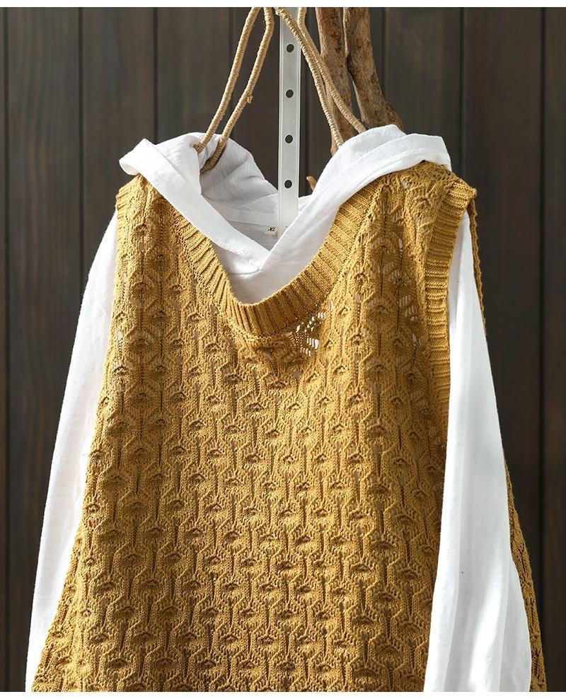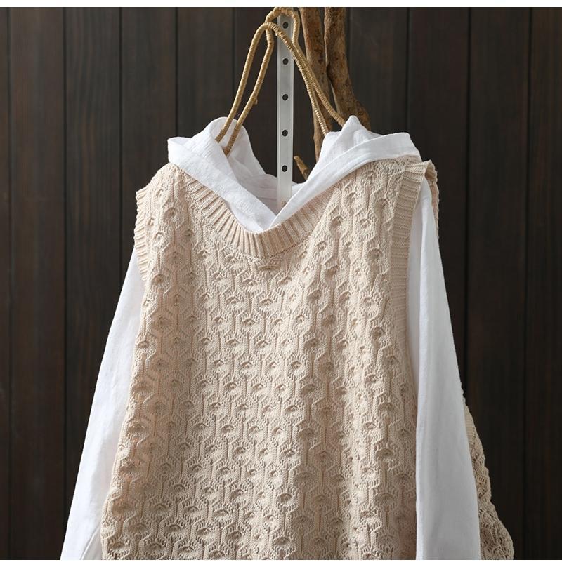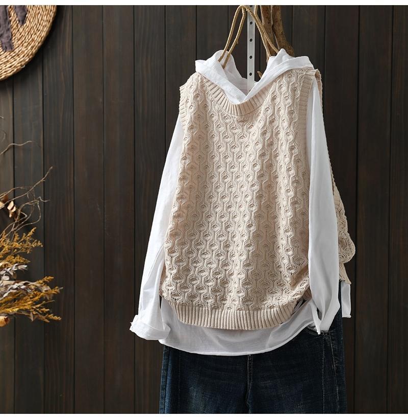 중공 자카드 니트 조끼 여성 풀오버 2023 느슨한 캐주얼 조끼 여성의 가을