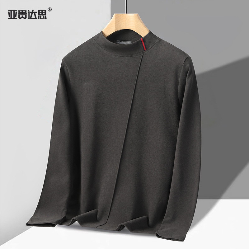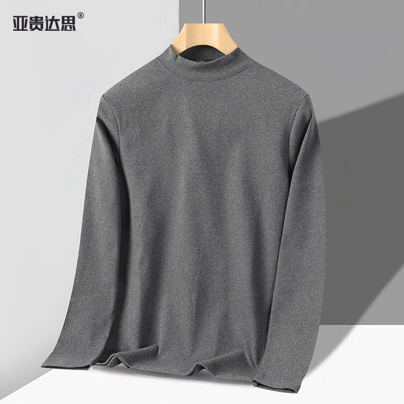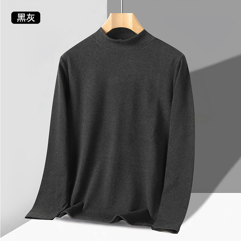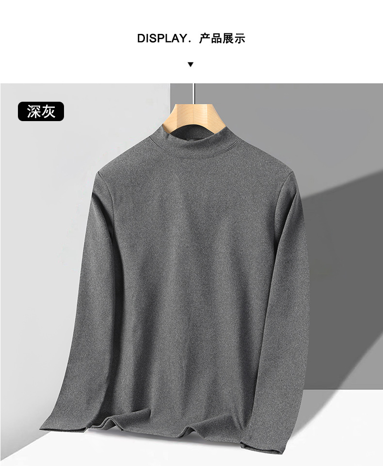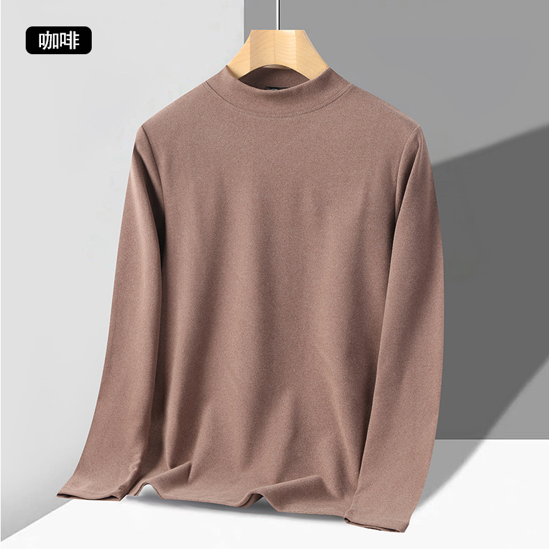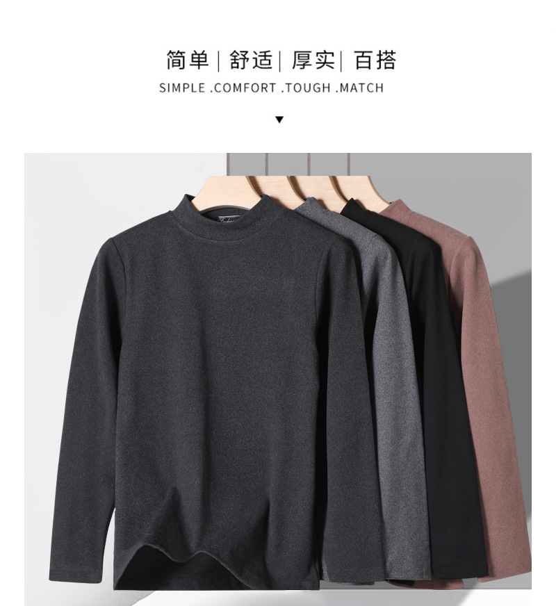 독일 벨벳 세미 하이 칼라 보텀 셔츠 남성 가을과 겨울 벨벳 따뜻한 단색 긴 소매 티셔츠 중년 및 노인 아버지를위한 중간 칼라스토어 가기