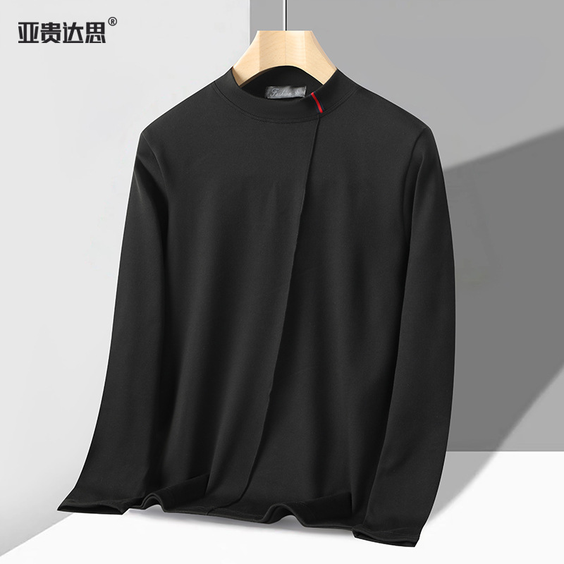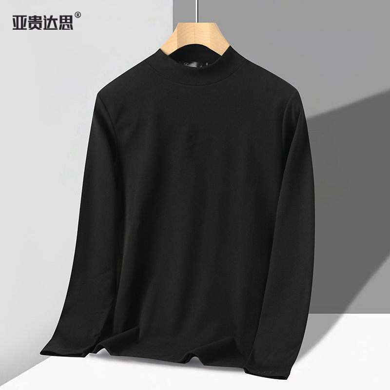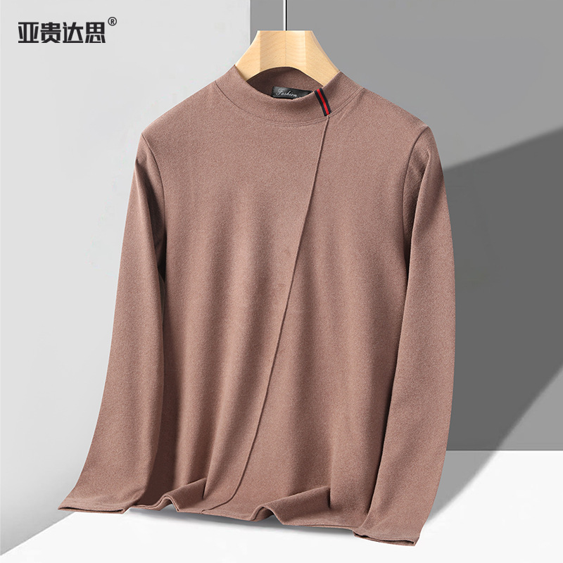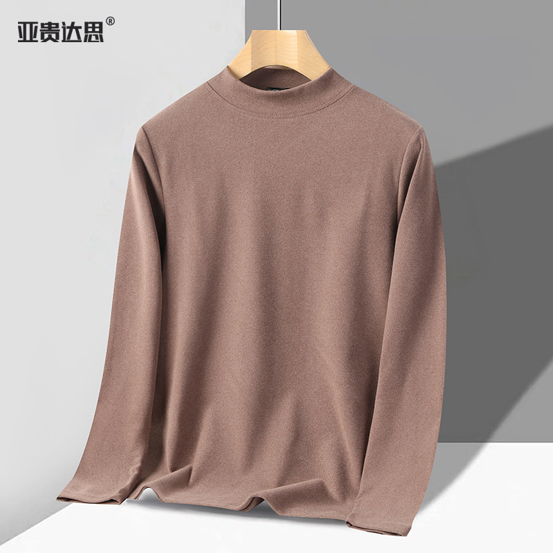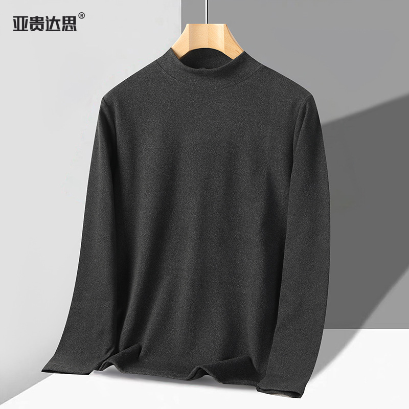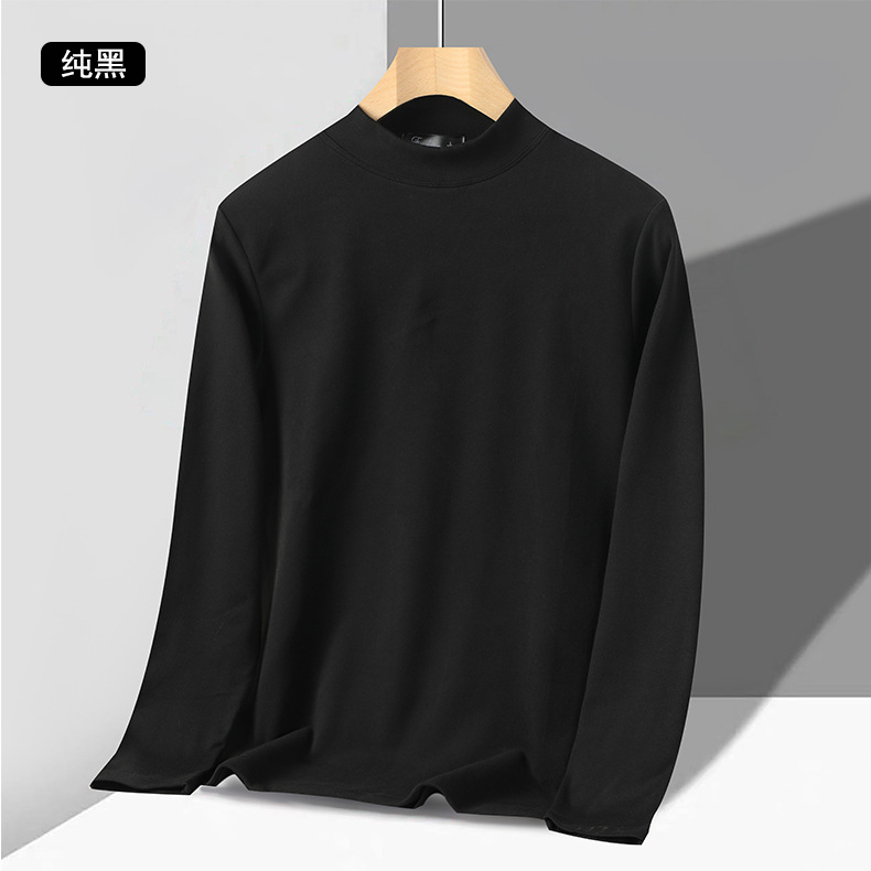독일 벨벳 세미 하이 칼라 보텀 셔츠 남성 가을과 겨울 벨벳 따뜻한 단색 긴 소매 티셔츠 중년 및 노인 아버지를위한 중간 칼라스토어 가기