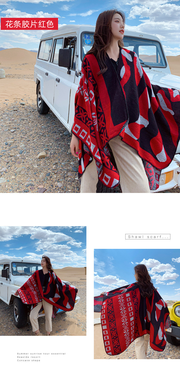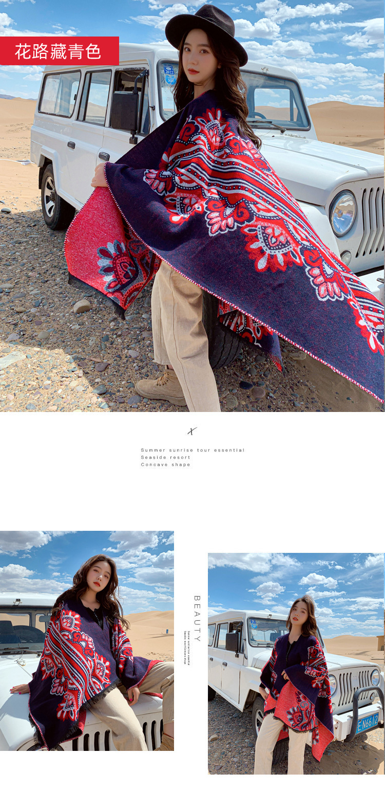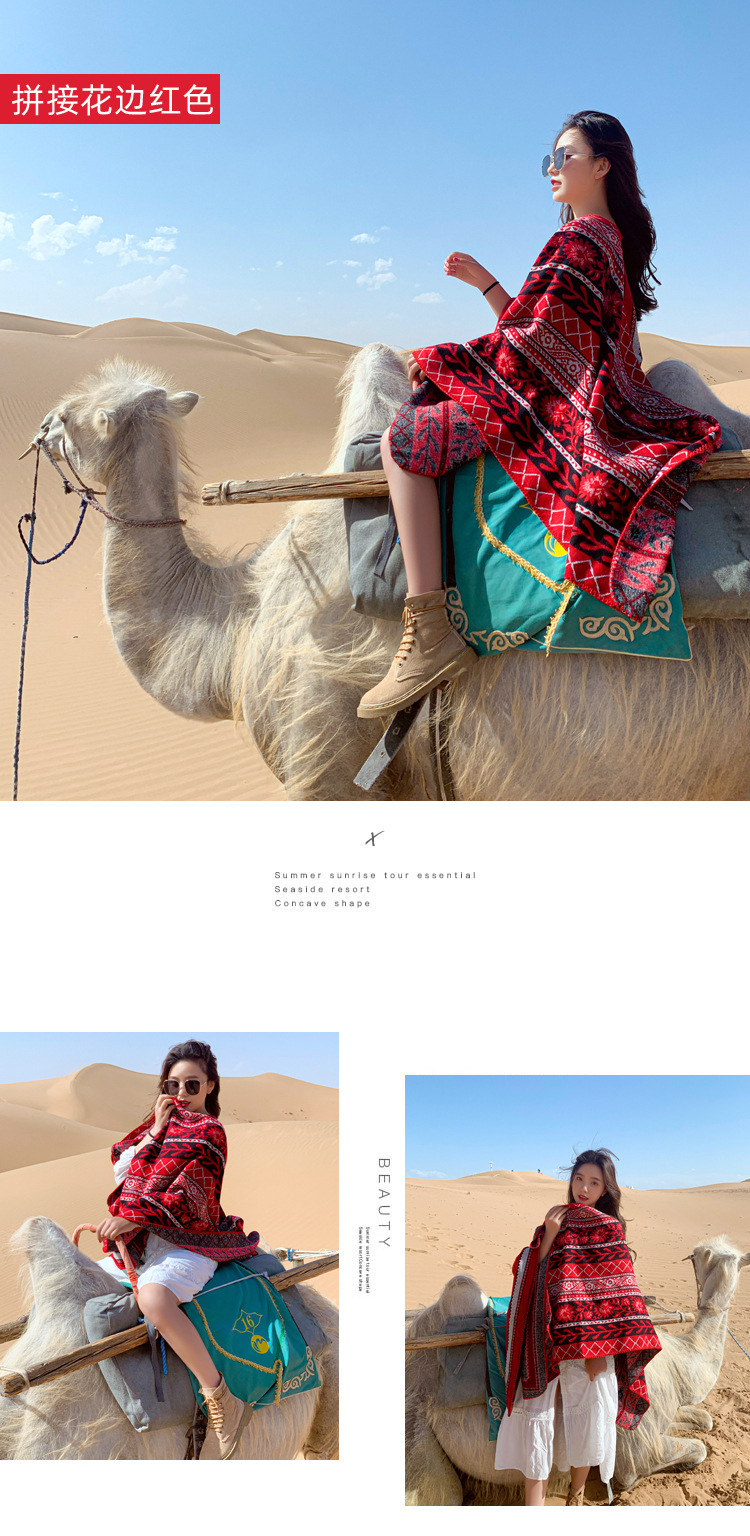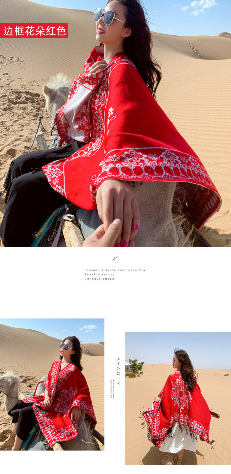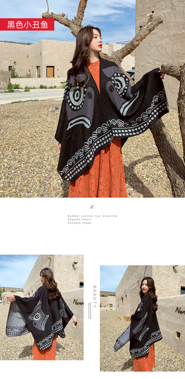 레저 여행 사진 올매치 대형 숄 야외 휴가 핀 인 개성 인쇄 에스닉 스타일 따뜻한 아우터 케이프