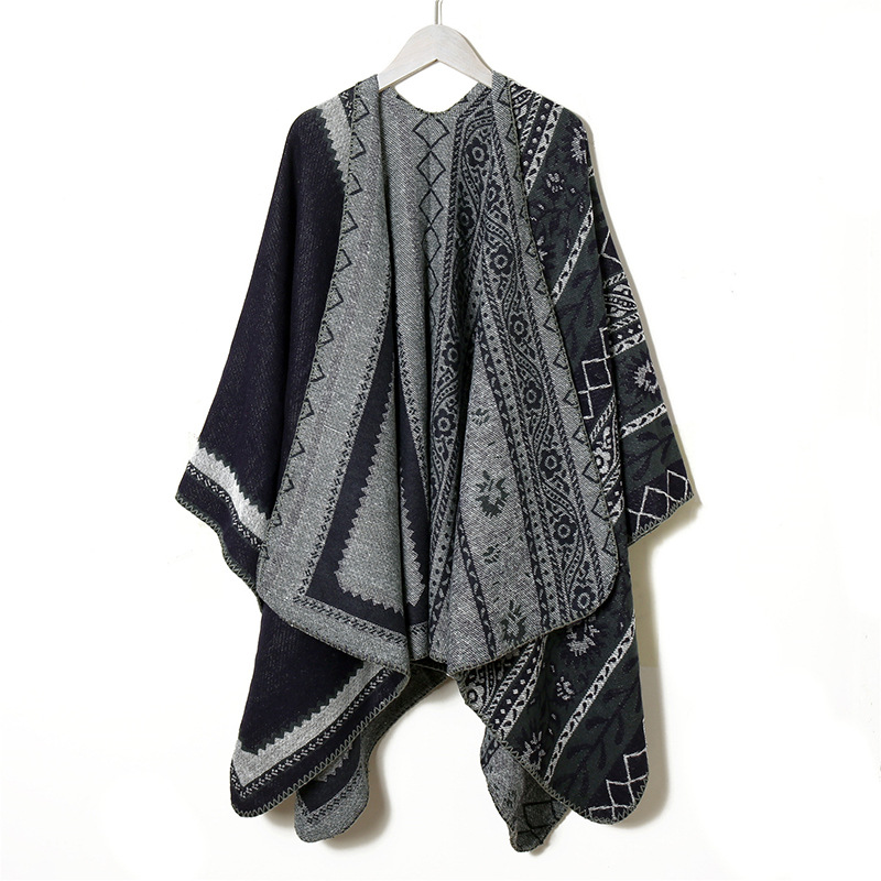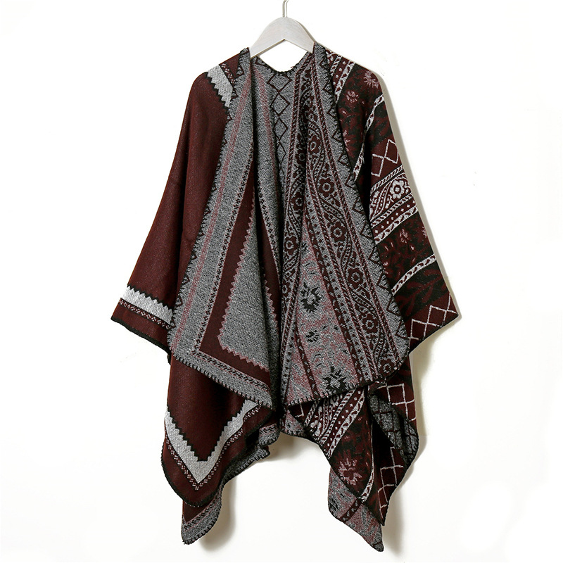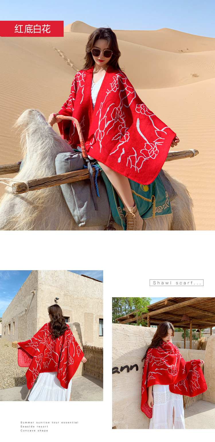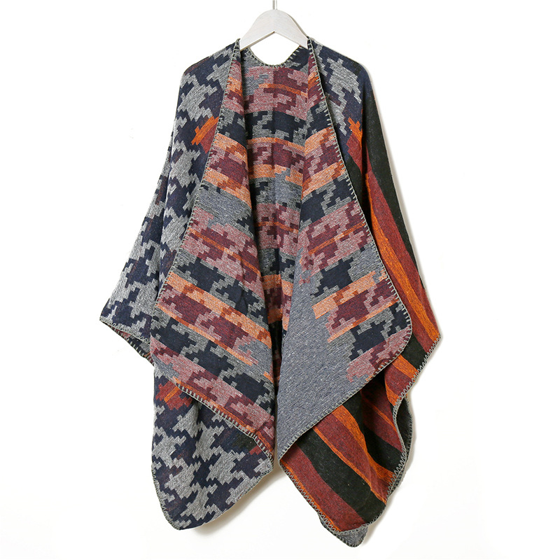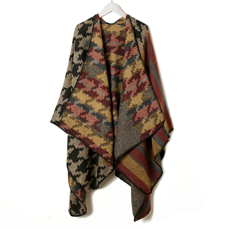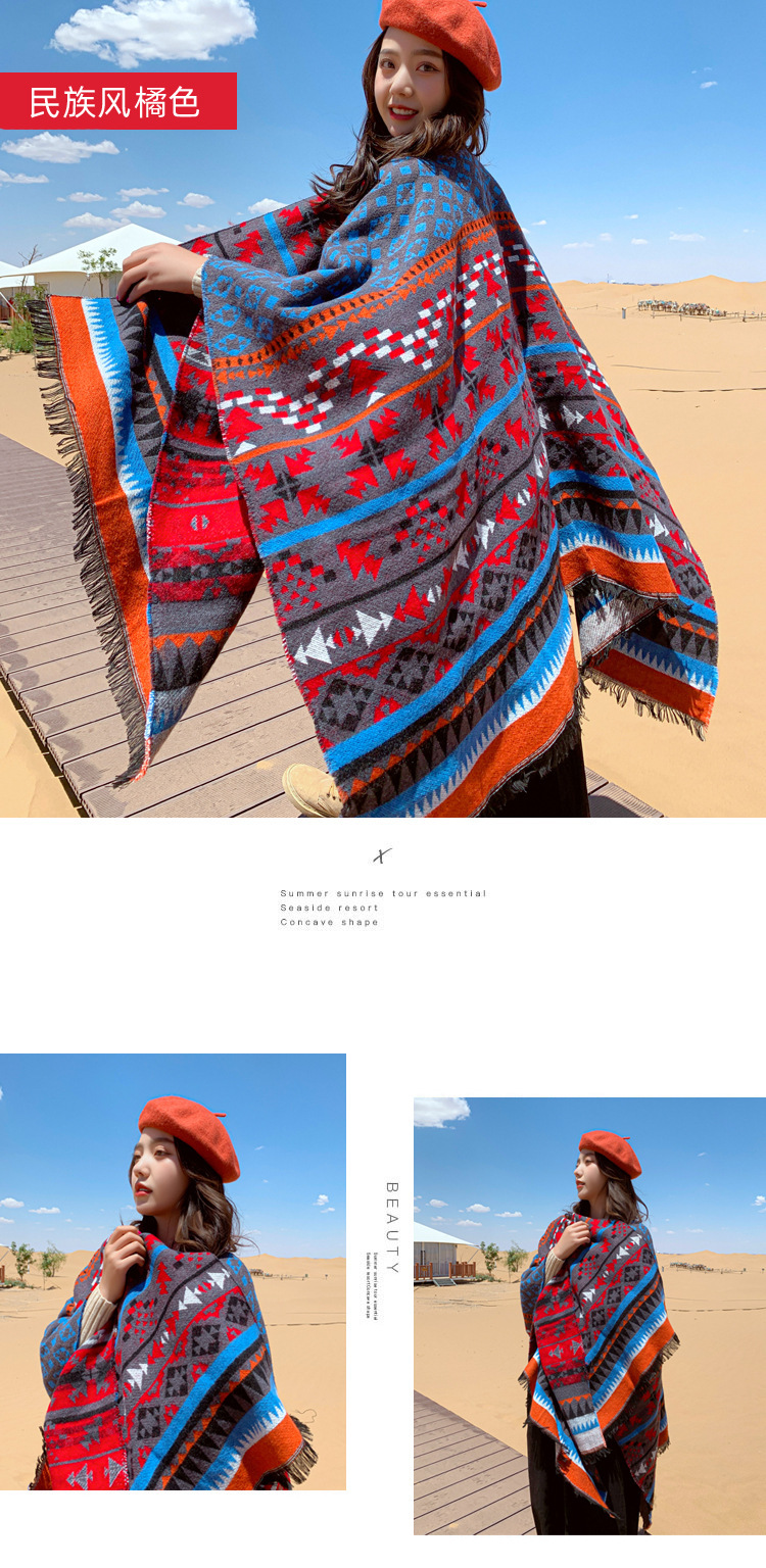 레저 여행 사진 올매치 대형 숄 야외 휴가 핀 인 개성 인쇄 에스닉 스타일 따뜻한 아우터 케이프