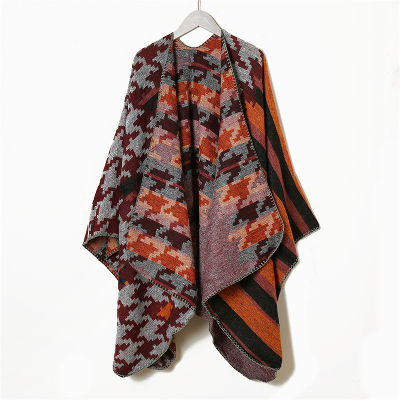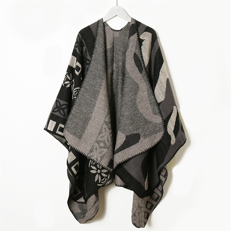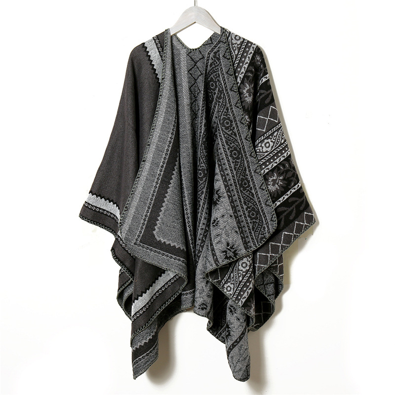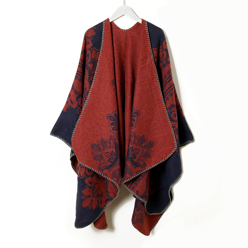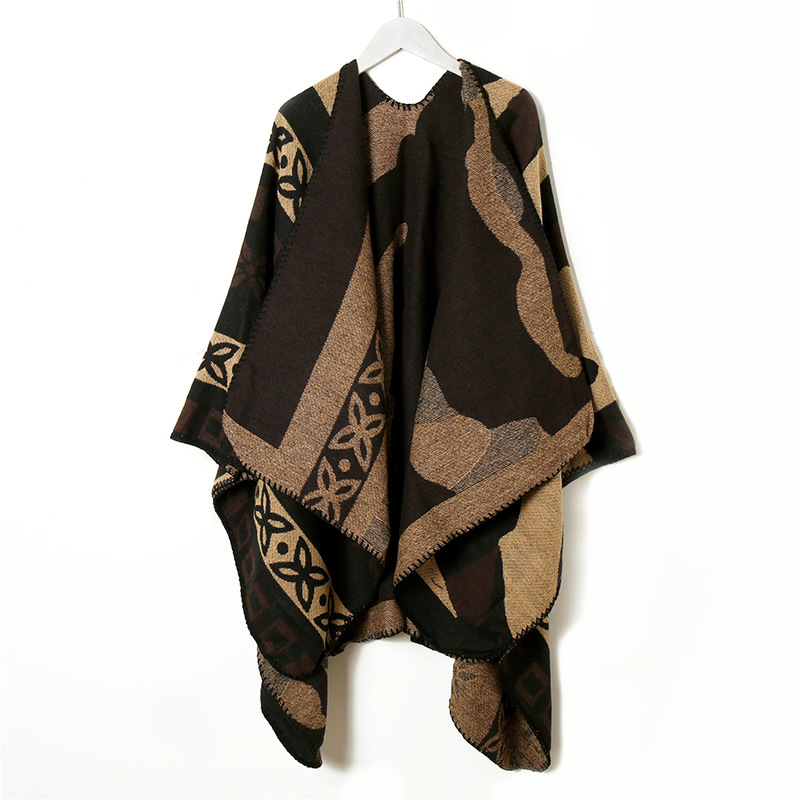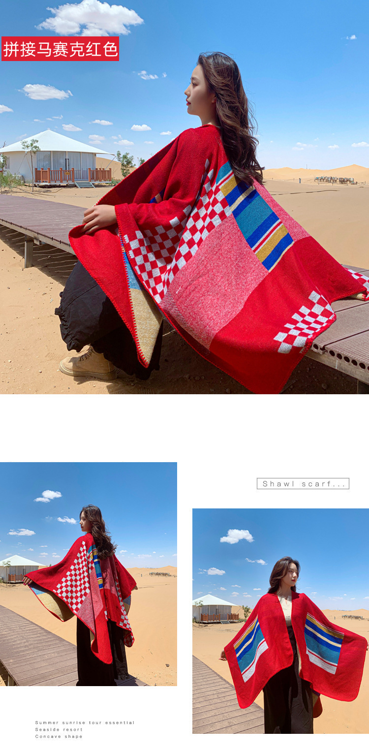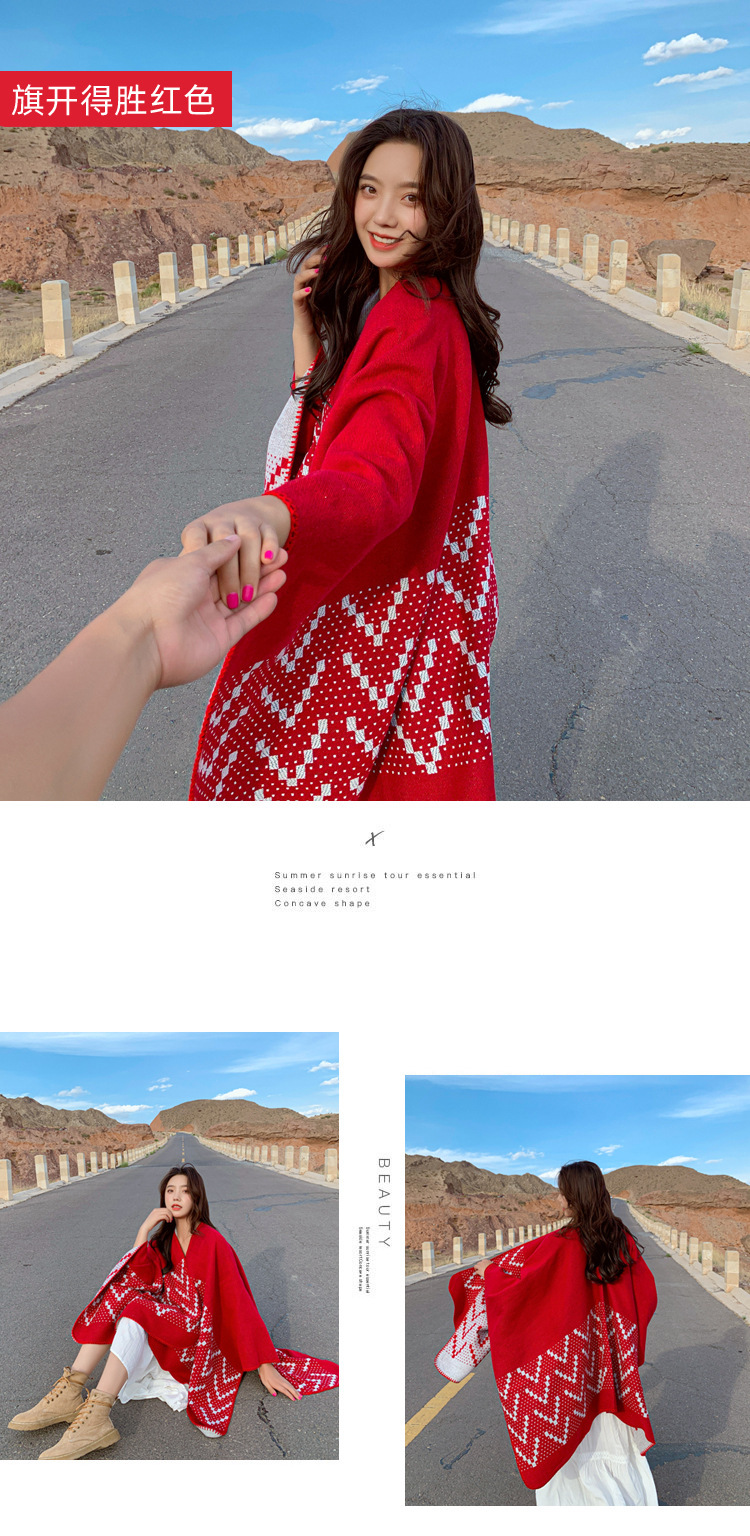 레저 여행 사진 올매치 대형 숄 야외 휴가 핀 인 개성 인쇄 에스닉 스타일 따뜻한 아우터 케이프