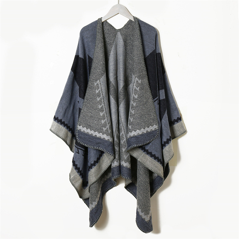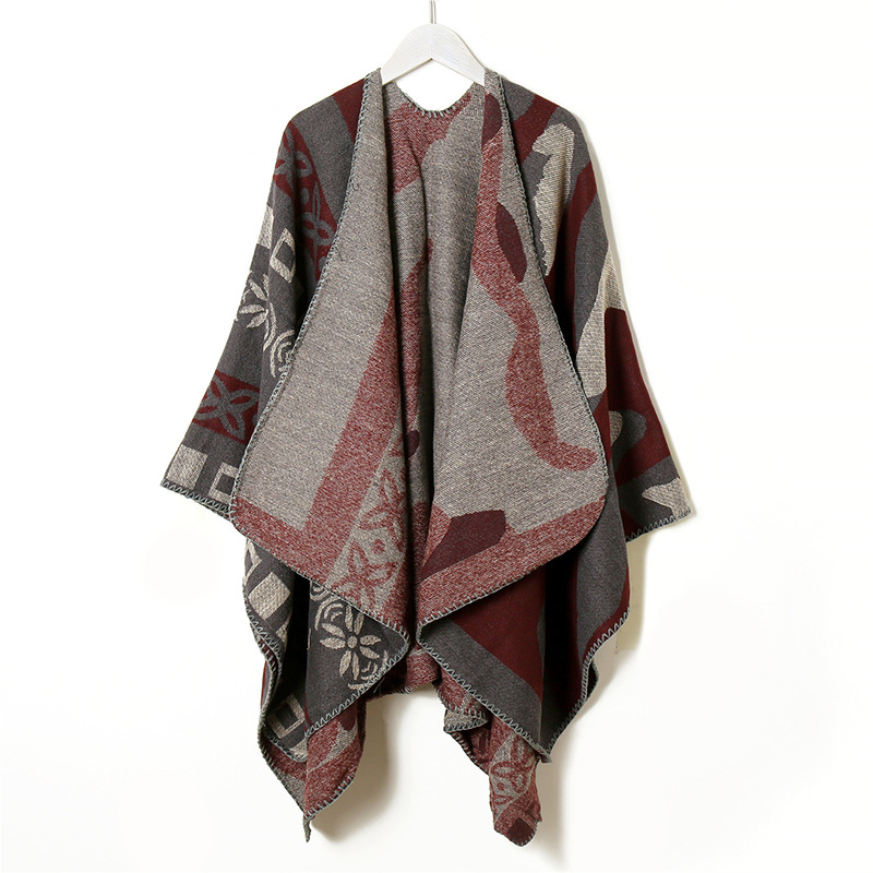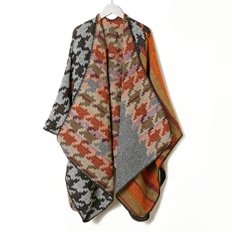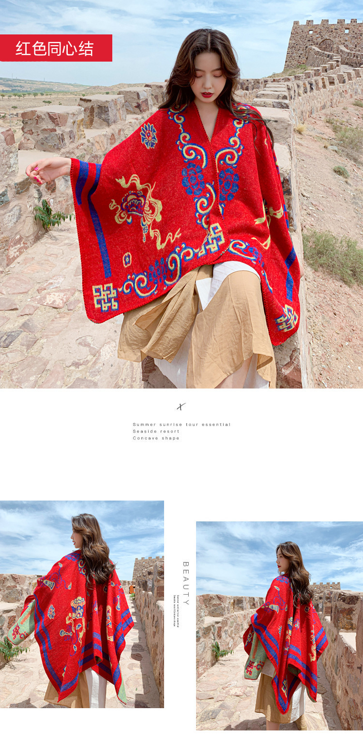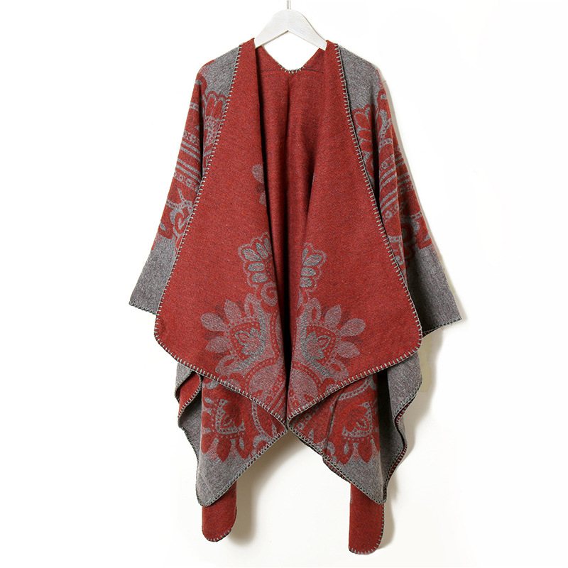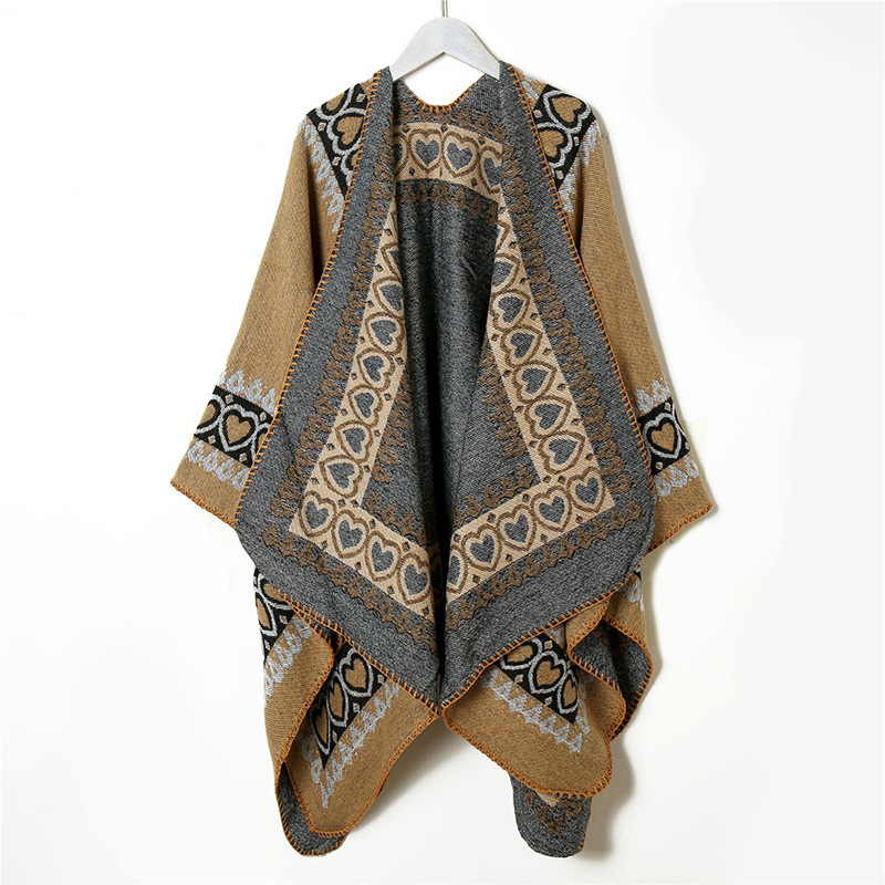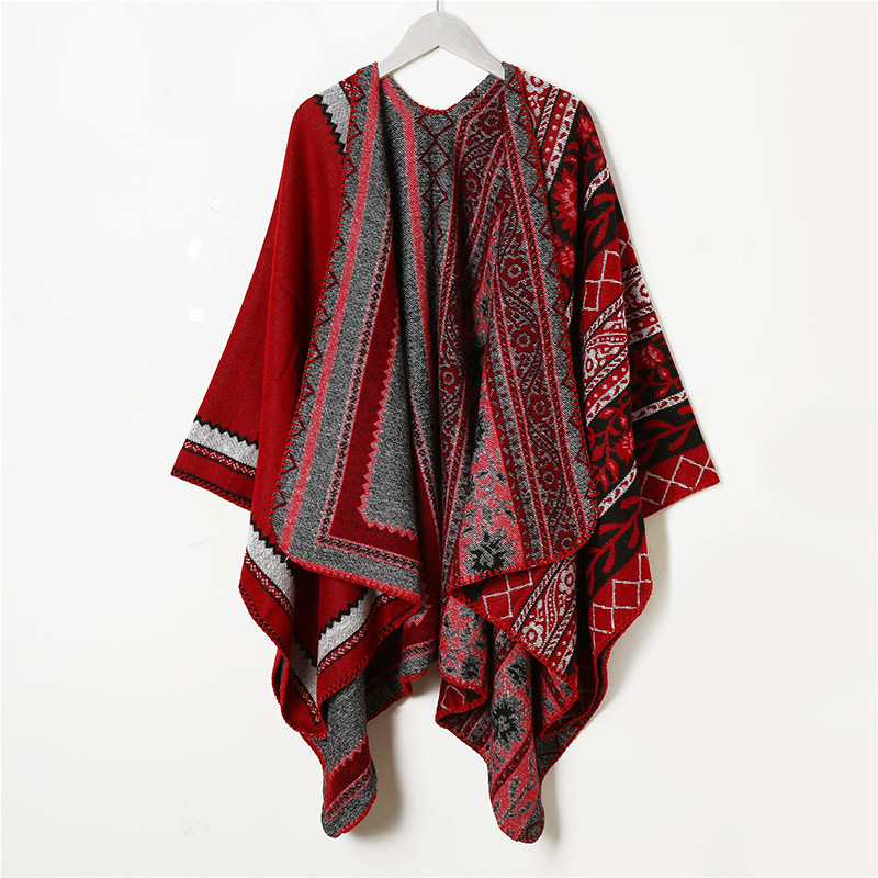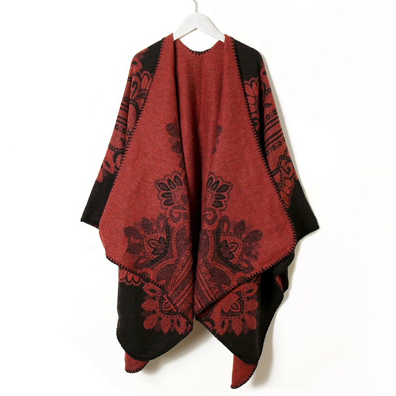 레저 여행 사진 올매치 대형 숄 야외 휴가 핀 인 개성 인쇄 에스닉 스타일 따뜻한 아우터 케이프
