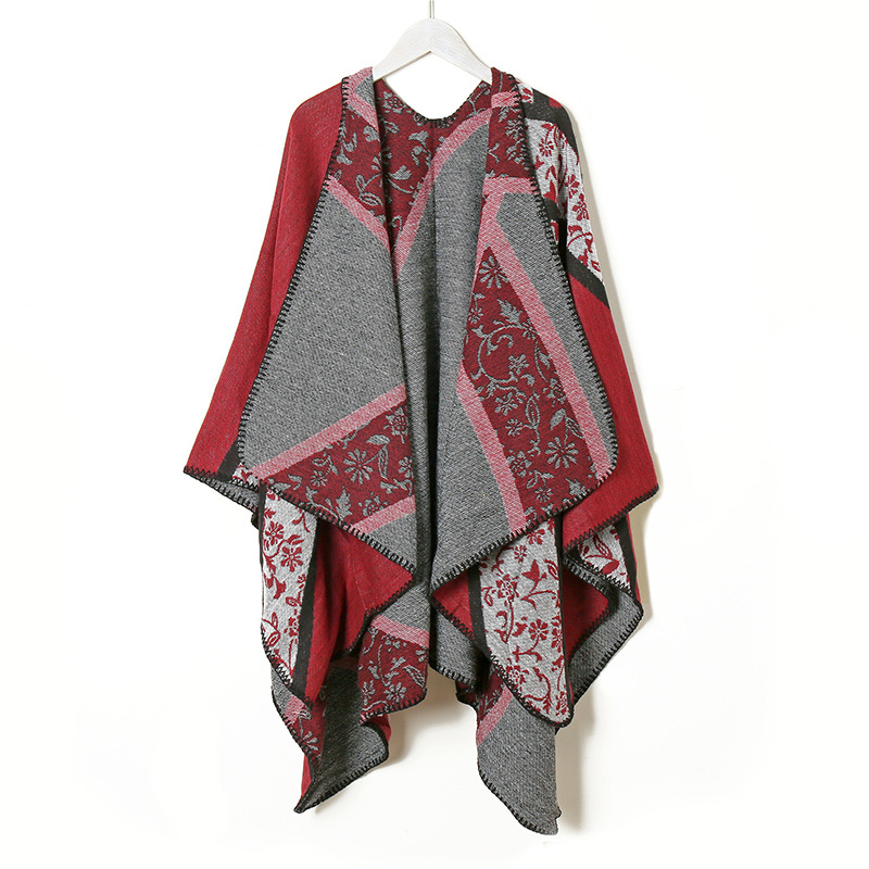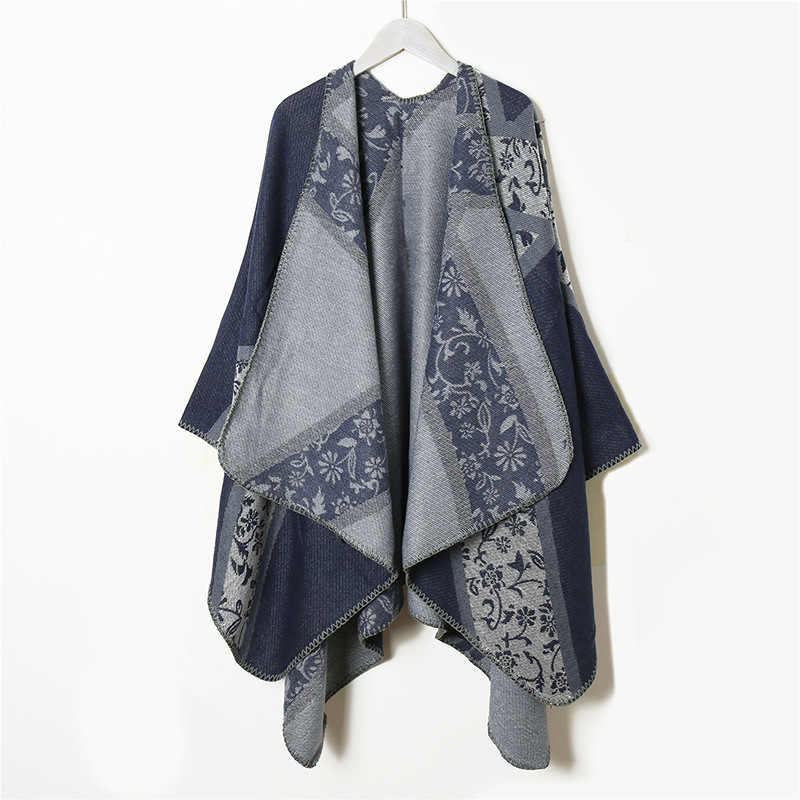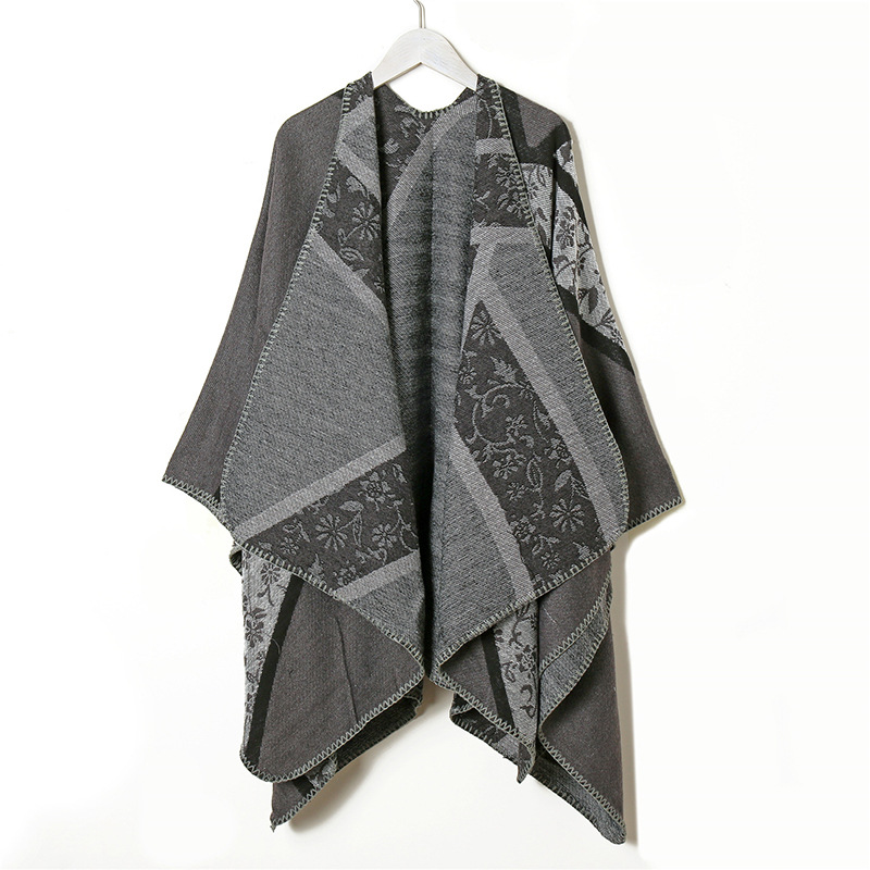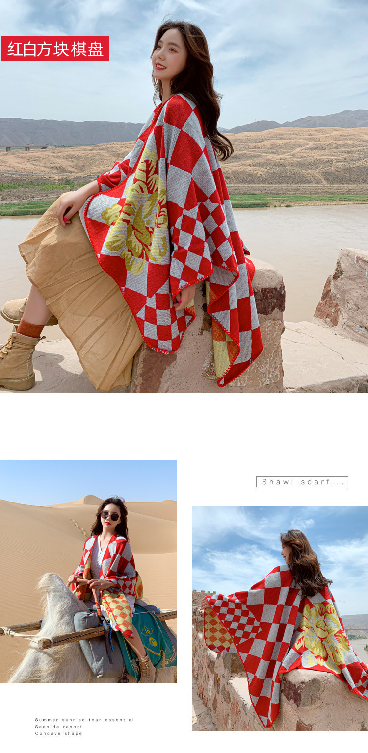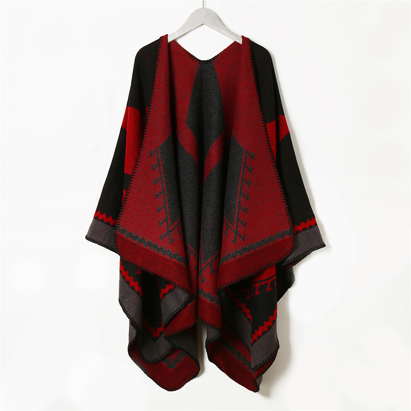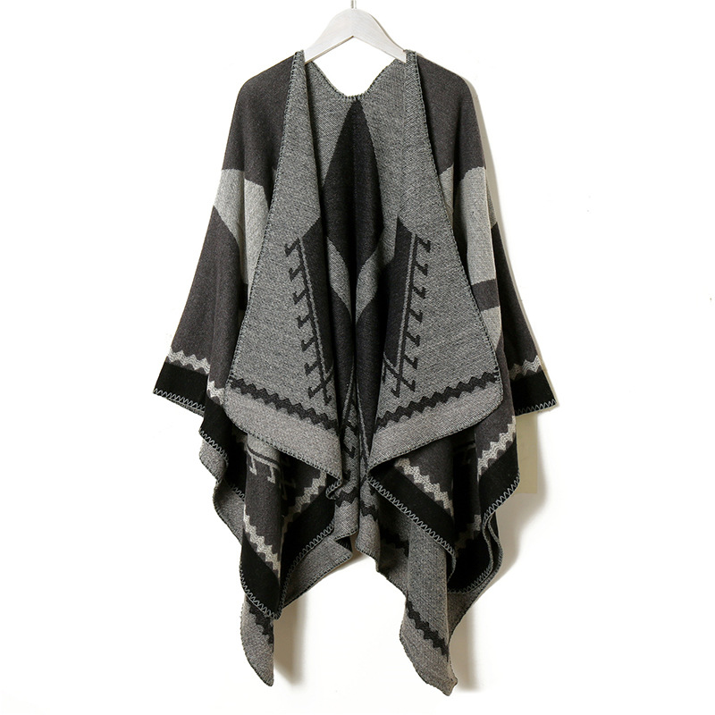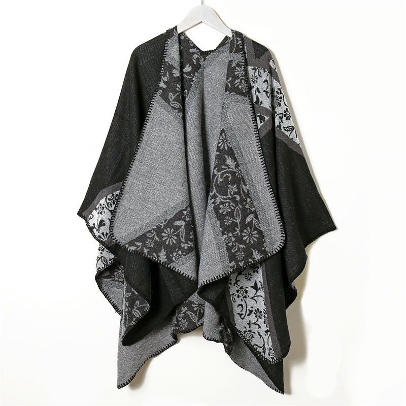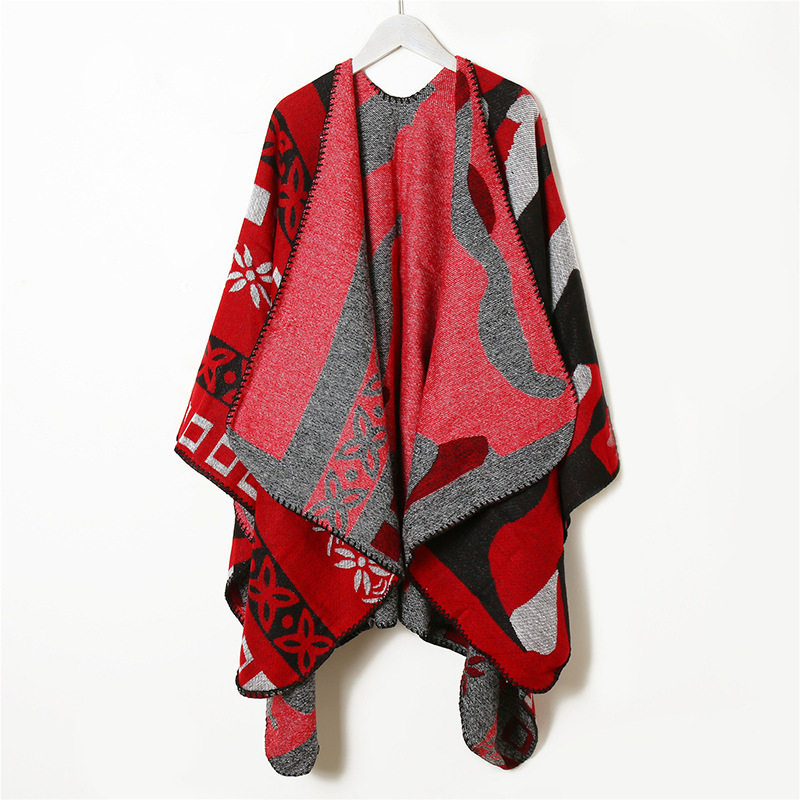레저 여행 사진 올매치 대형 숄 야외 휴가 핀 인 개성 인쇄 에스닉 스타일 따뜻한 아우터 케이프