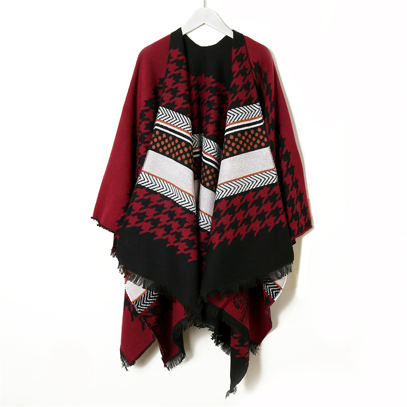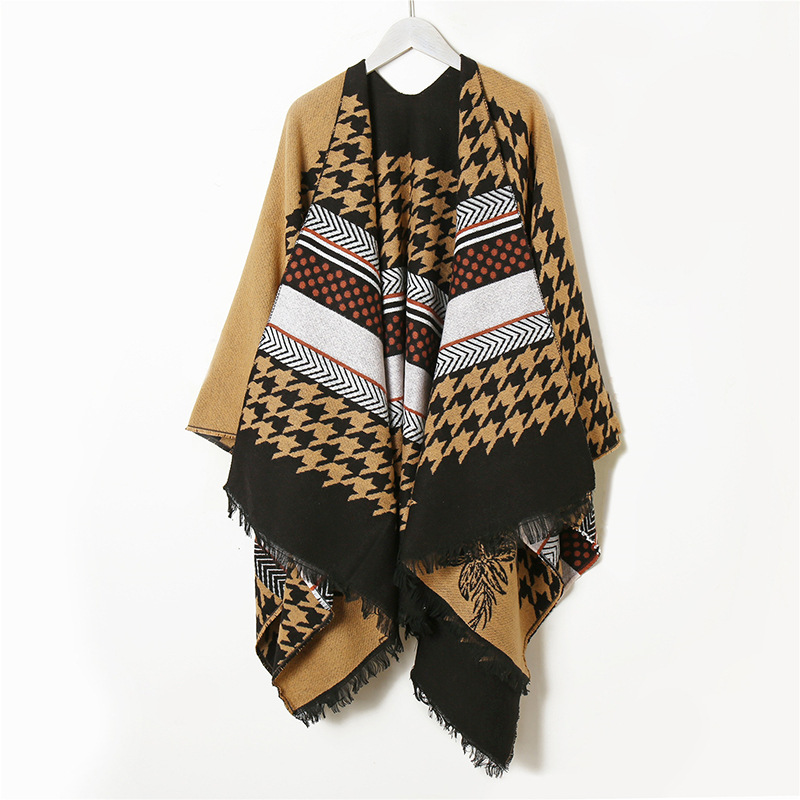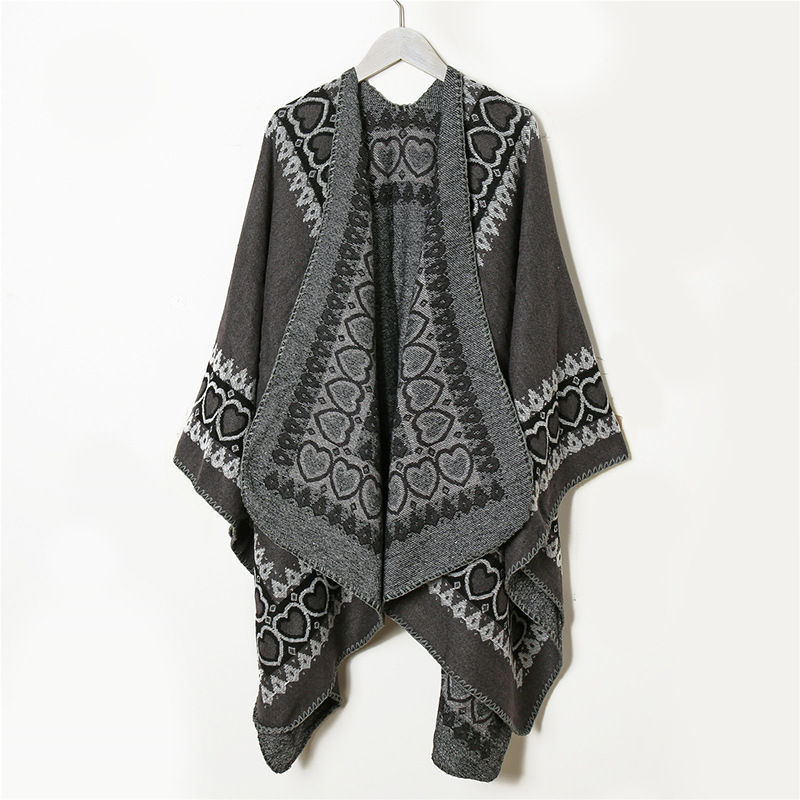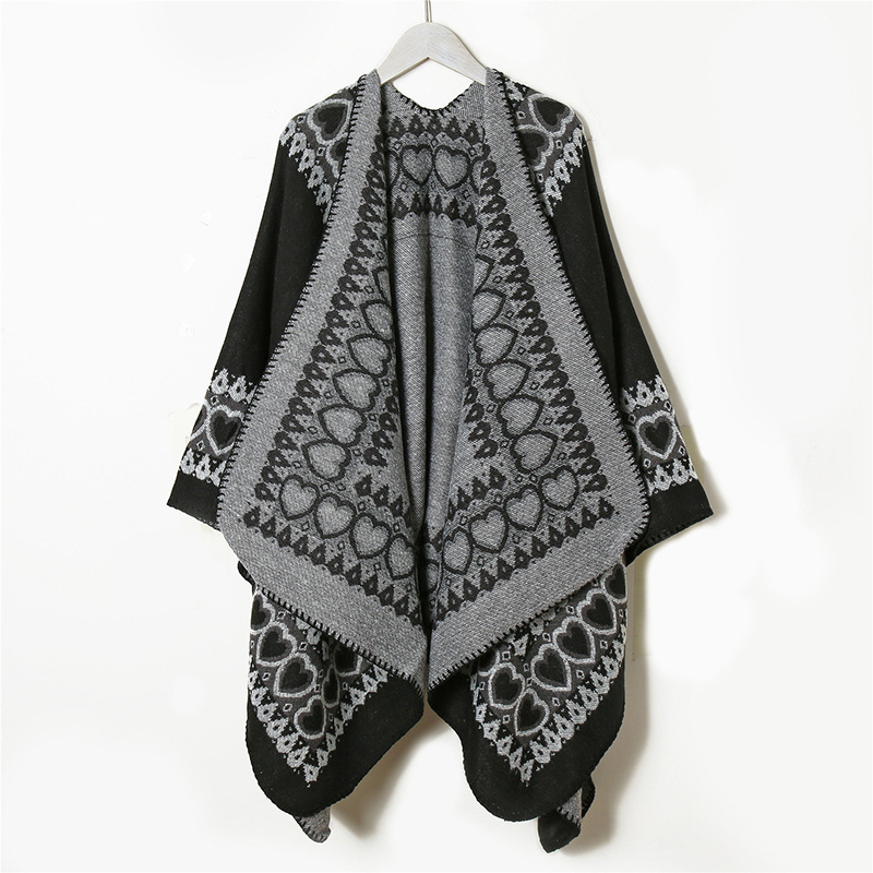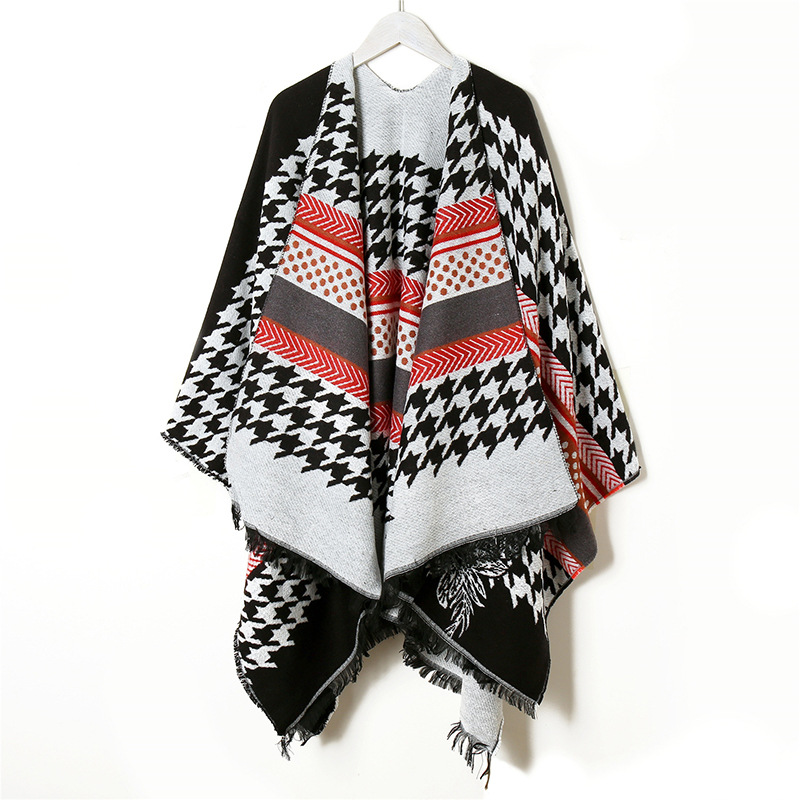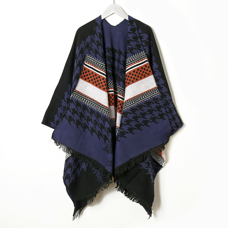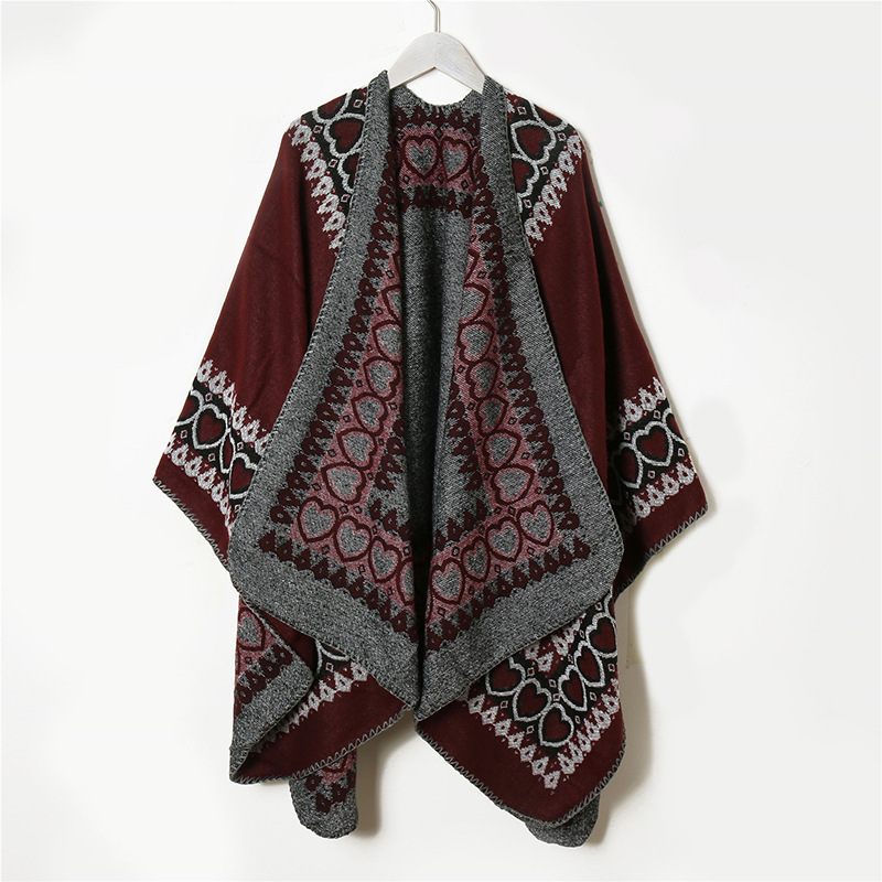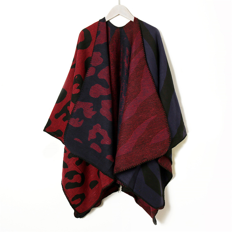 레저 여행 사진 올매치 대형 숄 야외 휴가 핀 인 개성 인쇄 에스닉 스타일 따뜻한 아우터 케이프