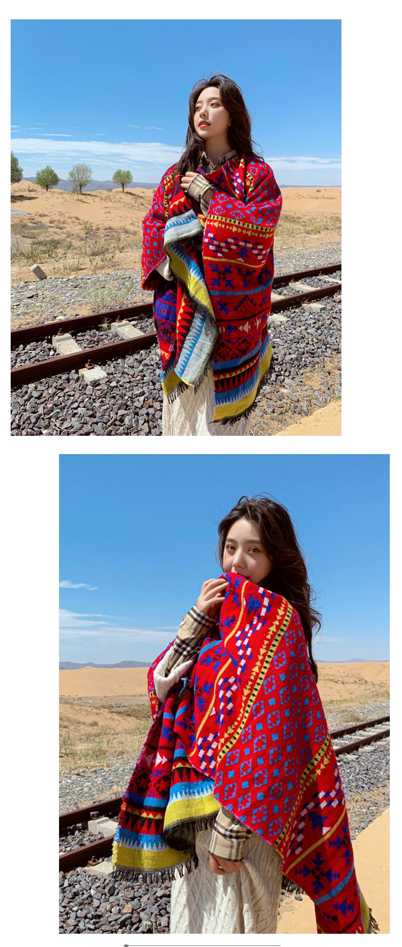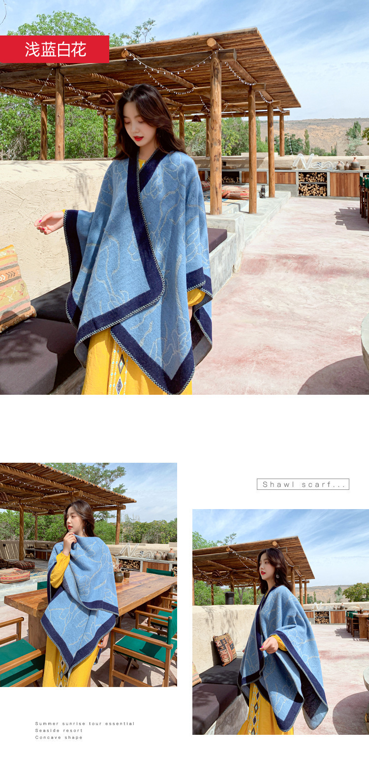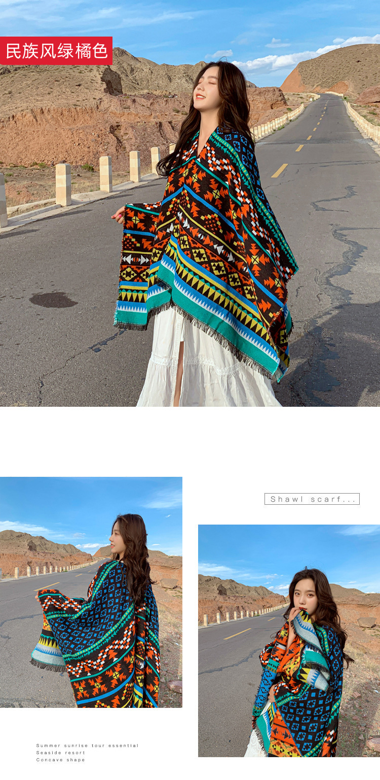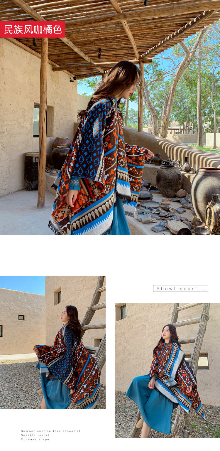 레저 여행 사진 올매치 대형 숄 야외 휴가 핀 인 개성 인쇄 에스닉 스타일 따뜻한 아우터 케이프스토어 가기