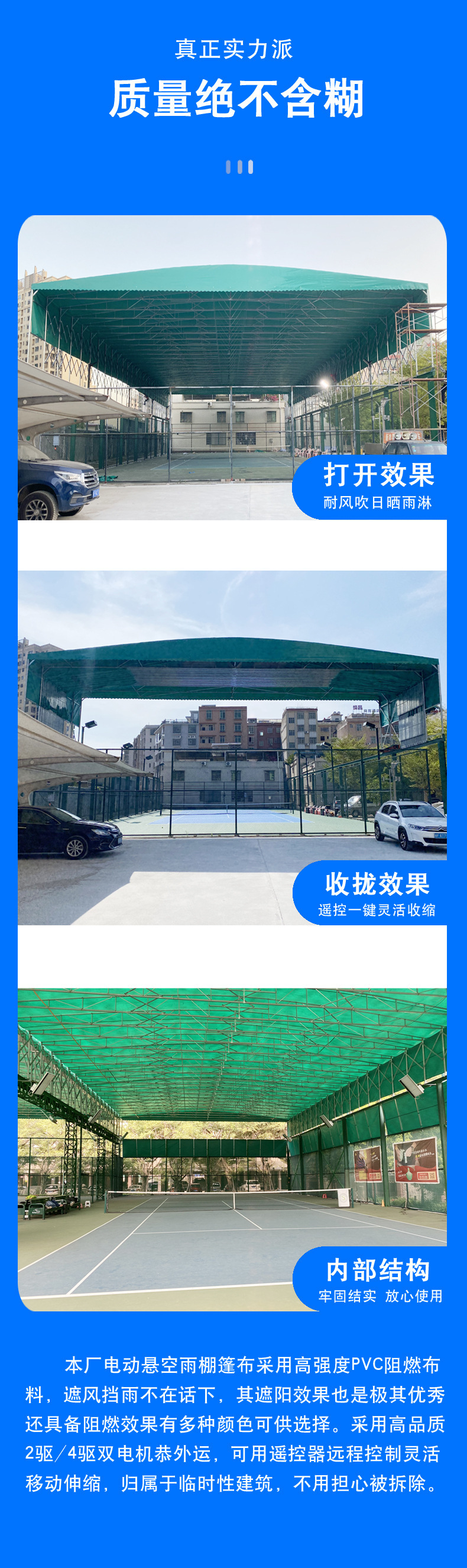 활동을위한 대형 전기 차양 캐노피 야외 경기장 수축 이동식 차양 공장 건물 통로 창고 푸시 풀 텔레스코픽 천막