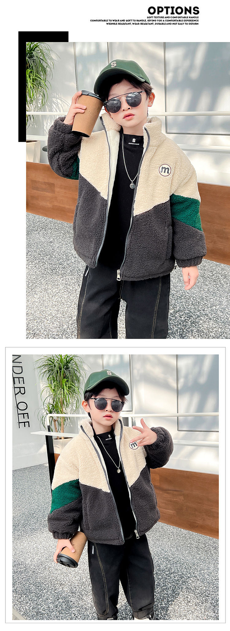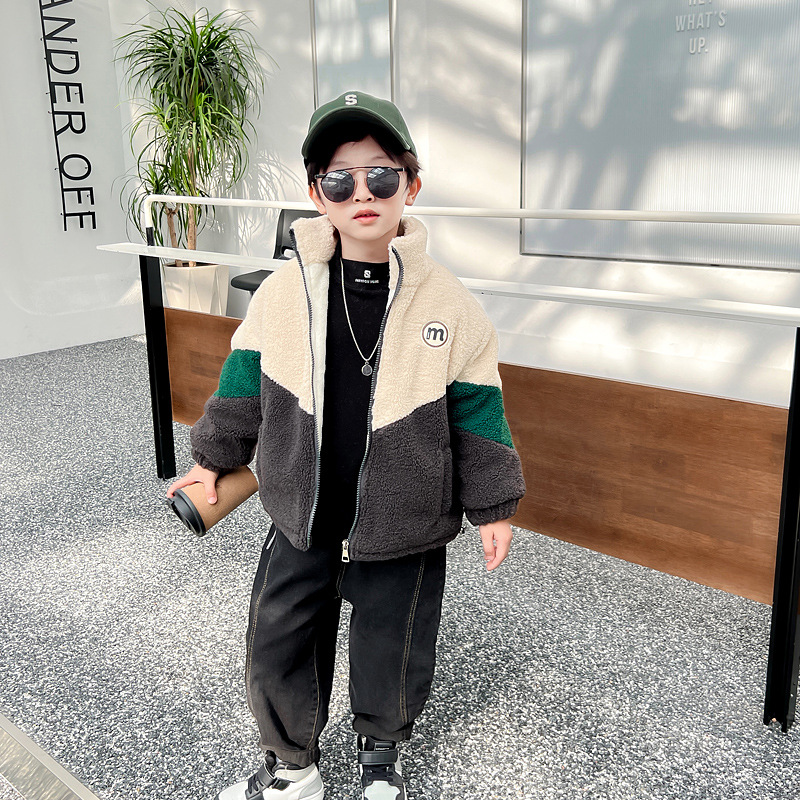 아동복 어린이 겨울웨어 양털 자켓 소년의 모직 스웨터 면 두꺼운 아기의 최고 유행 서양 스타일 대비 색상 유행스토어 가기