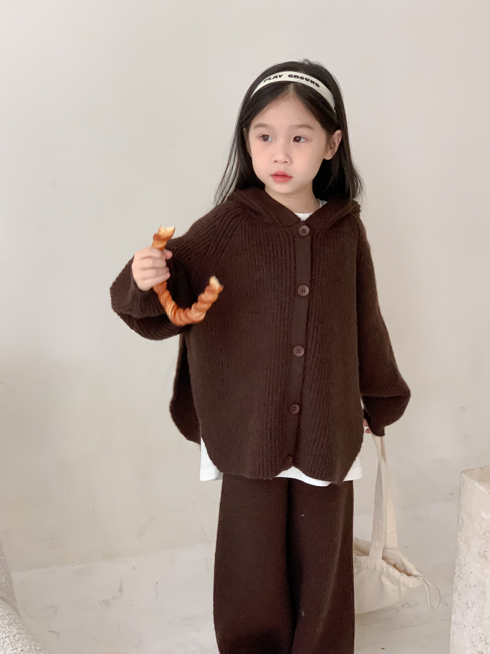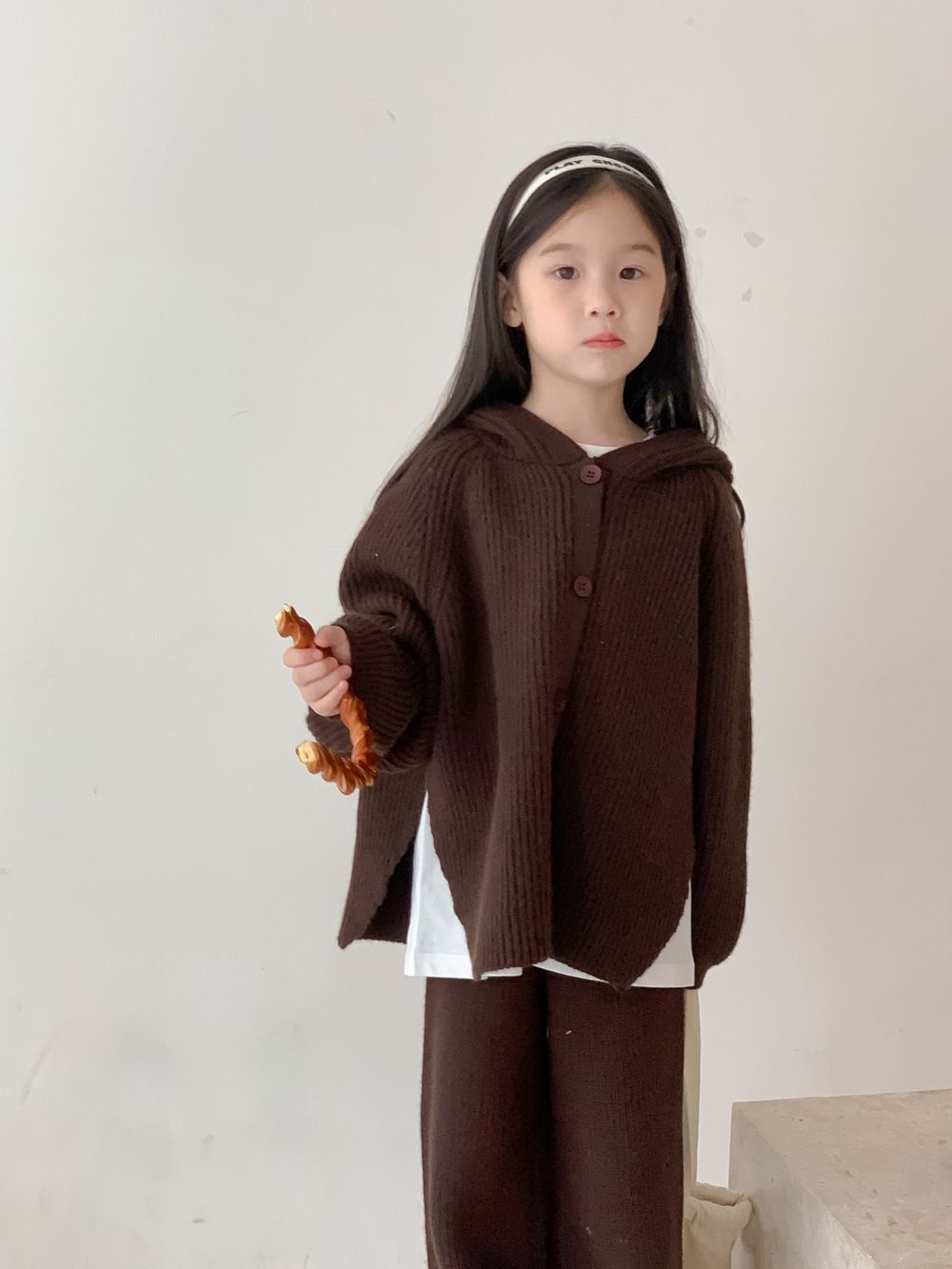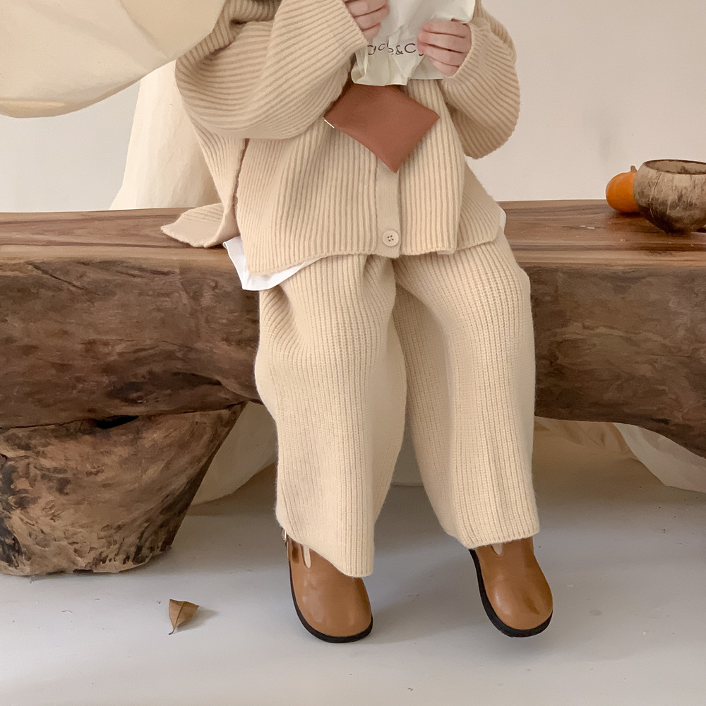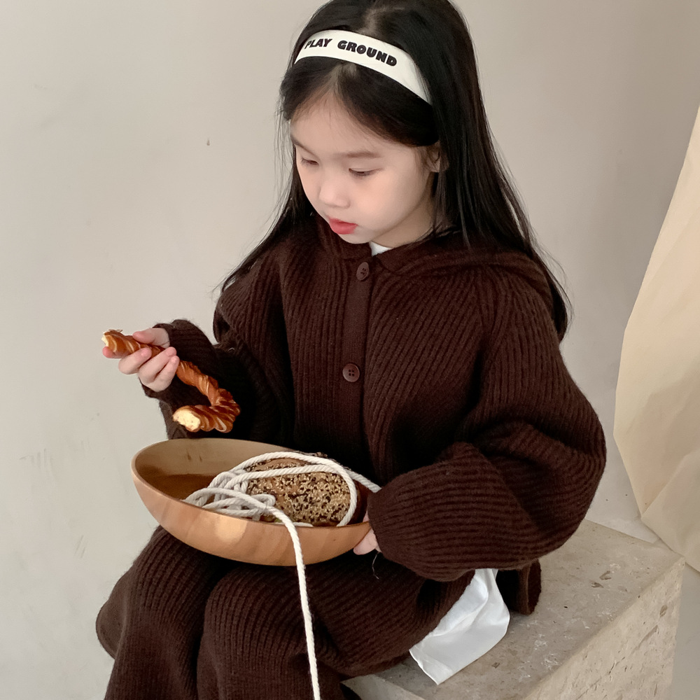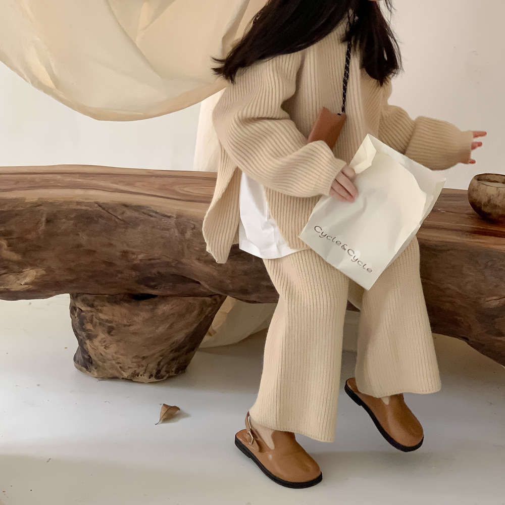 모소몽 아동복 세트 2025 겨울 여아용 한국 스타일 단색 니트 아동 캐주얼 두꺼운 후드 니트 세트