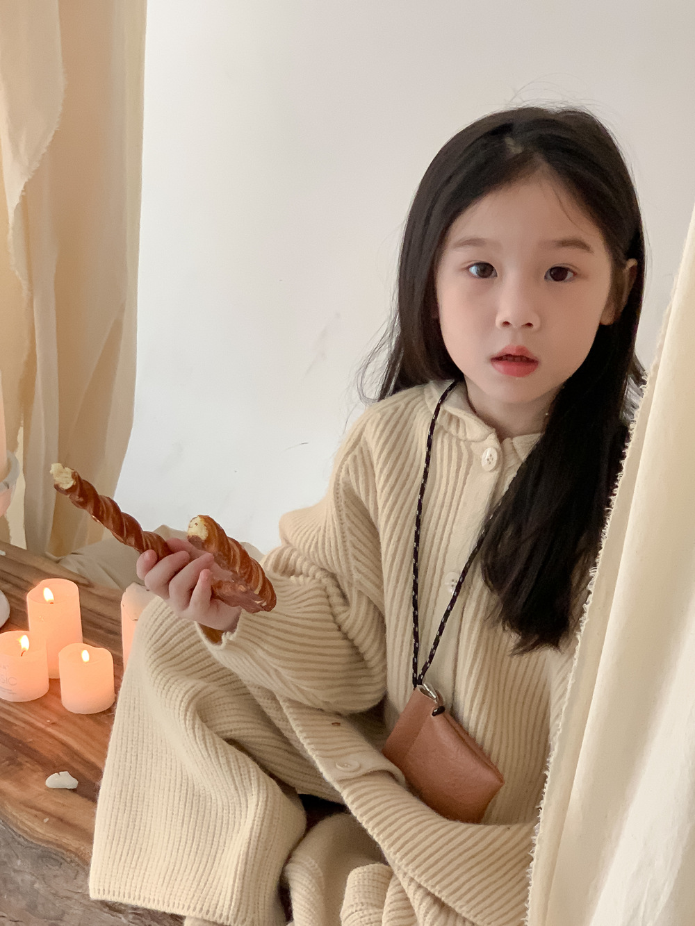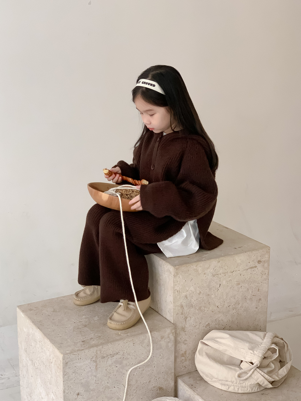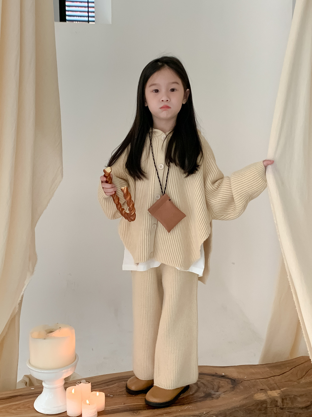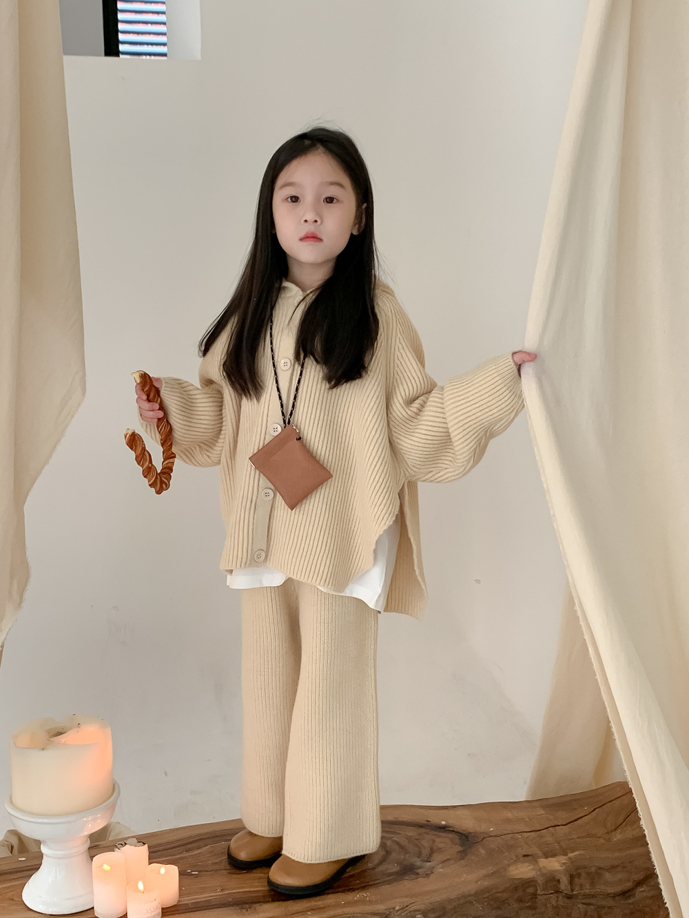모소몽 아동복 세트 2025 겨울 여아용 한국 스타일 단색 니트 아동 캐주얼 두꺼운 후드 니트 세트