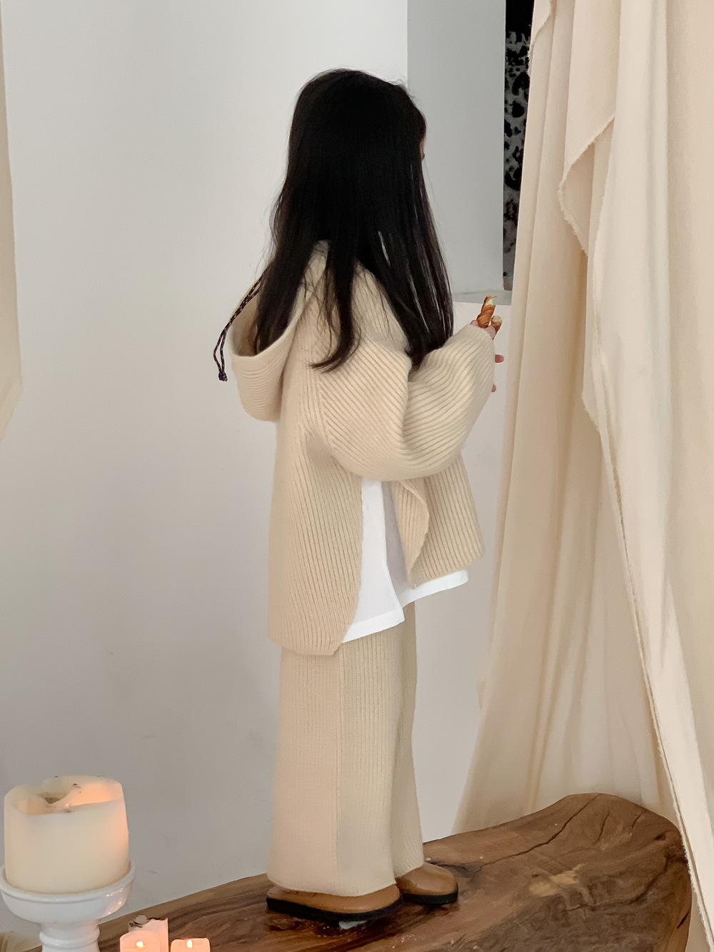 모소몽 아동복 세트 2025 겨울 여아용 한국 스타일 단색 니트 아동 캐주얼 두꺼운 후드 니트 세트스토어 가기