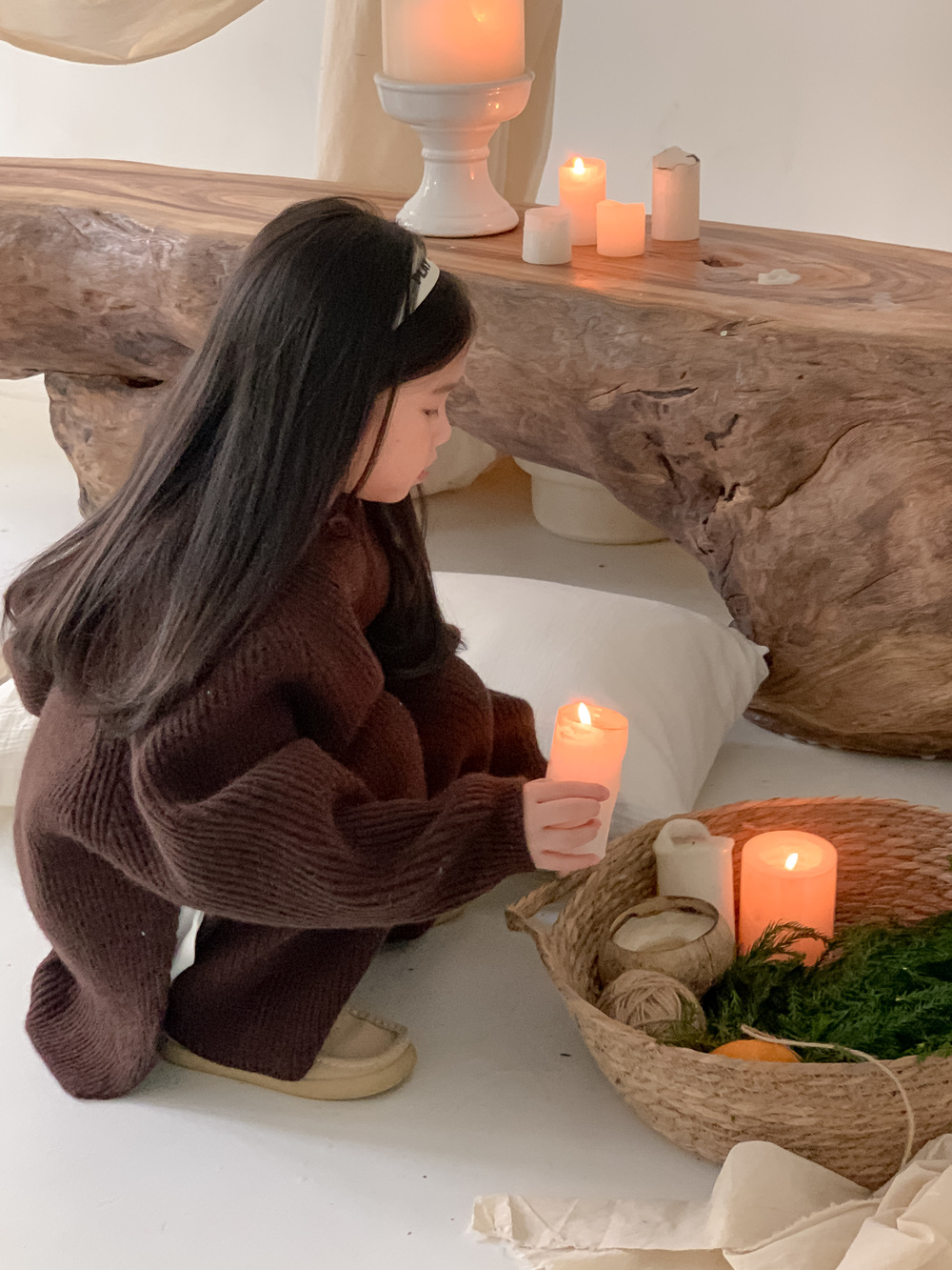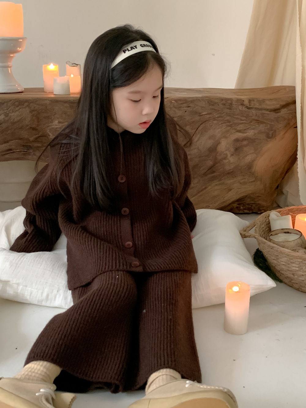• 단색 카디건 스웨터 세트 다크 브라운