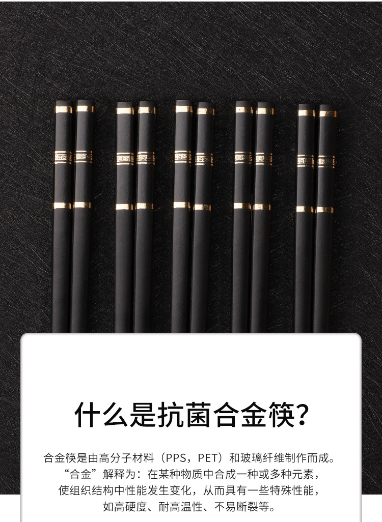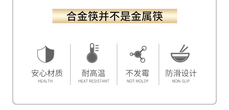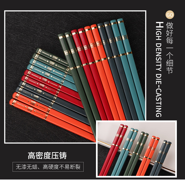 젓가락 합금 젓가락 가정용 새로운 고가 고온 미끄럼 방지 곰팡이 방지 젓가락 가정용 조명 럭셔리 고급 상업용 식기